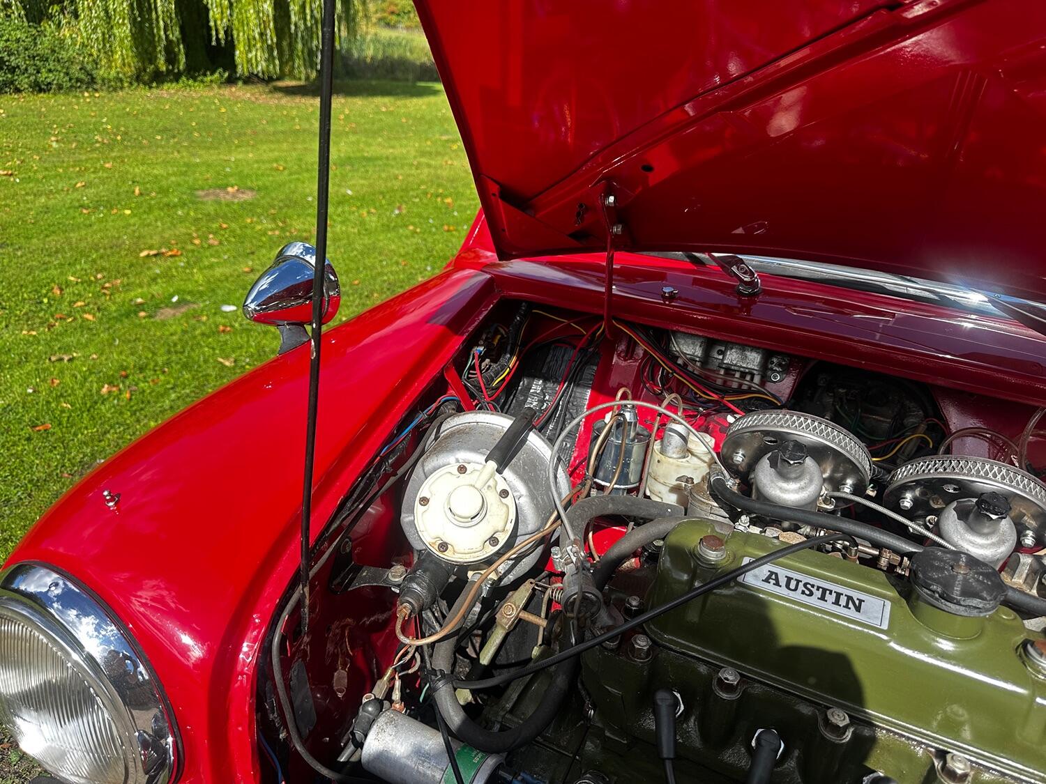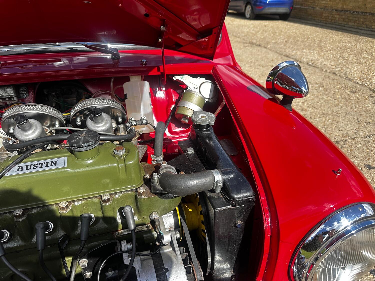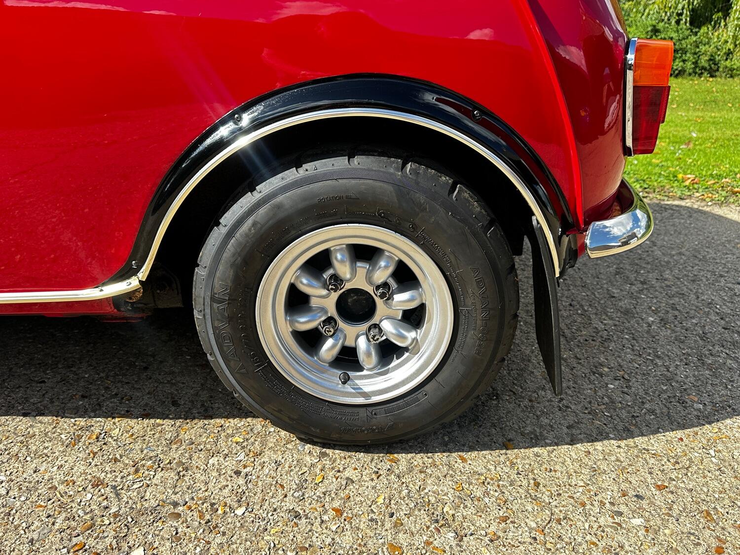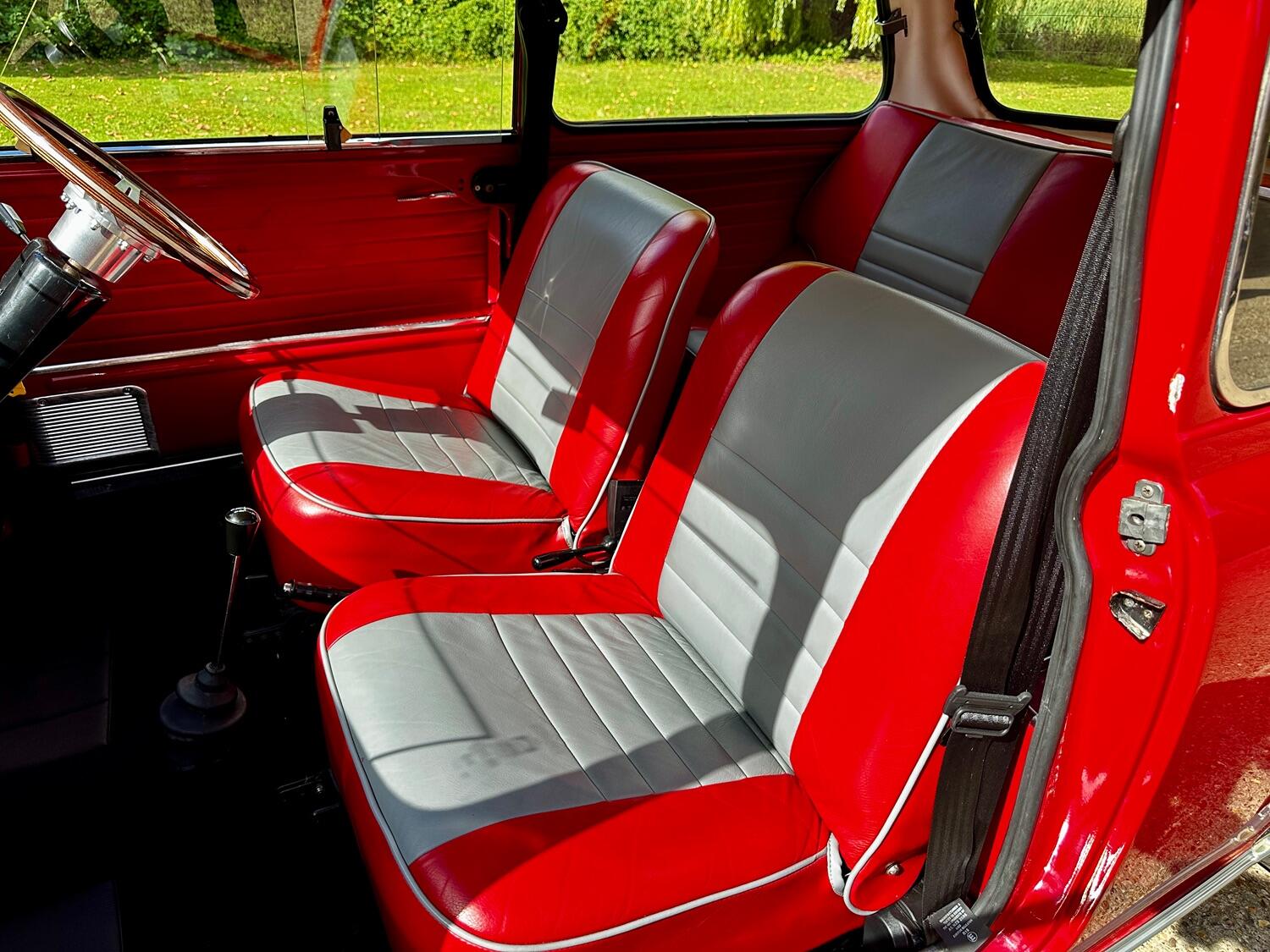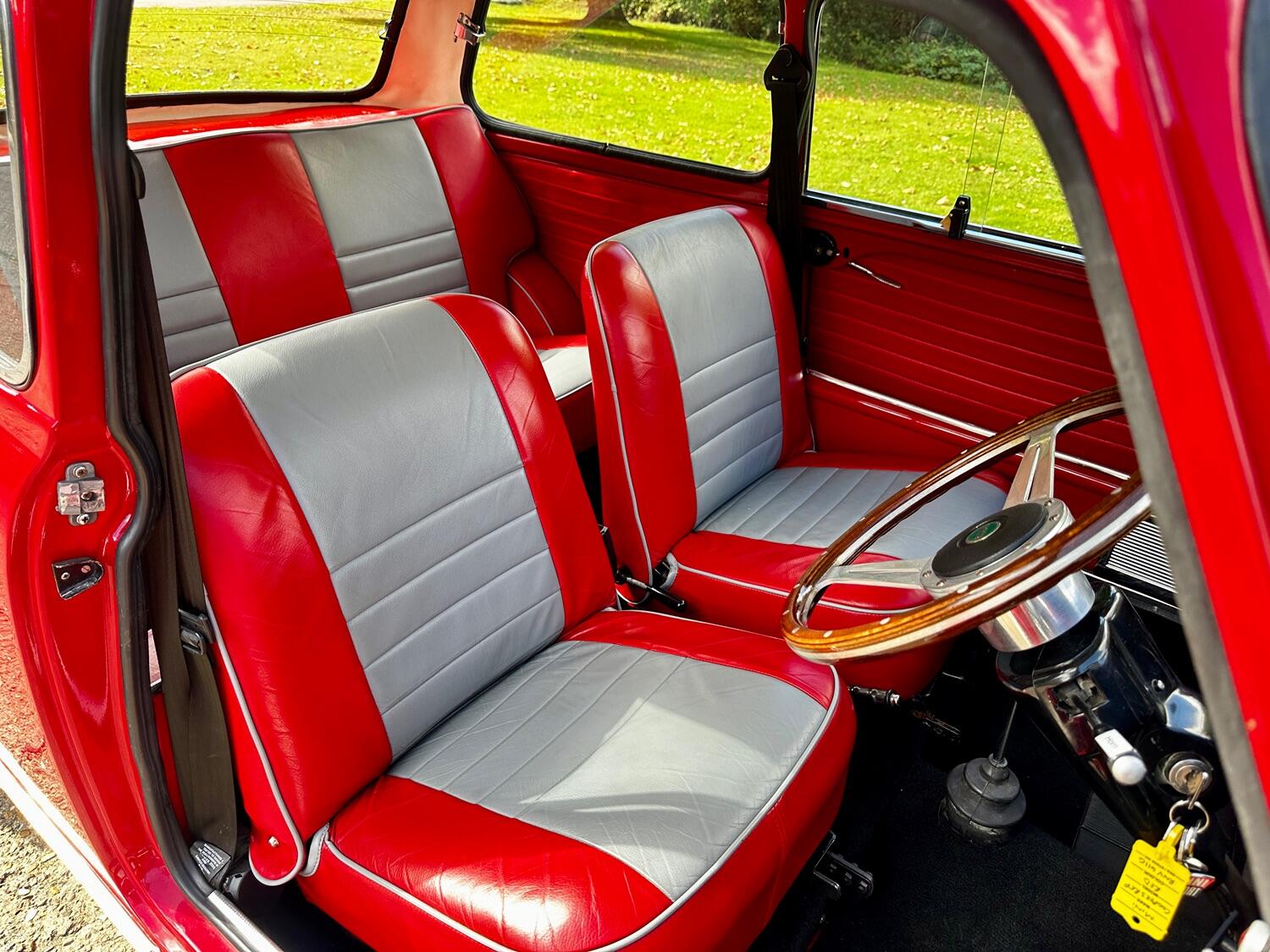 Having collected the car from long term garage storage, we have since undertaken a careful programme of recommissioning the car including fuel drain, new brake master cylinder, service and a fresh motor test in preparation for sale. We understand that the mechanical specification was done faithful to Cooper S standards with a 1275cc 1300GT based engine complete with 11-stud head, twin 1¼” SU carburettors, Maniflow LCB manifold, twin fuel tank set up and Mini-Sport exhaust system. The braking system is handled by the correct 7½” Cooper S discs while the suspension has been rebuilt on new subframes and retains the desirable dry set-up.