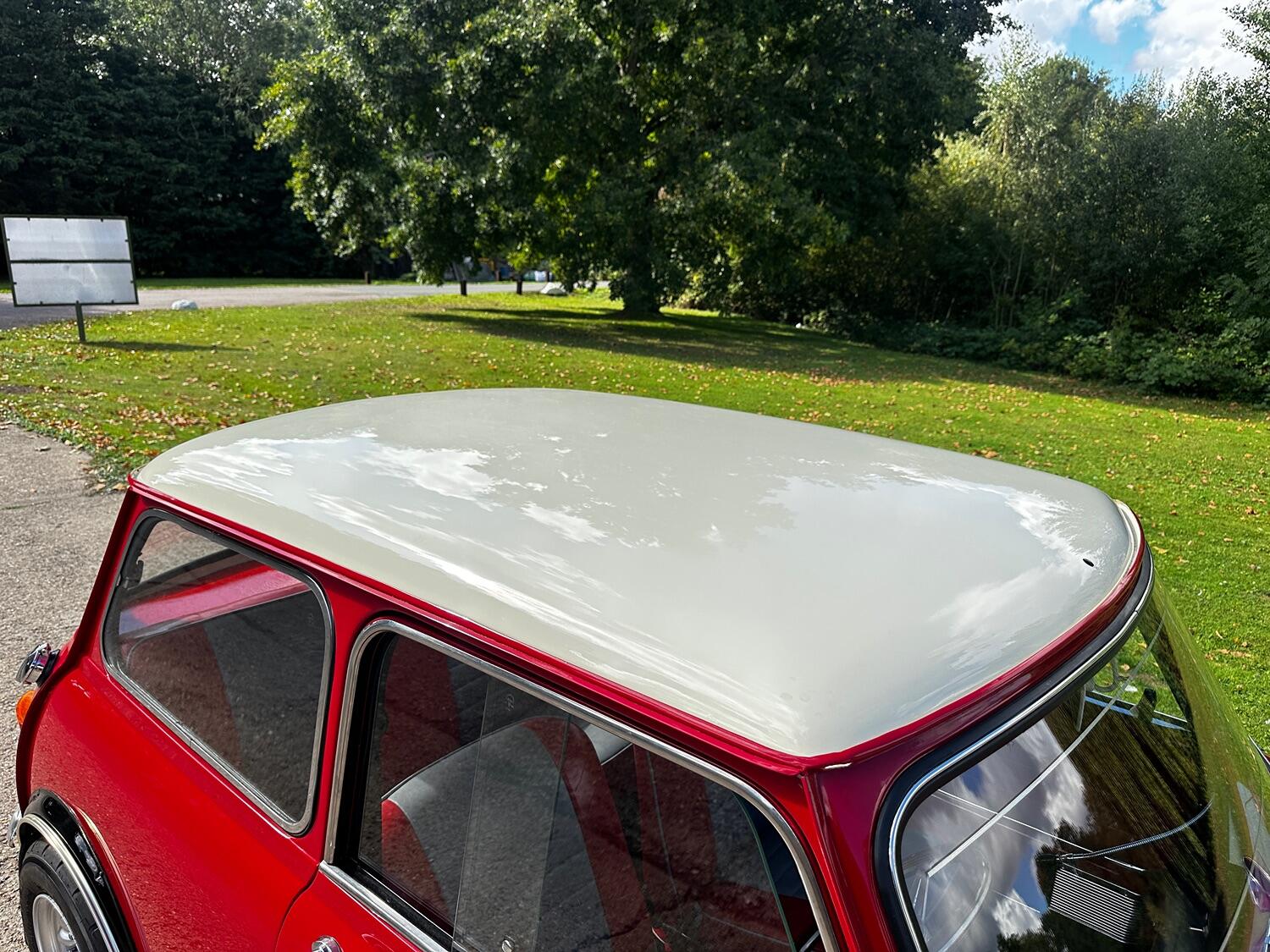 The Tartan Red and Black roof finish now on the car was undertaken around 2016 when the car changed hands and was purchased by the owner of a a Mini Specialist in North Somerset. Under Ian’s ownership the car, which was White with a Black, was the subject of some extensive additional work and developed to be this car characterful and excitement replica of the iconic hot Mini but at a far more accessible level. He went on to maintain and own the car for around two years selling it in 2018 to the last registered keeper. When the car was sold in 2018 it formed part of a small private collection of cars that were then subsequently parked up at the start of Covid and there the car stayed until earlier this year when we unearthed the car from its long term storage.