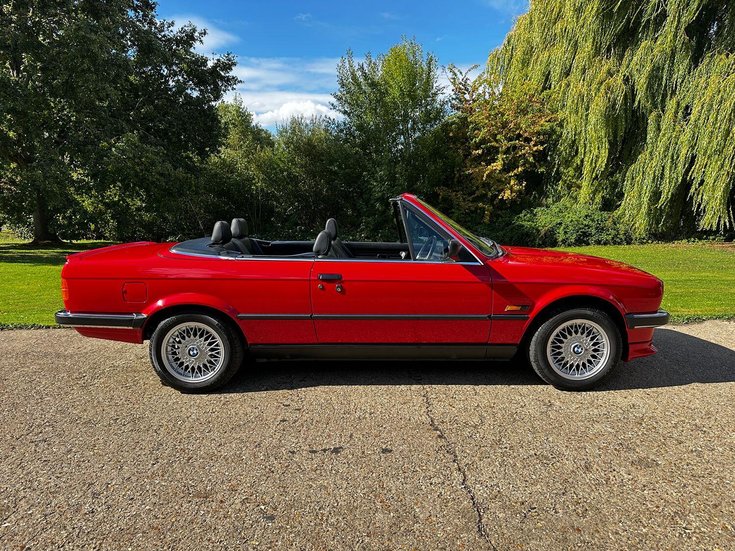 Here at RFH Classics we are delighted to offer what must be one of the finest surviving examples of the iconic E30 325i Convertible. This stunning example is a 1988 (E) BMW 325i Convertible Automatic finished in the much sought after Zinnobar Red with the contrasting Black Fabric folding roof and featuring the Factory Black Recaro Leather Sports Interior. The car has just arrived with us from long term local ownership with the previous owner having the car since 2003 where according to them it was sparingly used by his wife to take the children to Bedford school. Under their ownership they then entered the car into long term professional storage before having the car recommissioned earlier this year.