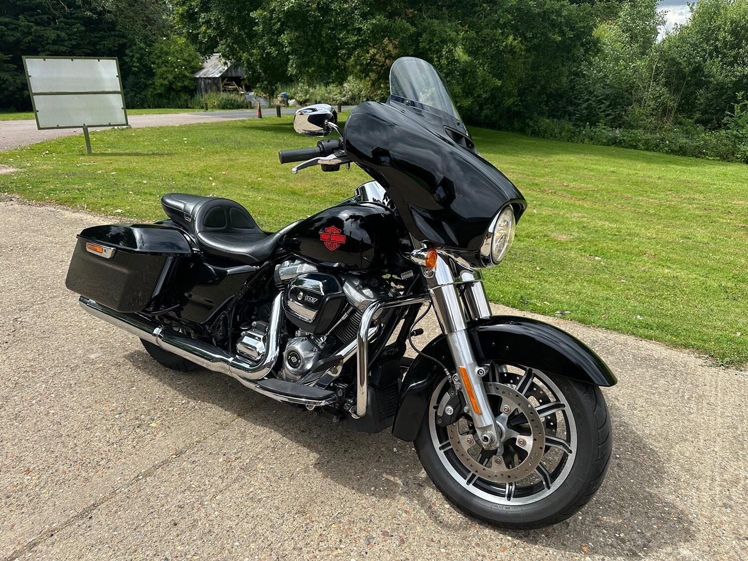 With us here at RFH Classics we have this one owner 2020 (69) Harley Davidson FLHT 1745cc Electra Glide in Vivid Black. A stunning looking tourer bike that has covered just a shade over 12k and comes complete with history from HD Dealer. The bike is fitted with Chrome engine bars and rear panniers, electric start, cruise control. Everything working as it should be.