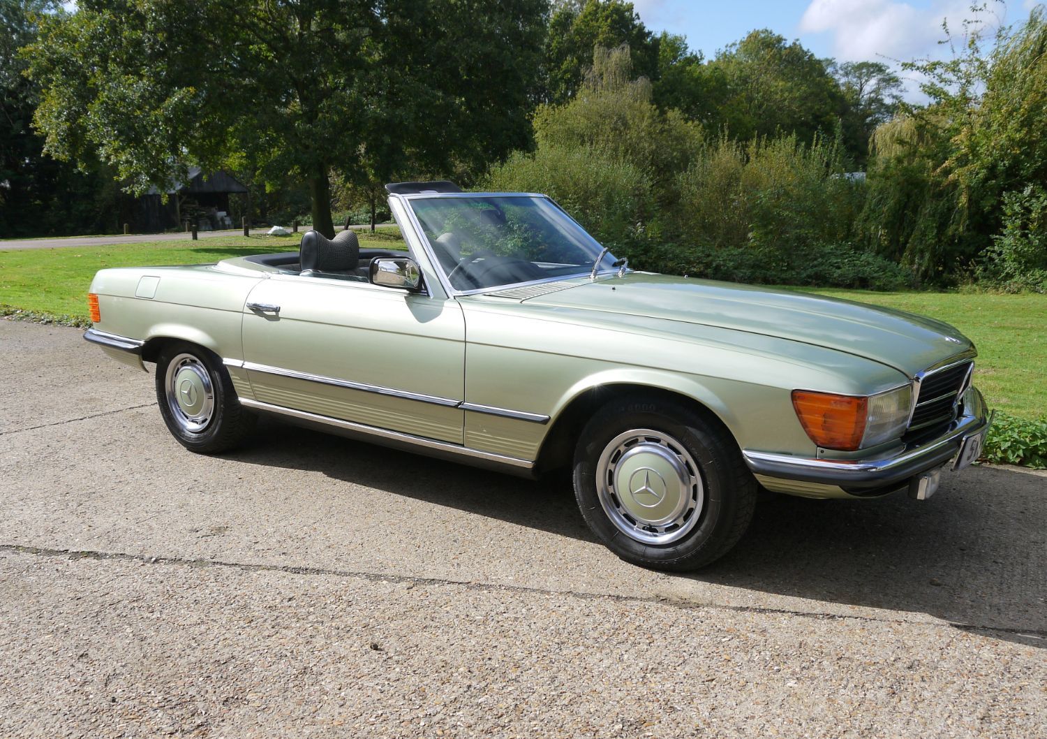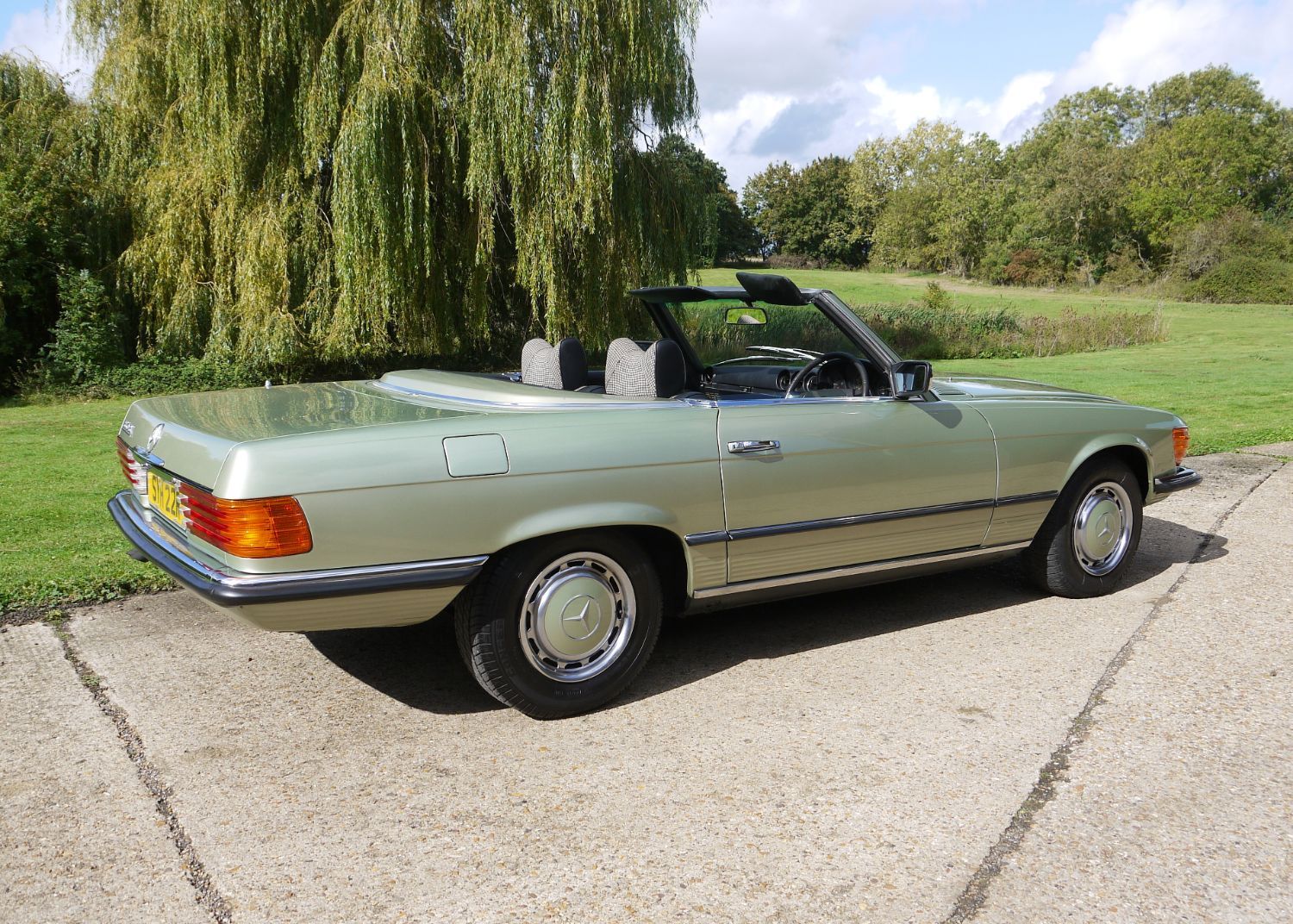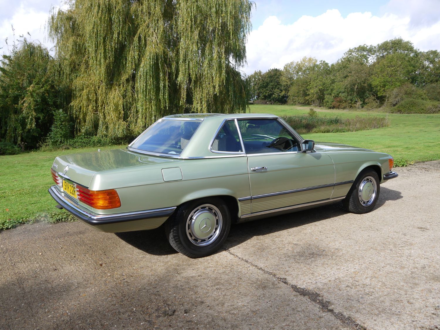 RJH Cars have in stock this stunning example of a Mercedes 350 SL Auto finished in Metallic Silver Green with Half Dogtooth Cloth & Leather Trim. Wow what a car, it is as clean as you see it in the pictures and comes complete with the Factory Hard Top and fabric fold away roof. The car is a 2 previous owner with the last owner of the car having had it for 18 years. When we purchased it he told us that it had never sen rain during his period of ownership and looking around the car I'm inclined to agree as it is a truly lovely example of this classic Mercedes. In the office we have a very thick and comprehensive Service & History folder supporting the mileage of the car. The car drives exceptionally well and has to now be one of those timeless classics that any new owner can again truly love and cherish but still very much use and enjoy.