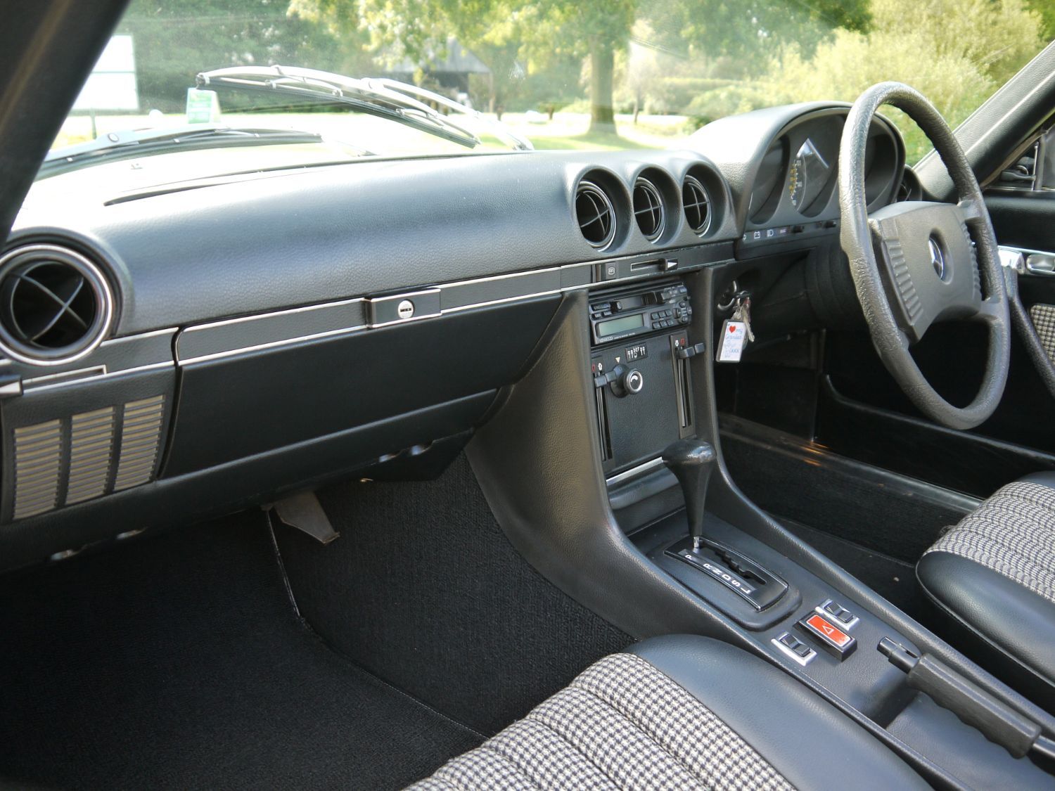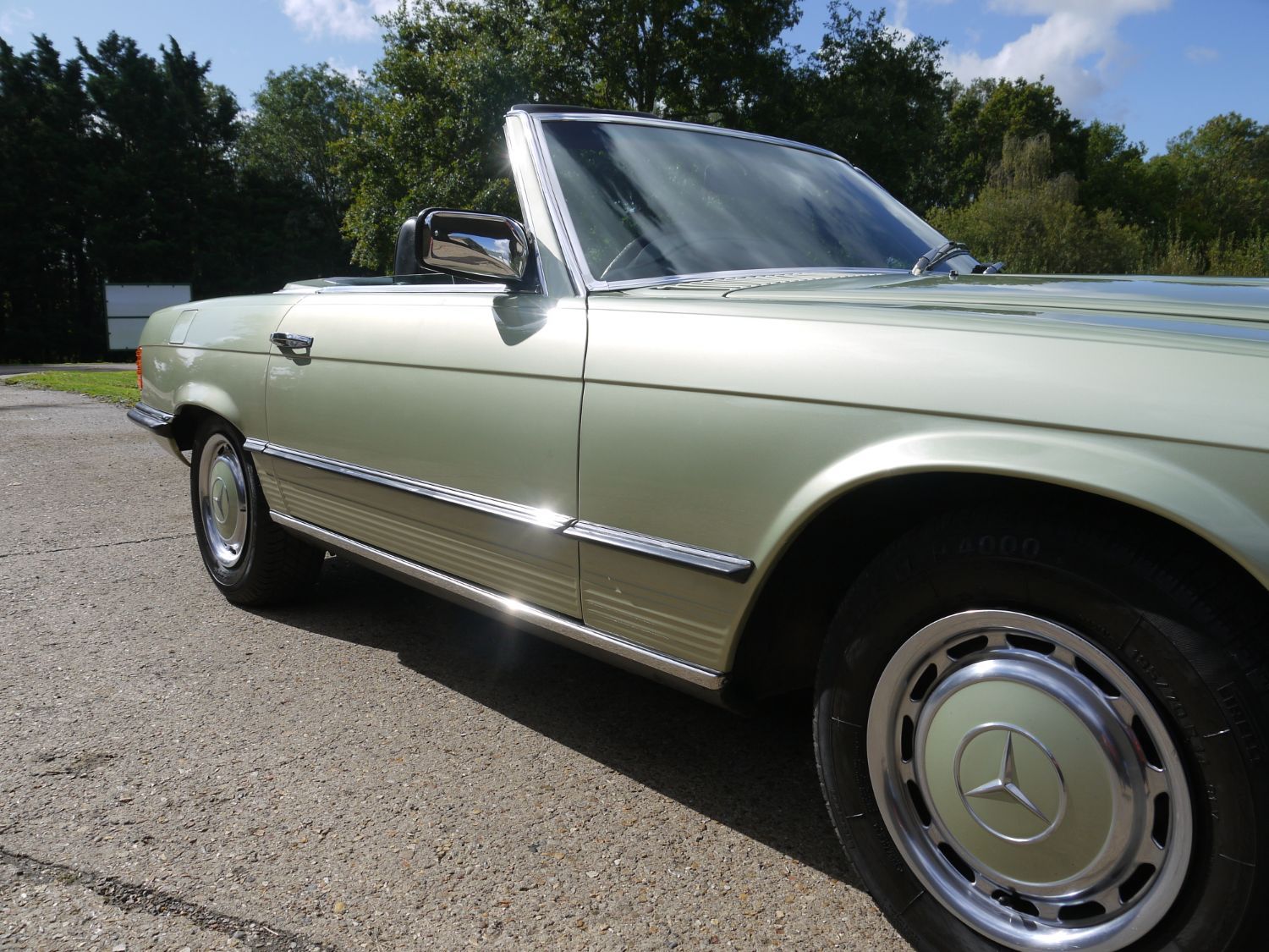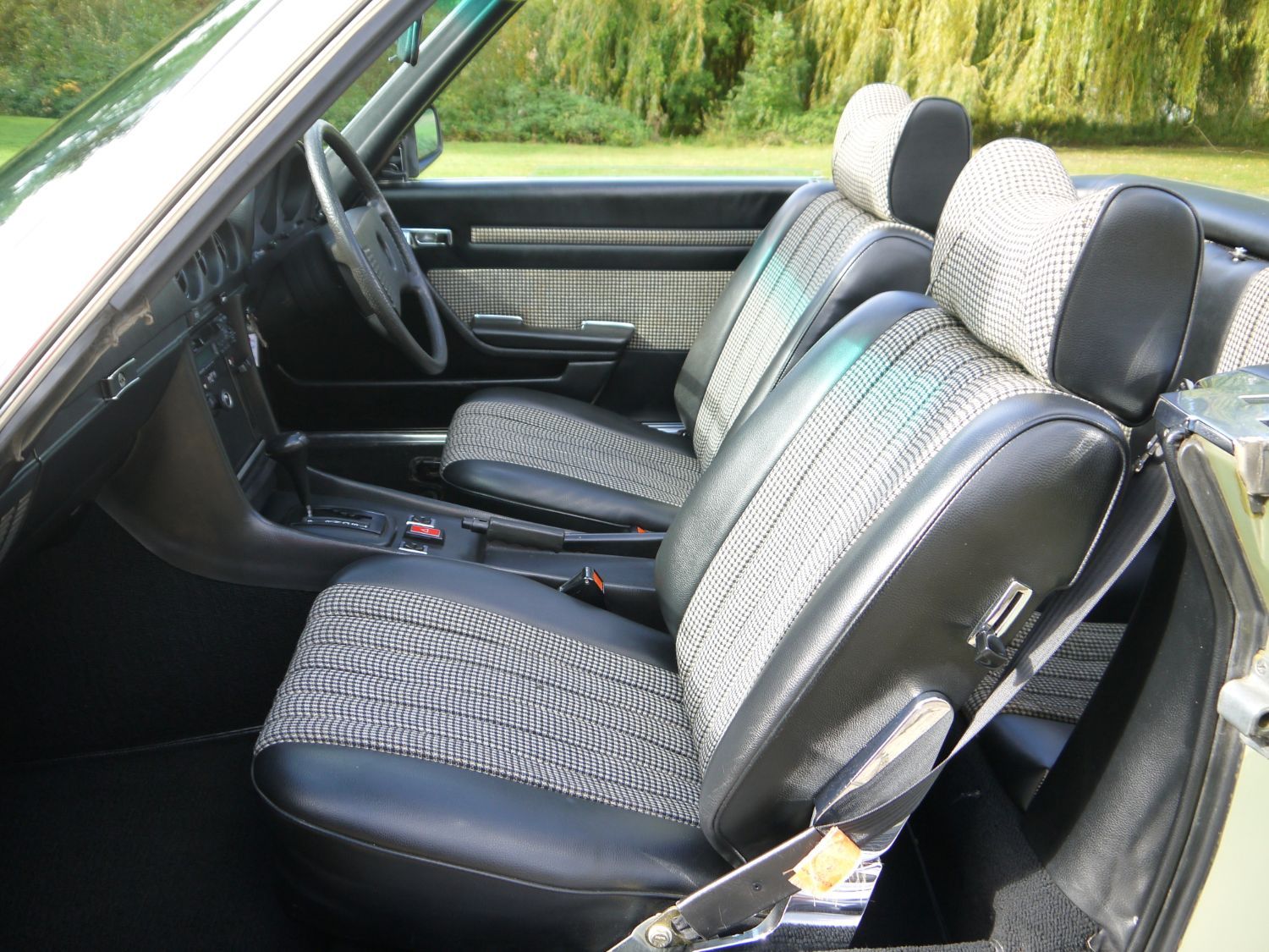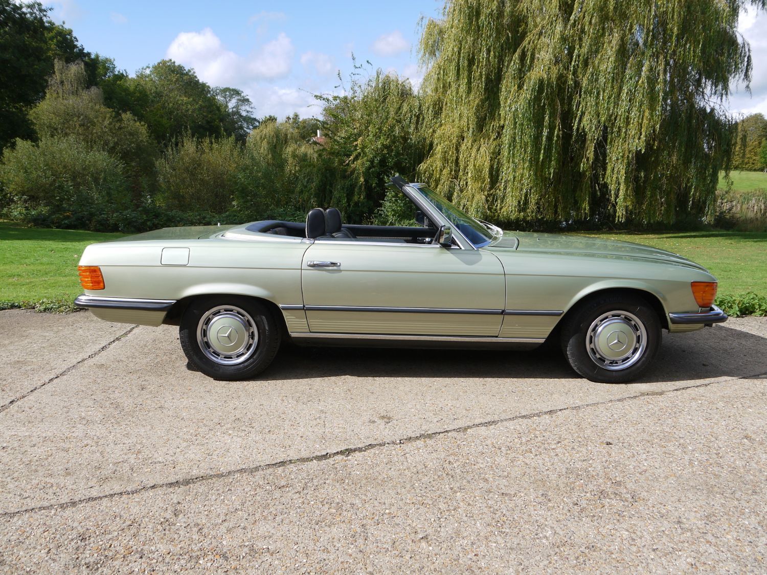 RJH Cars have in stock this stunning example of a Mercedes 350 SL Auto finished in Metallic Silver Green with Half Dogtooth Cloth & Leather Trim. Wow what a car, it is as clean as you see it in the pictures and comes complete with the Factory Hard Top and fabric fold away roof. The car is a 2 previous owner with the last owner of the car having had it for 18 years. When we purchased it he told us that it had never sen rain during his period of ownership and looking around the car I'm inclined to agree as it is a truly lovely example of this classic Mercedes. In the office we have a very thick and comprehensive Service & History folder supporting the mileage of the car. The car drives exceptionally well and has to now be one of those timeless classics that any new owner can again truly love and cherish but still very much use and enjoy.