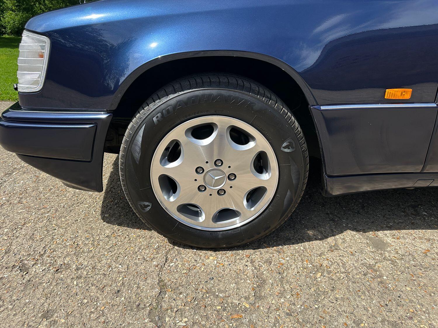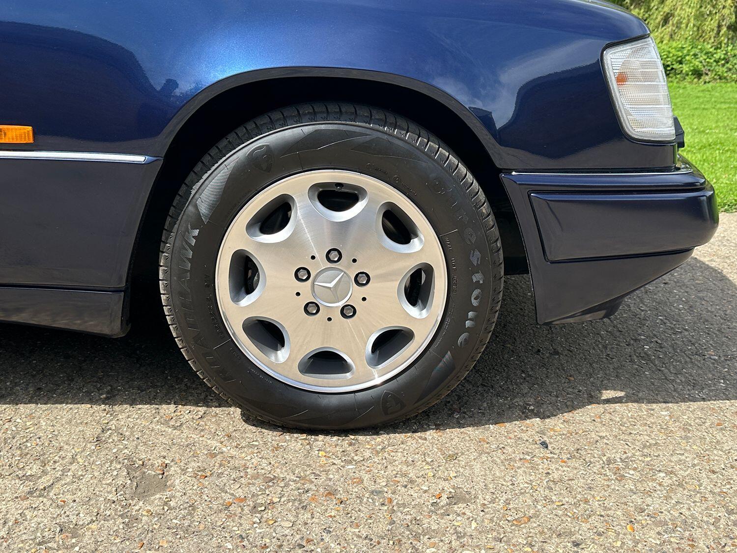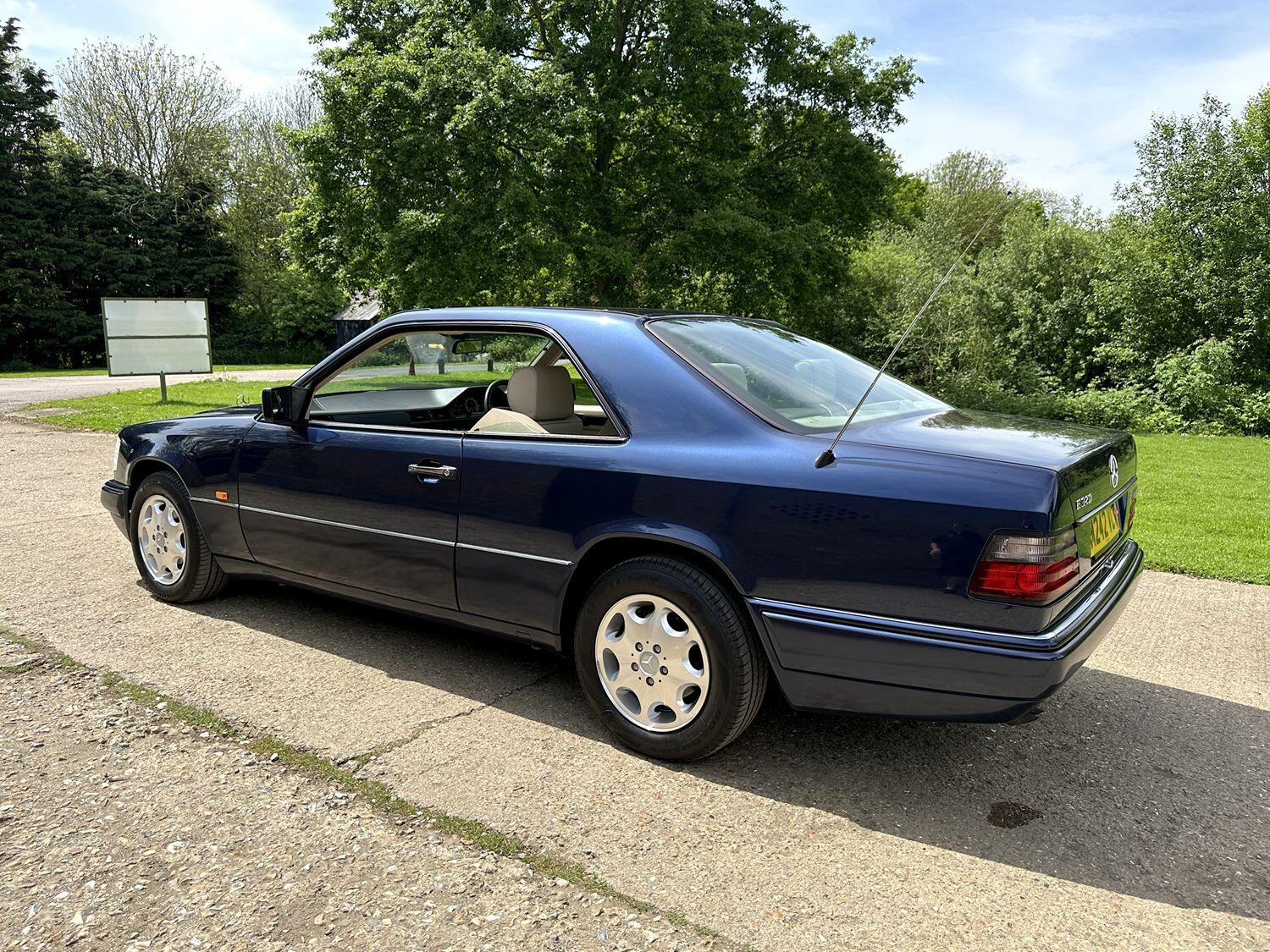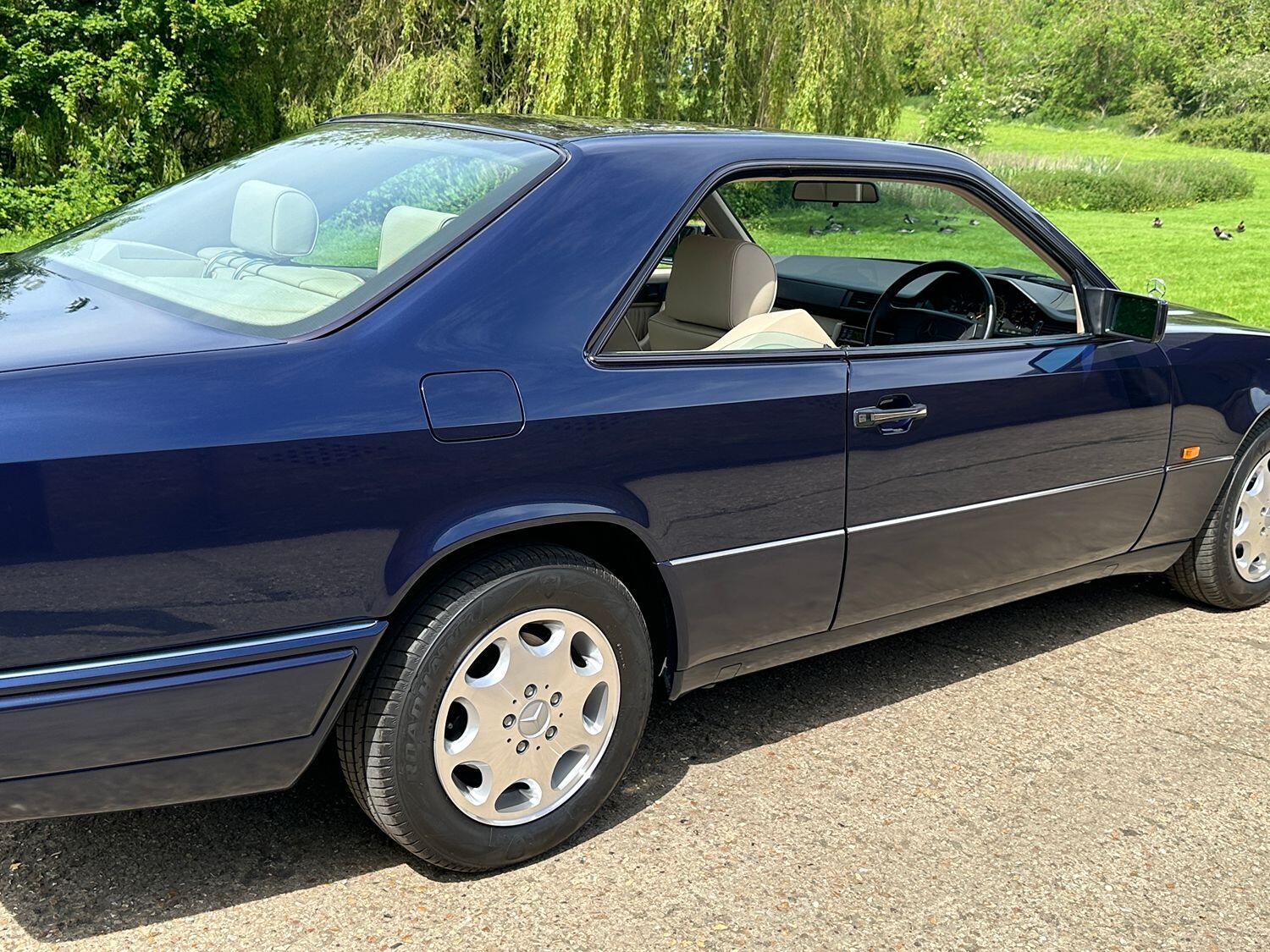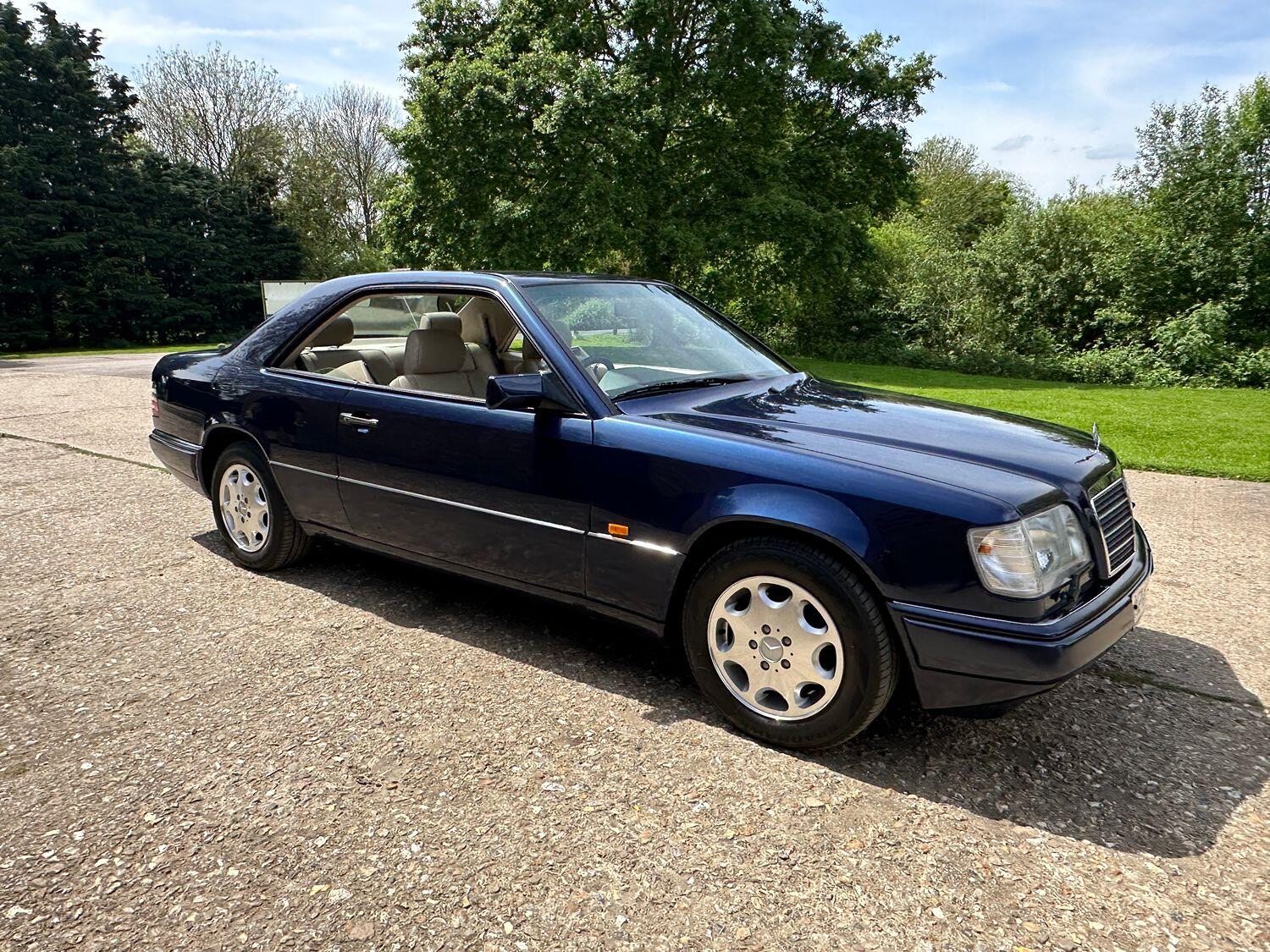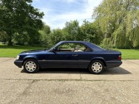 With us at RFH Classics is this stunning low mileage 1995 (M) Mercedes (C124) 320E Coupe Auto finished in Azurite Blue Metallic with Mushroom Leather. This immaculate example has only covered 51,656 miles from new and was until the original owner passed recently, a one owner from new with the family being advised to register the car in the son’s name. Originally this car was supplied by Pinney’s Mercedes of Harpenden and it has been a truly pampered example from new with it living in a heated garage, not being driven in the rain, serviced annually and rear seats that we doubt has ever been sat on.