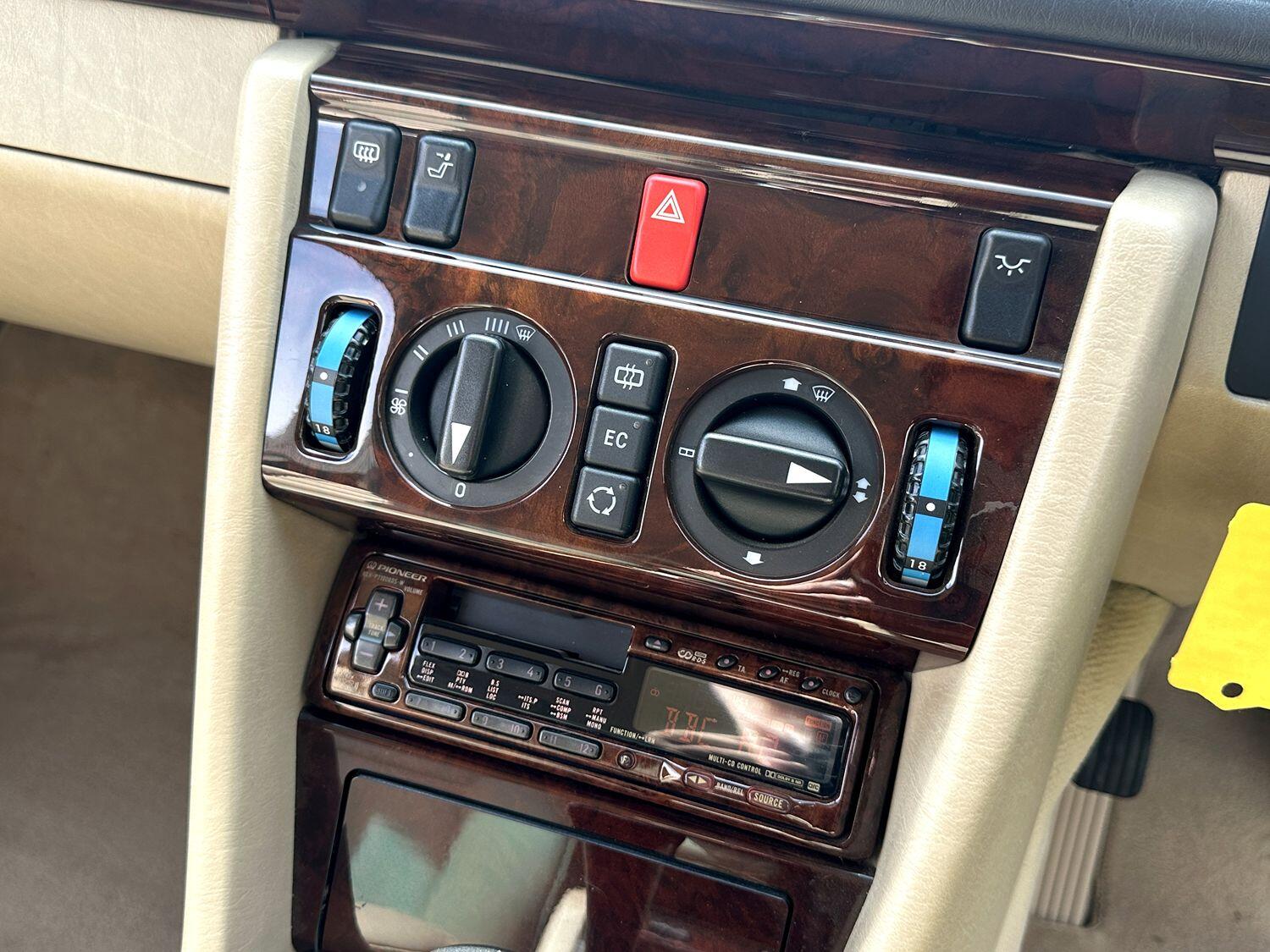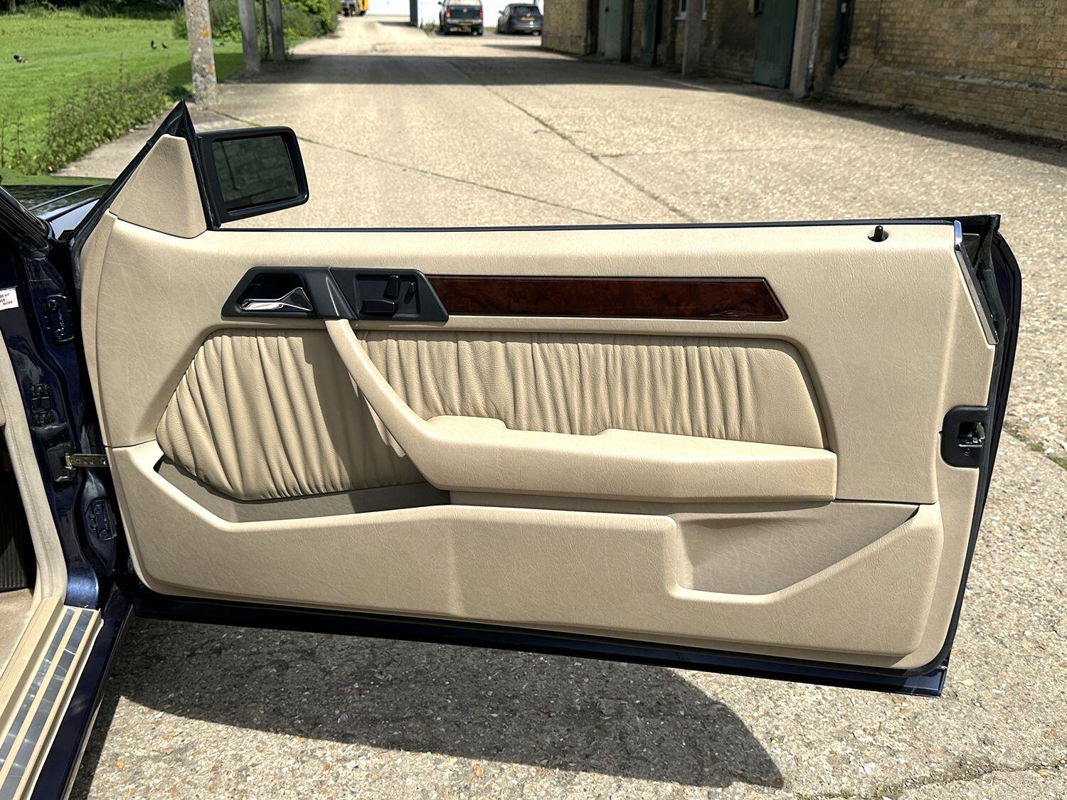 Inside this classic coupe will definitely not disappoint, the Mushroom Leather seats are all completely unmarked and there is electric adjustment available for both the front seats. The leather is not only unmarked but also the actual cushions are virtually as they left the factory. On both the door panels you find the seat adjustment controls along with ruffled leather panels, again unmarked. This top of the range coupe features the wood veneer covering to centre console, dash and the Blaupunkt Radio Cassette, which on closer inspection shows they are unmarked, again exceptionally rare to find in car of this age. Located in the boot is the Multi-play CD Changer connected to the head unit.