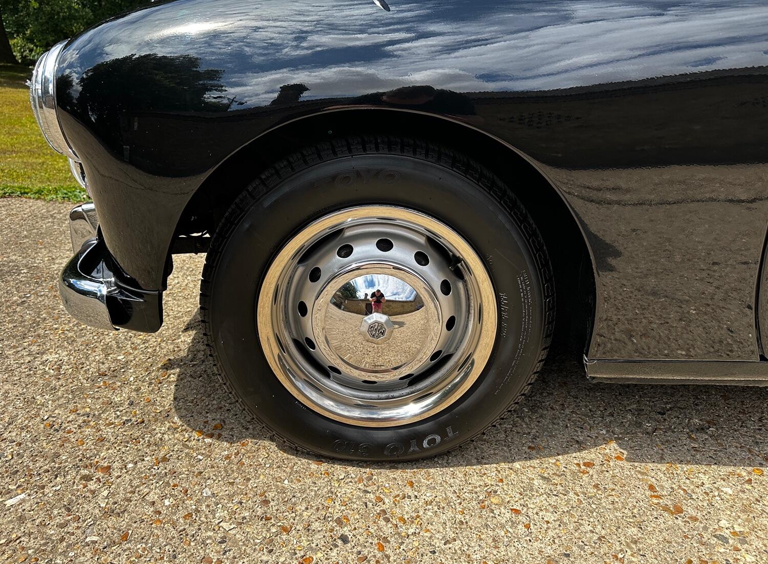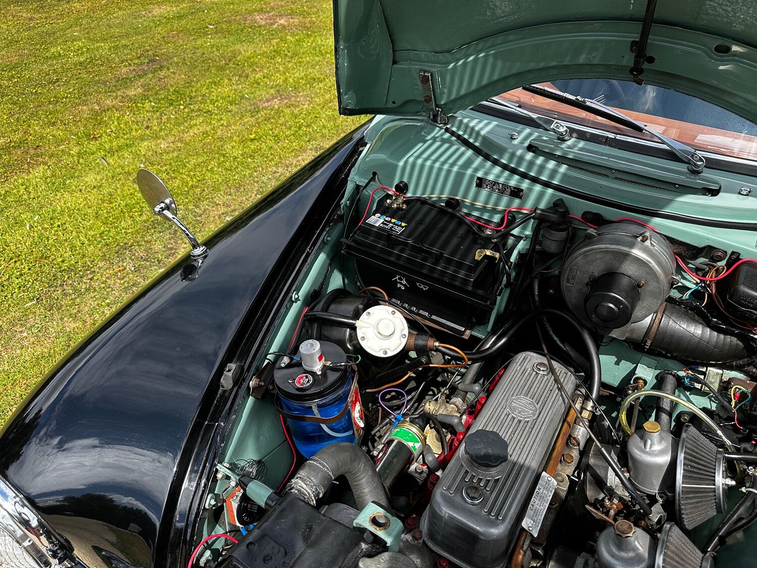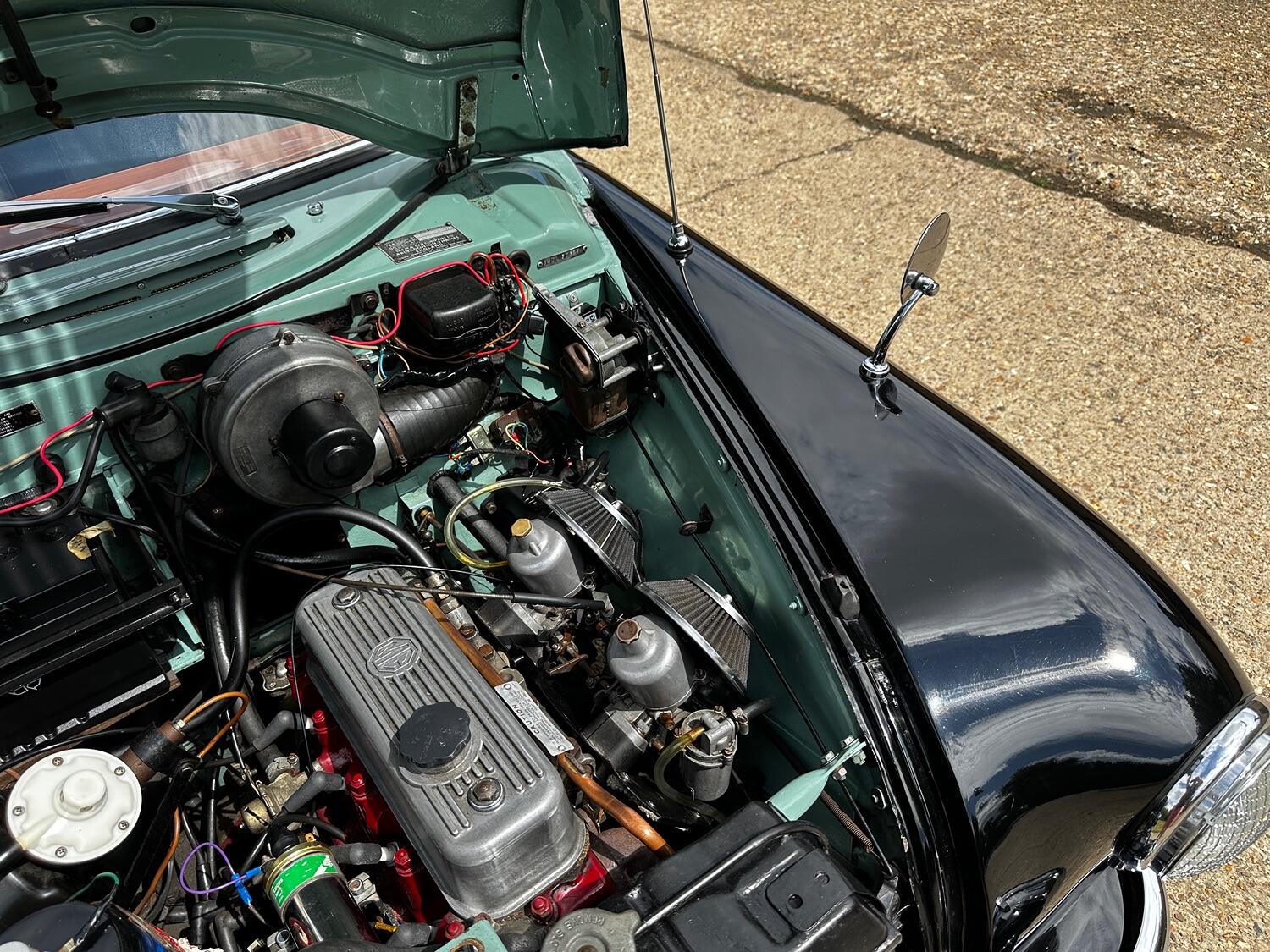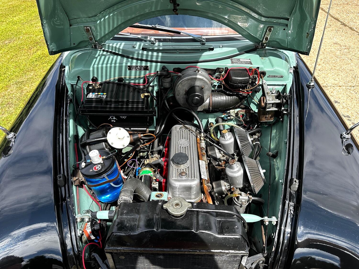 Reading the extensive history files we hold, this Varitone underwent a full restoration program between 1993 and 1996 that included new sills, floor panels, a bare metal respray, a brake overhaul, stainless steel exhaust and a retrim in the original Green leather. Being pre 1965, this car would not have had seat belts from new however in 2001 the owner had a set of front and rear Green belts made for increased passenger safety and a terrific addition if you want to take the children or grandchildren out. In 2006, the Z Type engine was upgraded with a polished and ported rebuilt 1800cc MGB unit resulting in a significantly improvement in both performance and drivability and then in 2010, to better manage the MGB power unit, the four speed gearbox was replaced with a rebuilt Type 9 five-speed with an upgraded differential. This thoughtful pairing has resulted in a smooth, flexible and thoroughly enjoyable drive that feels right at home on modern roads especially when in 202, it was the subject of a further brake system overhaul.