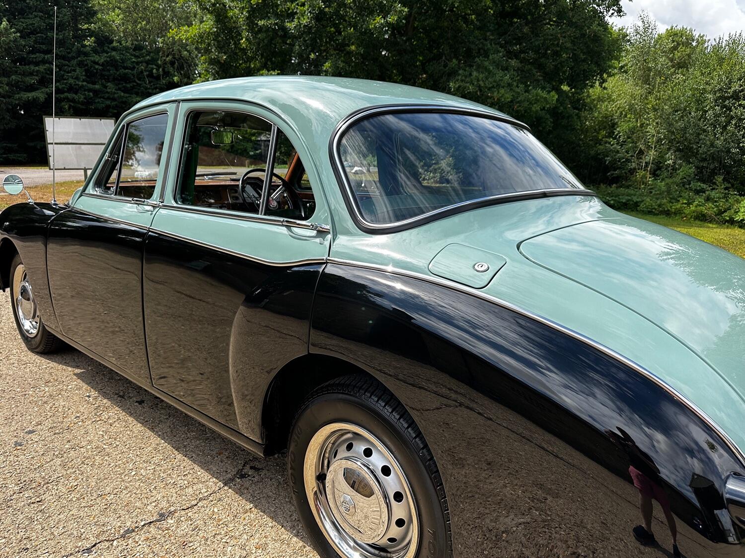 With us at RFH Classics is this exceptionally well preserved 1957 MG Magnette ZB Varitone that we are pleased to offer for sale. Finished in the eye catching combination of Island Green over Gloss Black, the car has with the contrasting Green Leather interior and comes to us from the estate of its previous keeper, a man who clearly looked after the car exceptionally well, being a testament to his careful stewardship.