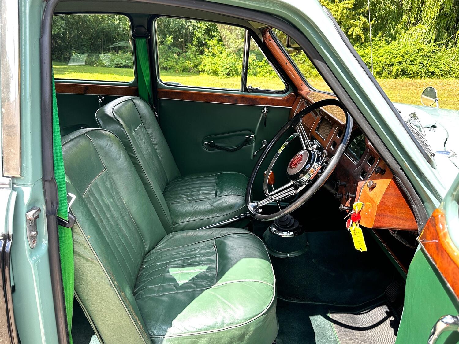 The car carries chassis number 25555 and is Varitone build number 2474, the Varitone model of the Magnette ZB being produced from 1956 to 1959 and were the improved evolution of the earlier ZA model. It featured more power, revised styling with a wider rear window and enhanced two-tone colour options that gave the Varitone a distinctive, sophisticated presence. The ZB featured a monocoque body construction and benefitted from strong MG sporting traditions making it a true family sports saloon of the era.