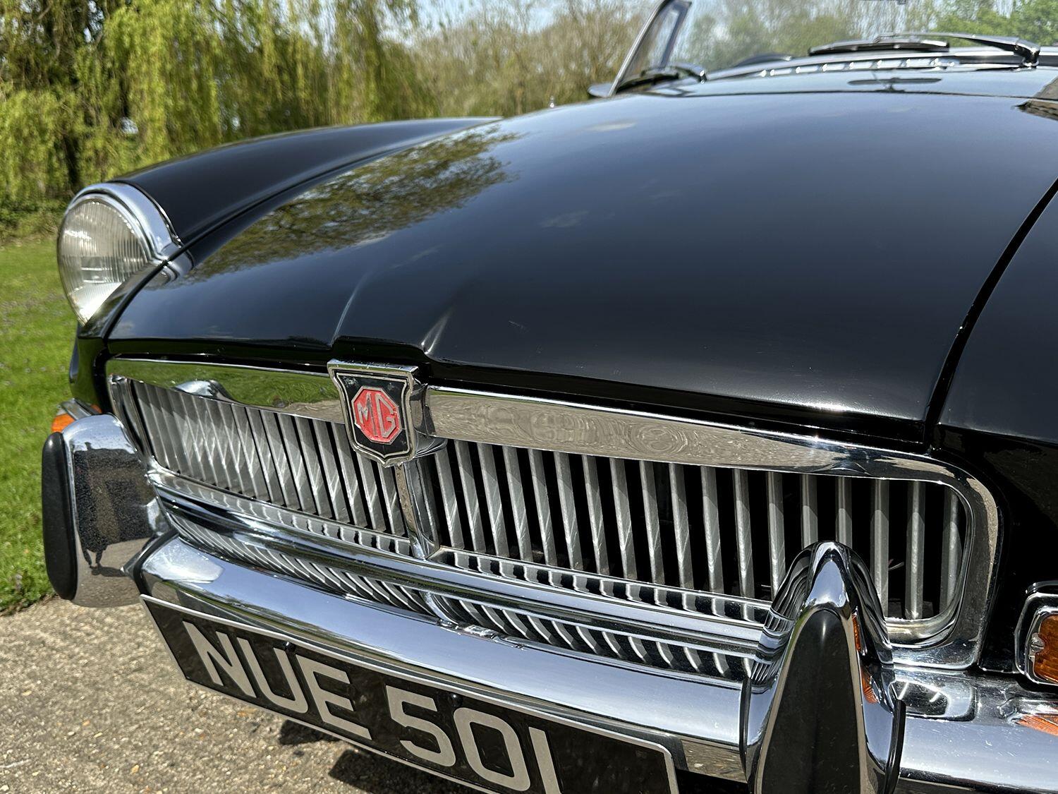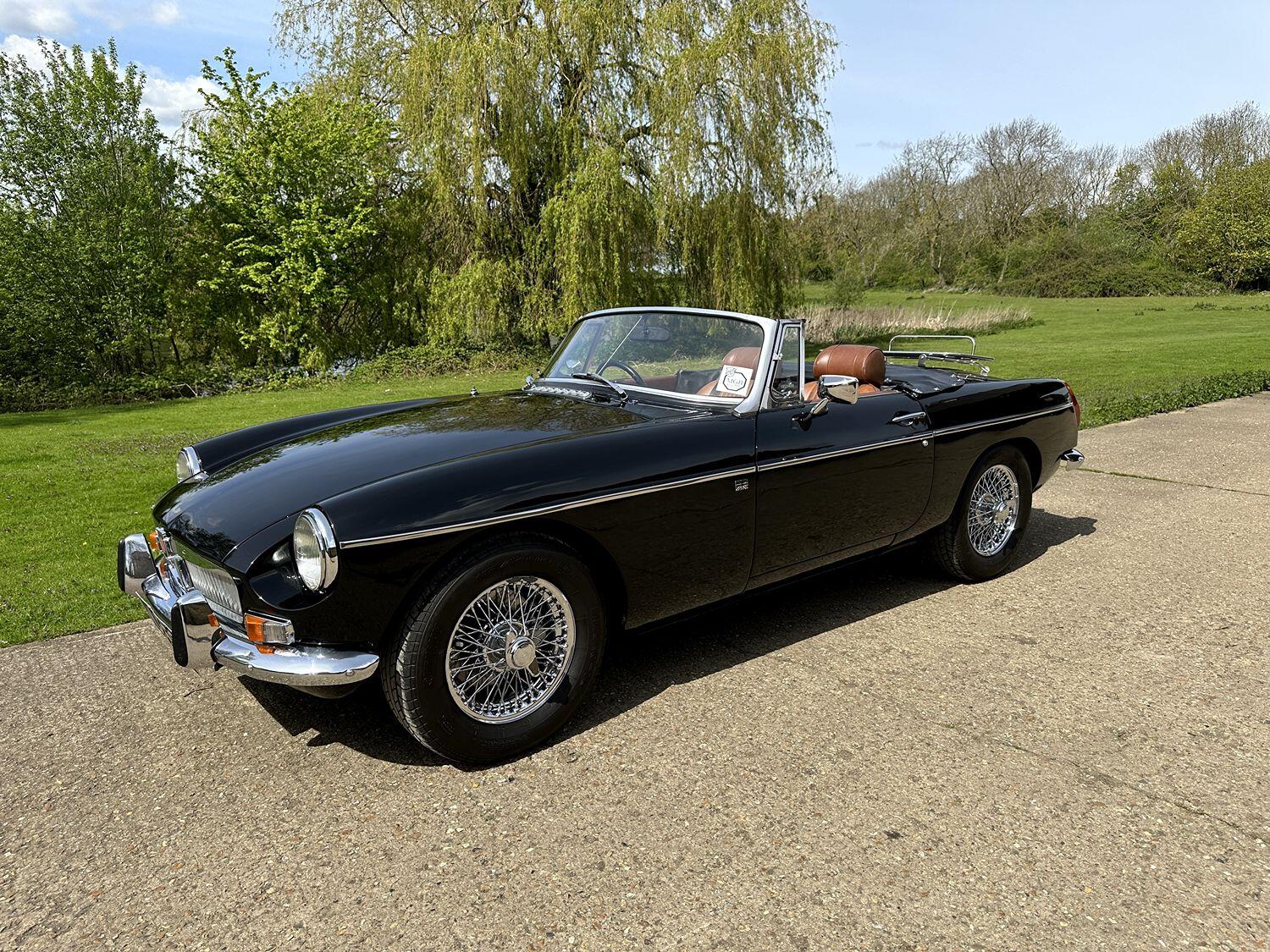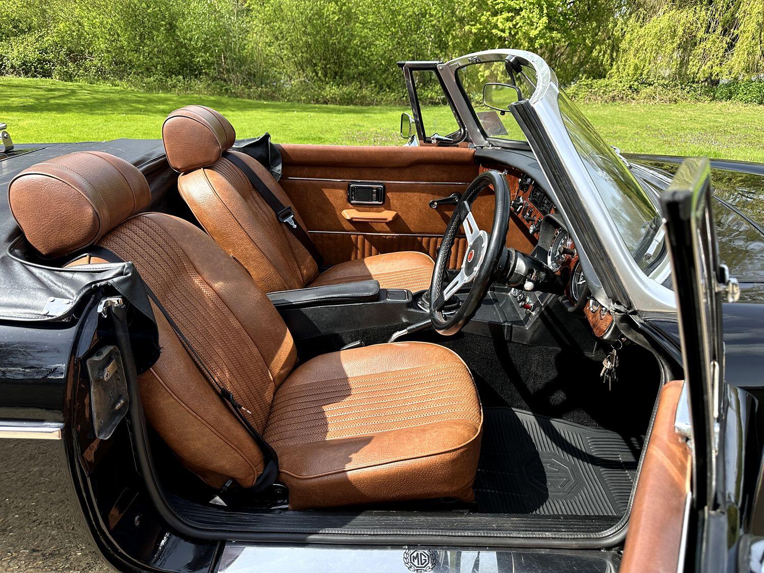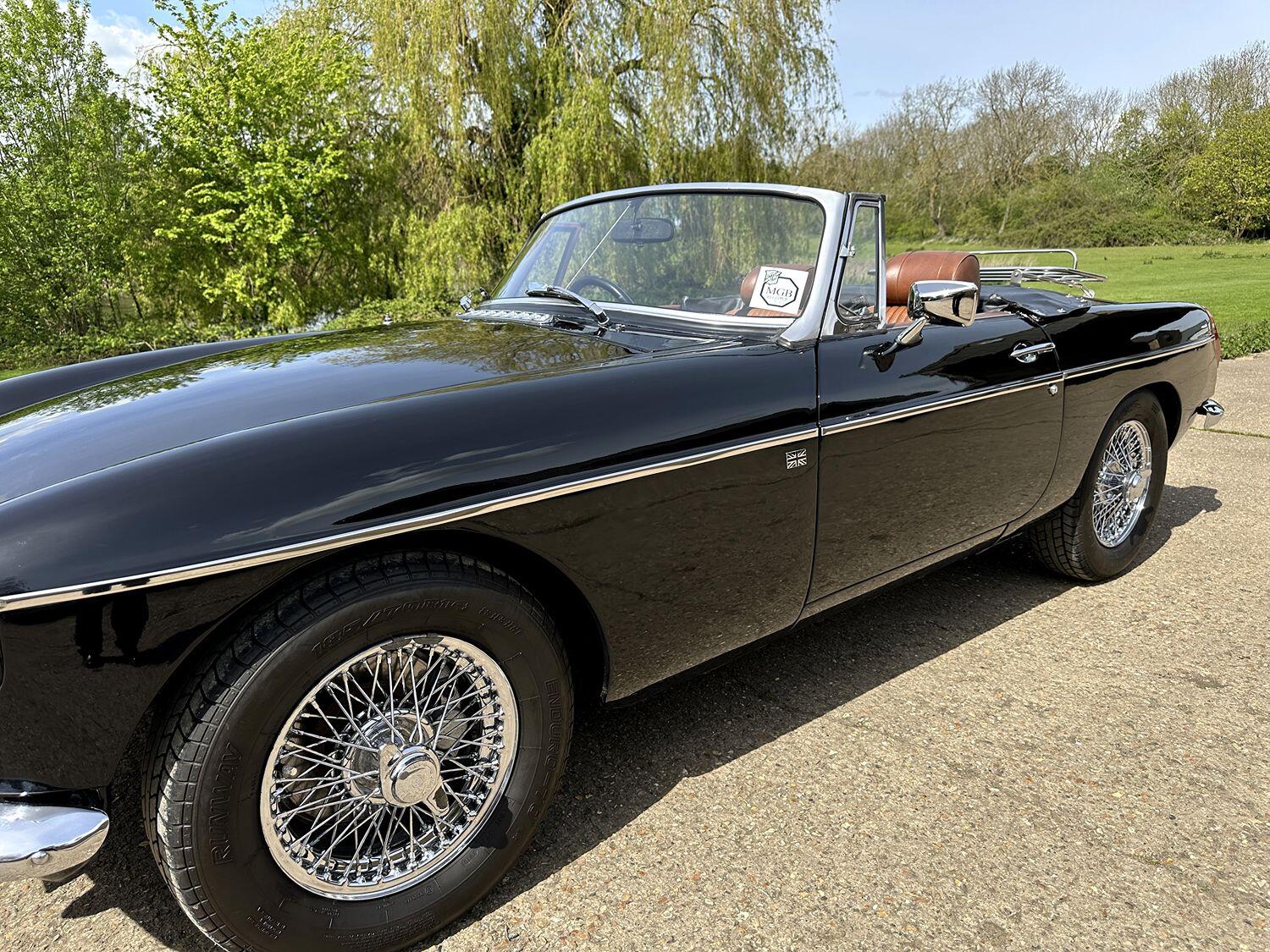 Just arrived back with us here at RFH Classics we have this stunning example of a 1973 (L) MGB Roadster finished in Gloss Black with the contrasting Tan trim. The beautiful example is one that we sold around 18 months ago and recently taken the car back in part exchange and is a real head turner of a car. The bodywork is in excellent condition and Black is quite an unusual body colour to find but really suits the shape. The interior is finished in the Weave Tan trim with contrasting Black carpets and reading through the history it appears these were replaced when a considerable amount of other work was undertaken in 2017, a glance through the paperwork shows a receipt for new trim along with a new hood, replacement dashboard as well as an invoice to repaint the car suggesting that this is the last time the car was refurbished. In addition in the history file we have invoices for a very recent service and MOT test.