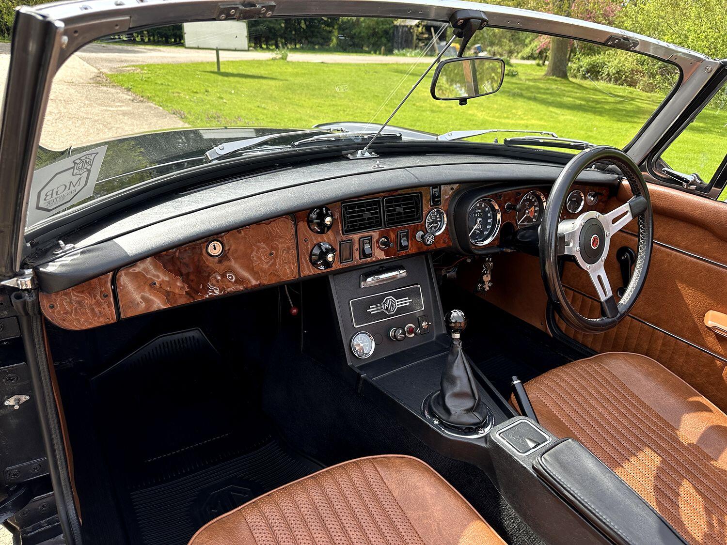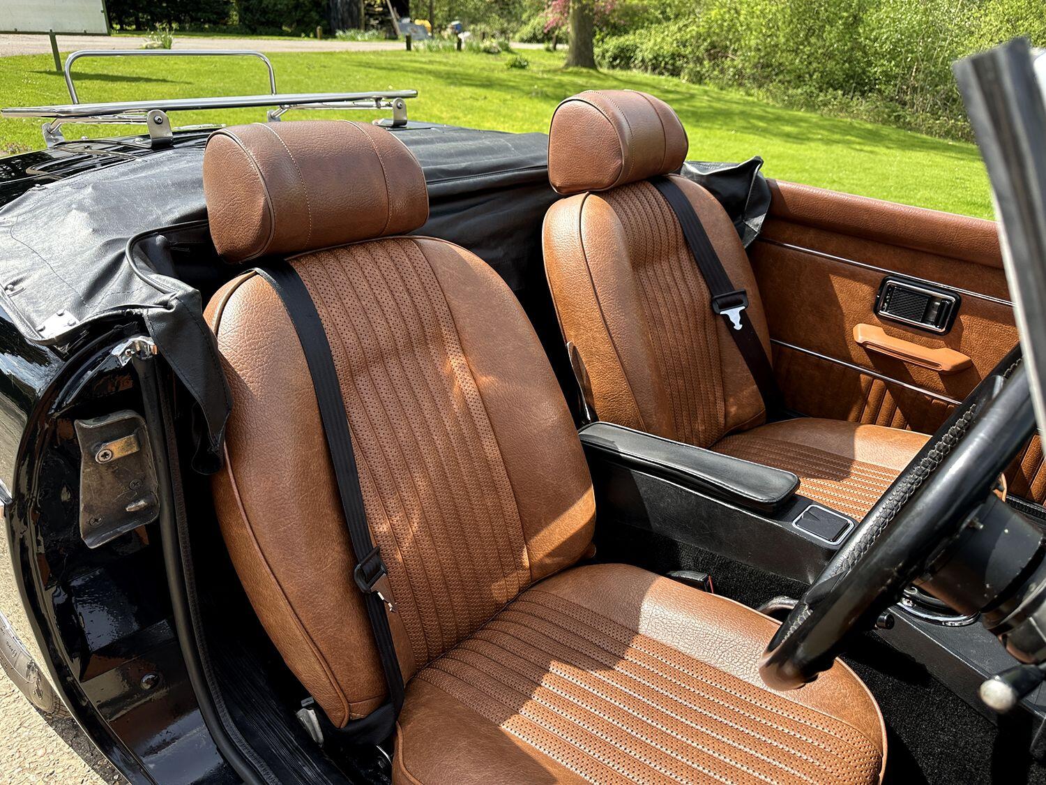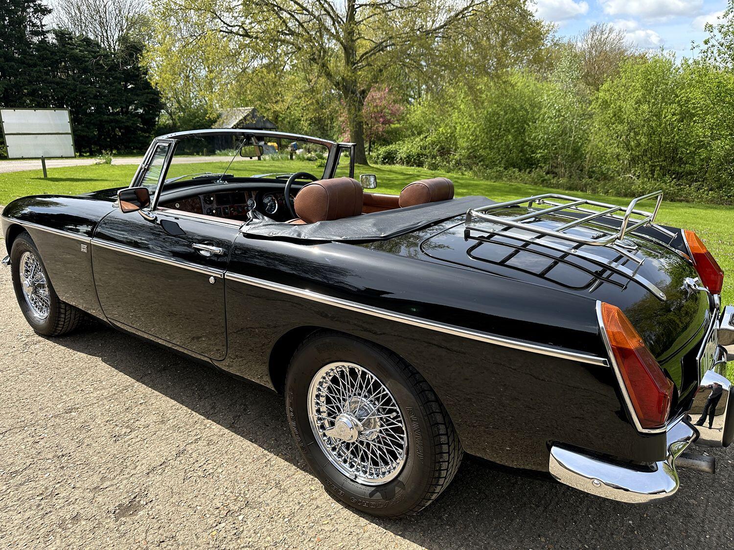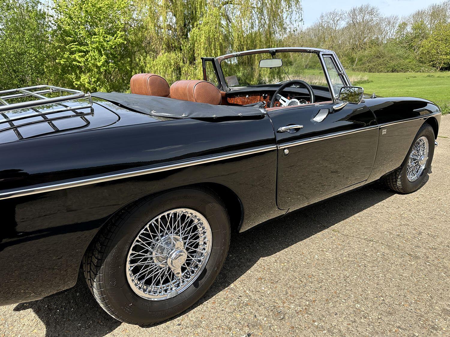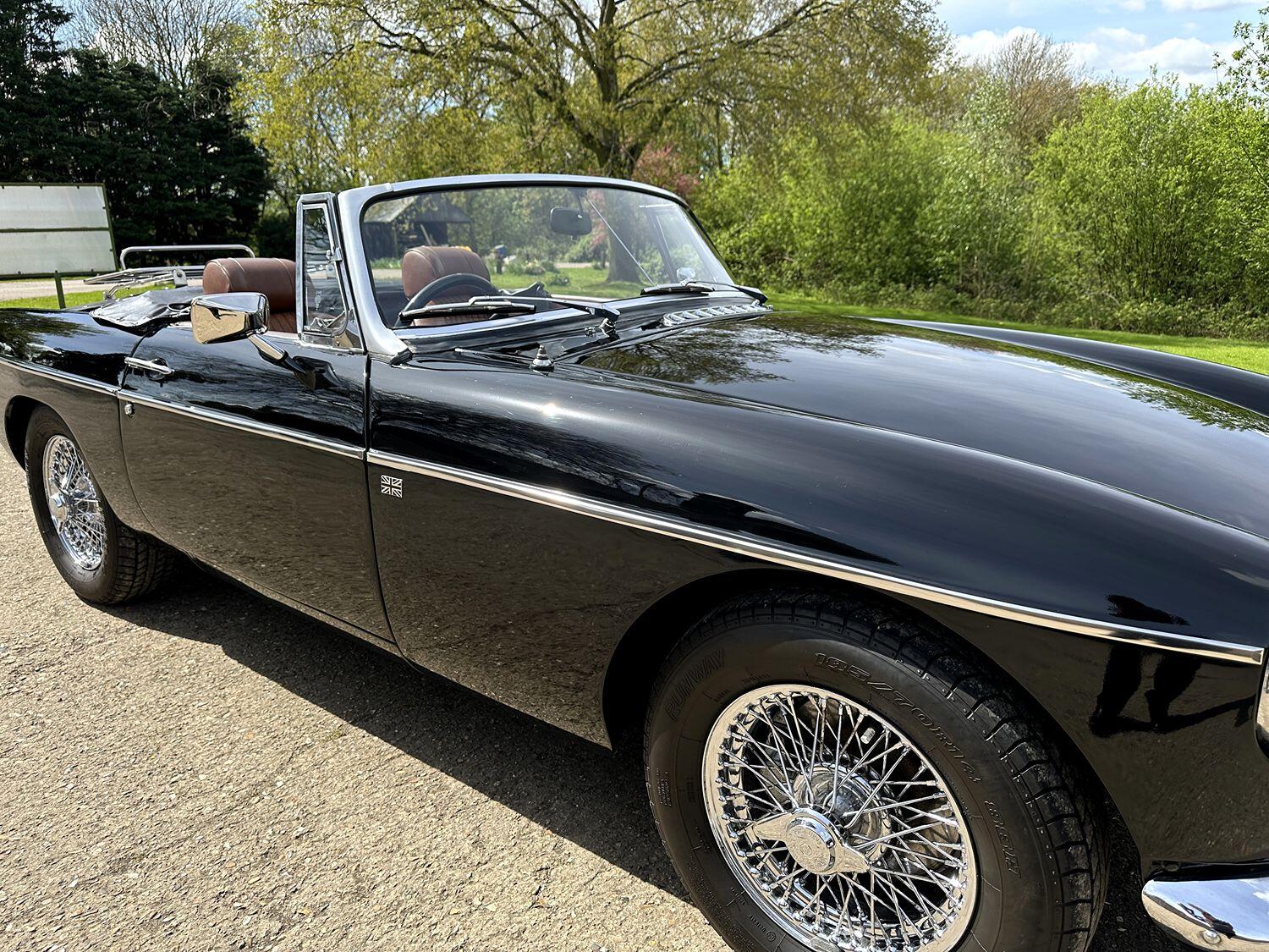 Just arrived back with us here at RFH Classics we have this stunning example of a 1973 (L) MGB Roadster finished in Gloss Black with the contrasting Tan trim. The beautiful example is one that we sold around 18 months ago and recently taken the car back in part exchange and is a real head turner of a car. The bodywork is in excellent condition and Black is quite an unusual body colour to find but really suits the shape. The interior is finished in the Weave Tan trim with contrasting Black carpets and reading through the history it appears these were replaced when a considerable amount of other work was undertaken in 2017, a glance through the paperwork shows a receipt for new trim along with a new hood, replacement dashboard as well as an invoice to repaint the car suggesting that this is the last time the car was refurbished. In addition in the history file we have invoices for a very recent service and MOT test.