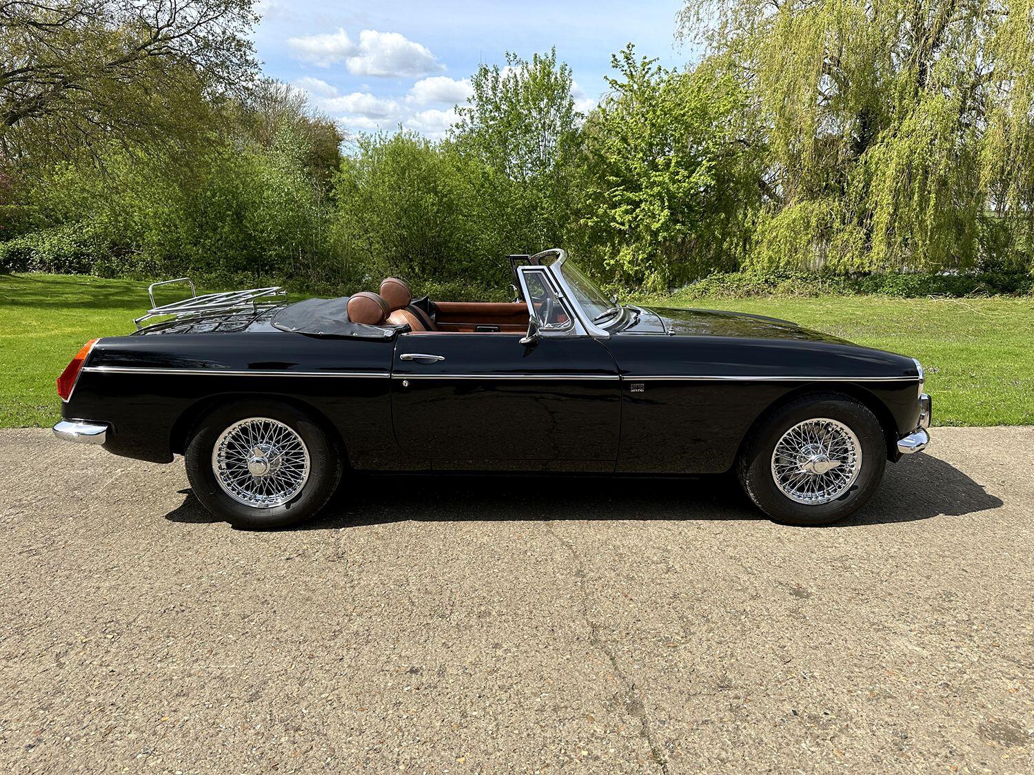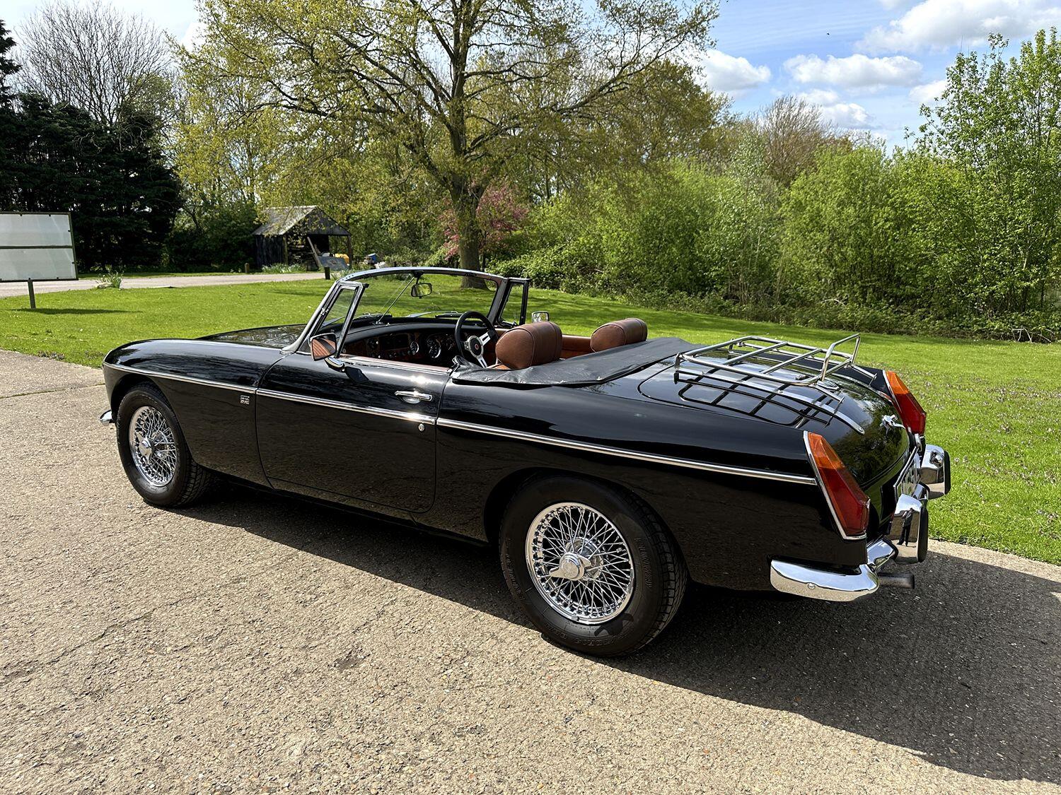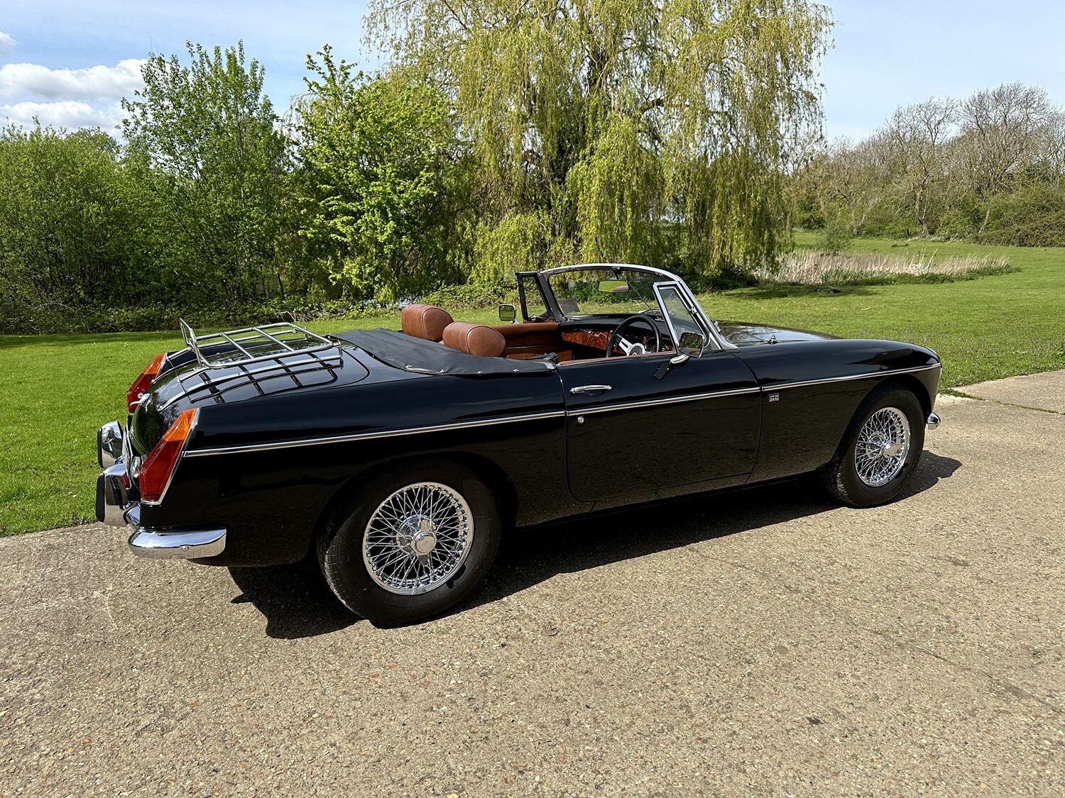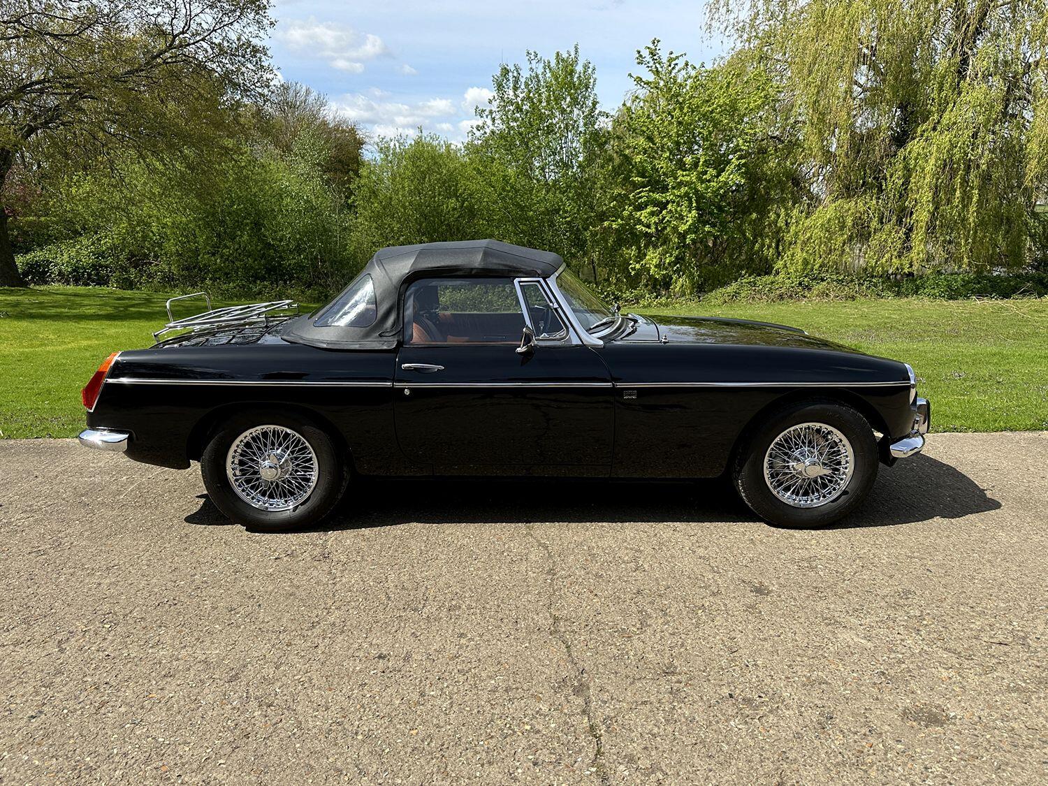 Just arrived back with us here at RFH Classics we have this stunning example of a 1973 (L) MGB Roadster finished in Gloss Black with the contrasting Tan trim. The beautiful example is one that we sold around 18 months ago and recently taken the car back in part exchange and is a real head turner of a car. The bodywork is in excellent condition and Black is quite an unusual body colour to find but really suits the shape. The interior is finished in the Weave Tan trim with contrasting Black carpets and reading through the history it appears these were replaced when a considerable amount of other work was undertaken in 2017, a glance through the paperwork shows a receipt for new trim along with a new hood, replacement dashboard as well as an invoice to repaint the car suggesting that this is the last time the car was refurbished. In addition in the history file we have invoices for a very recent service and MOT test.