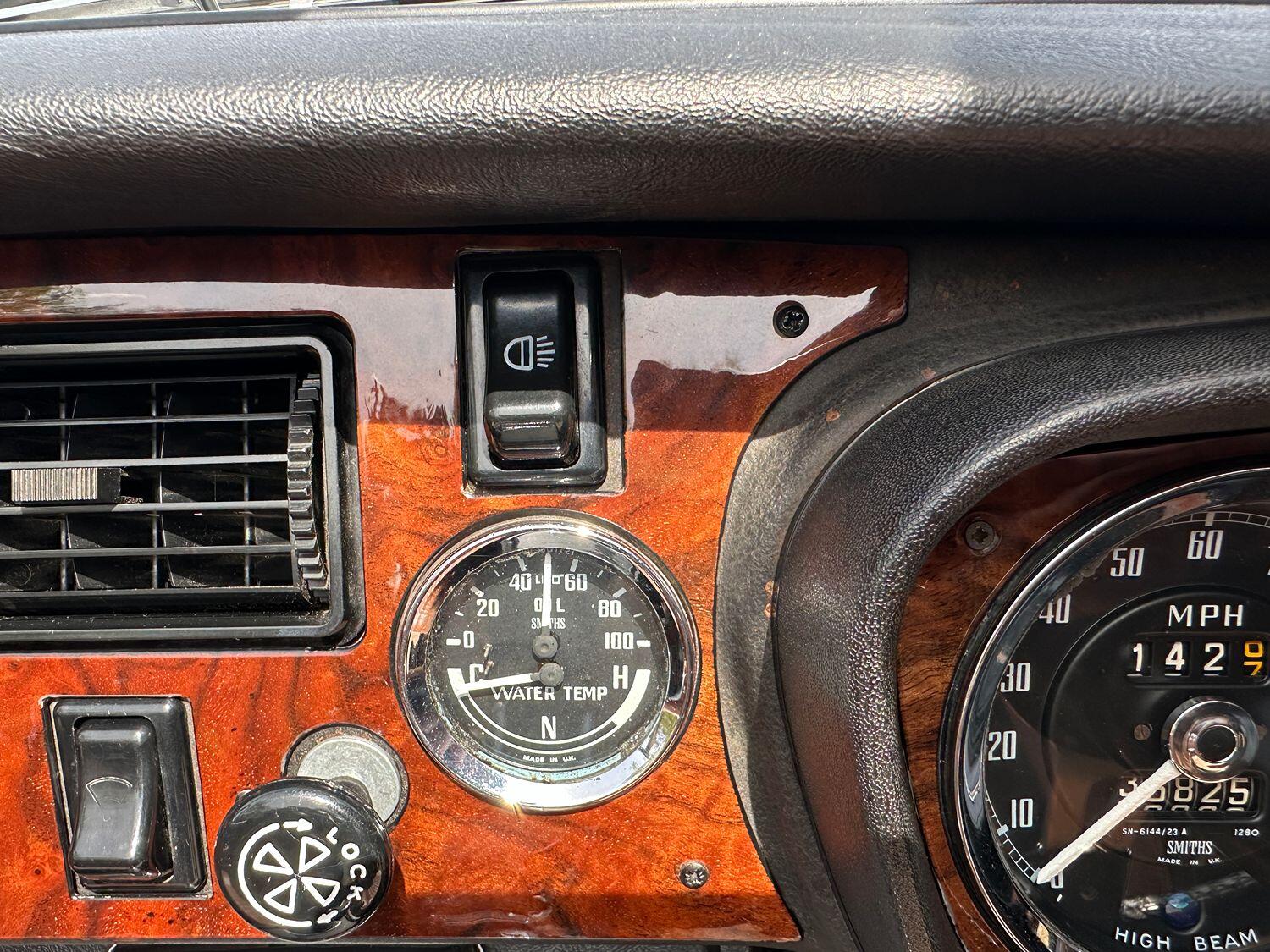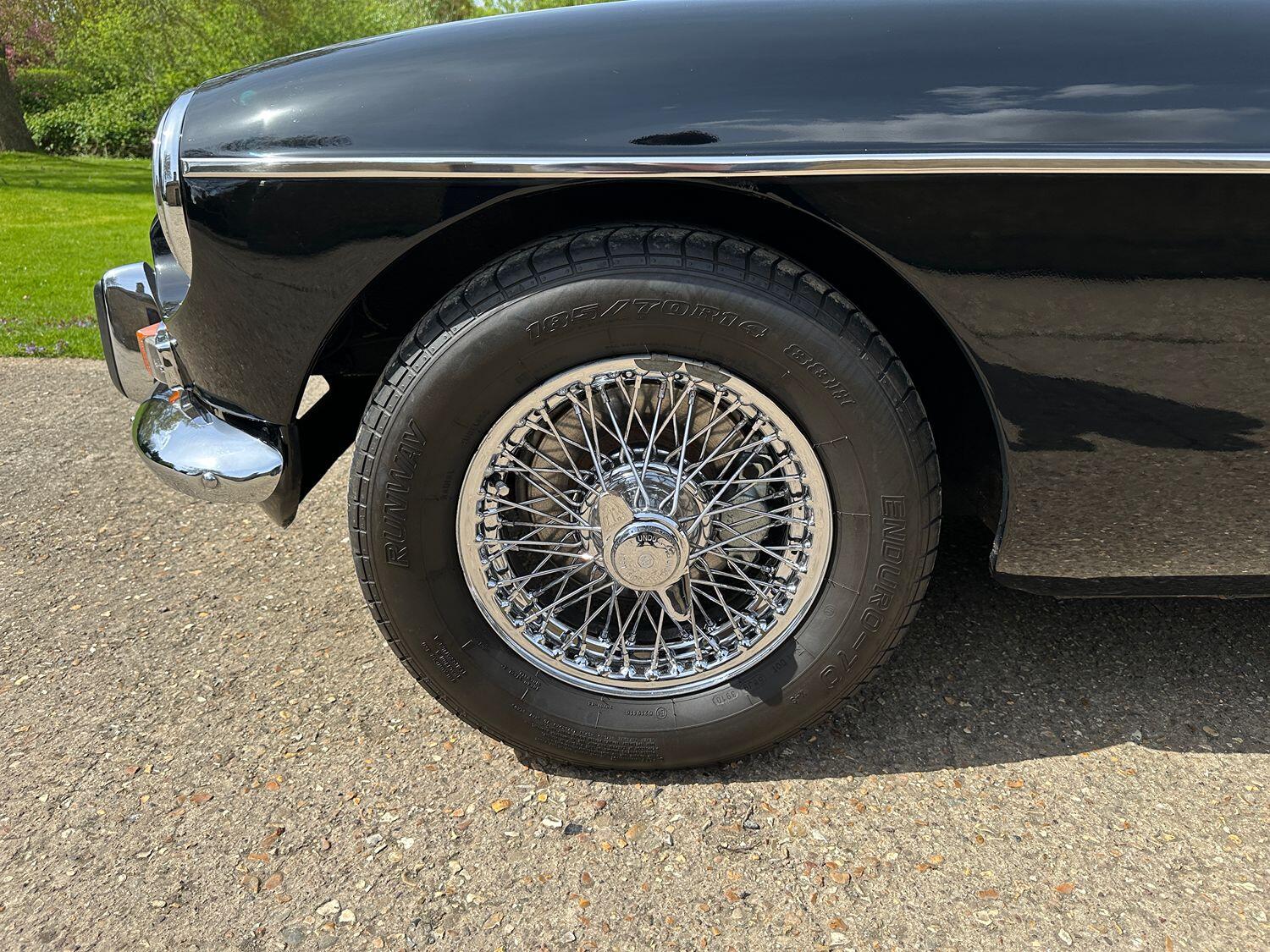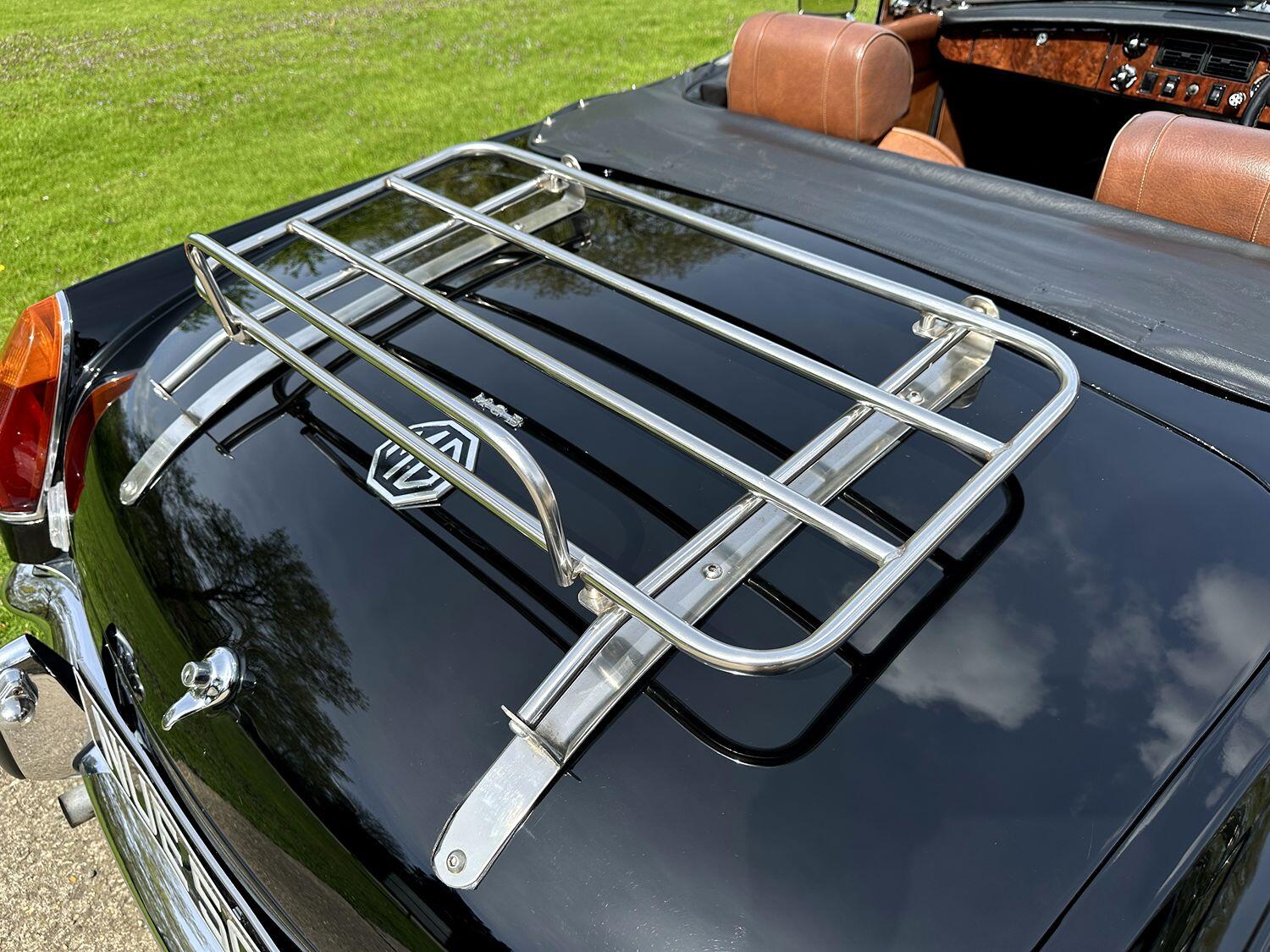 Under the bonnet sits the 4 cylinder petrol engine which is running lead free fuel, the engine fires into life well cold with a little choke and has great oil pressure. We collected the car from the previous owner and had about an hour’s drive back to the showroom so we can also confirm the car drives as well as it looks and that the Overdrive is working perfectly. It is difficult to find something you won’t like about this great looking car because like the rest of it the chrome work is in great condition and is finished off with those lovely wire wheels that shine so well. If you are in the market for a great looking MBG that stands out from the crowd then this one has to be up there to see.