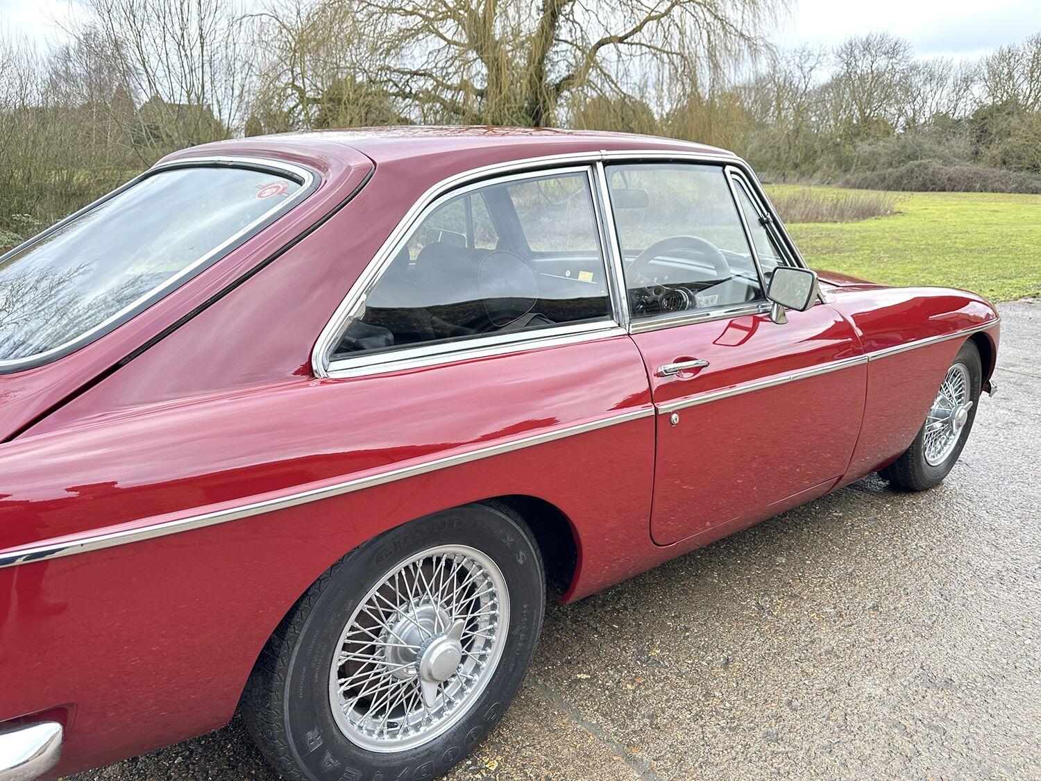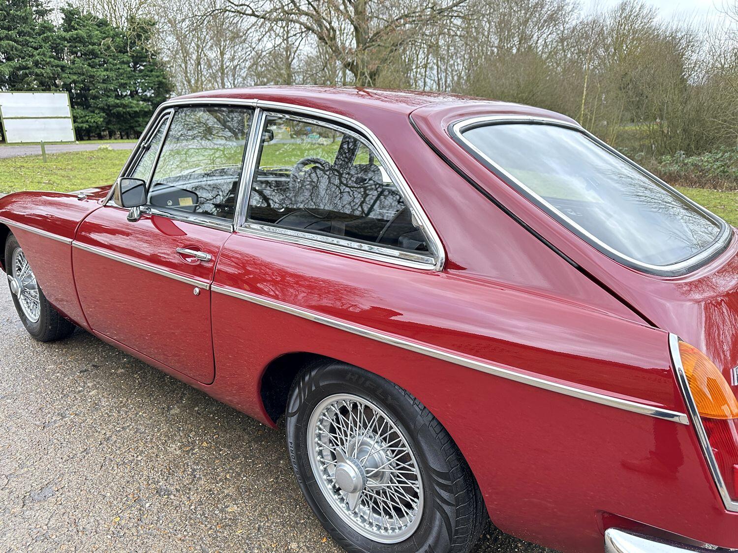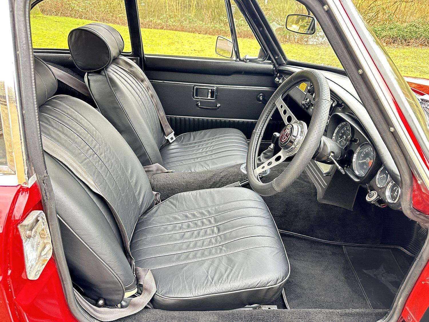 Many enthusiasts may not realize that the MGB GT was originally designed by Pininfarina, which explains its enduring appeal and stylish silhouette. Inside, the original Dimple-style vinyl seats have been modernised with Black Leather which only helps contribute to the car’s period charm. The rest of the interior features well preserved carpets and trim making this a truly inviting place to be.