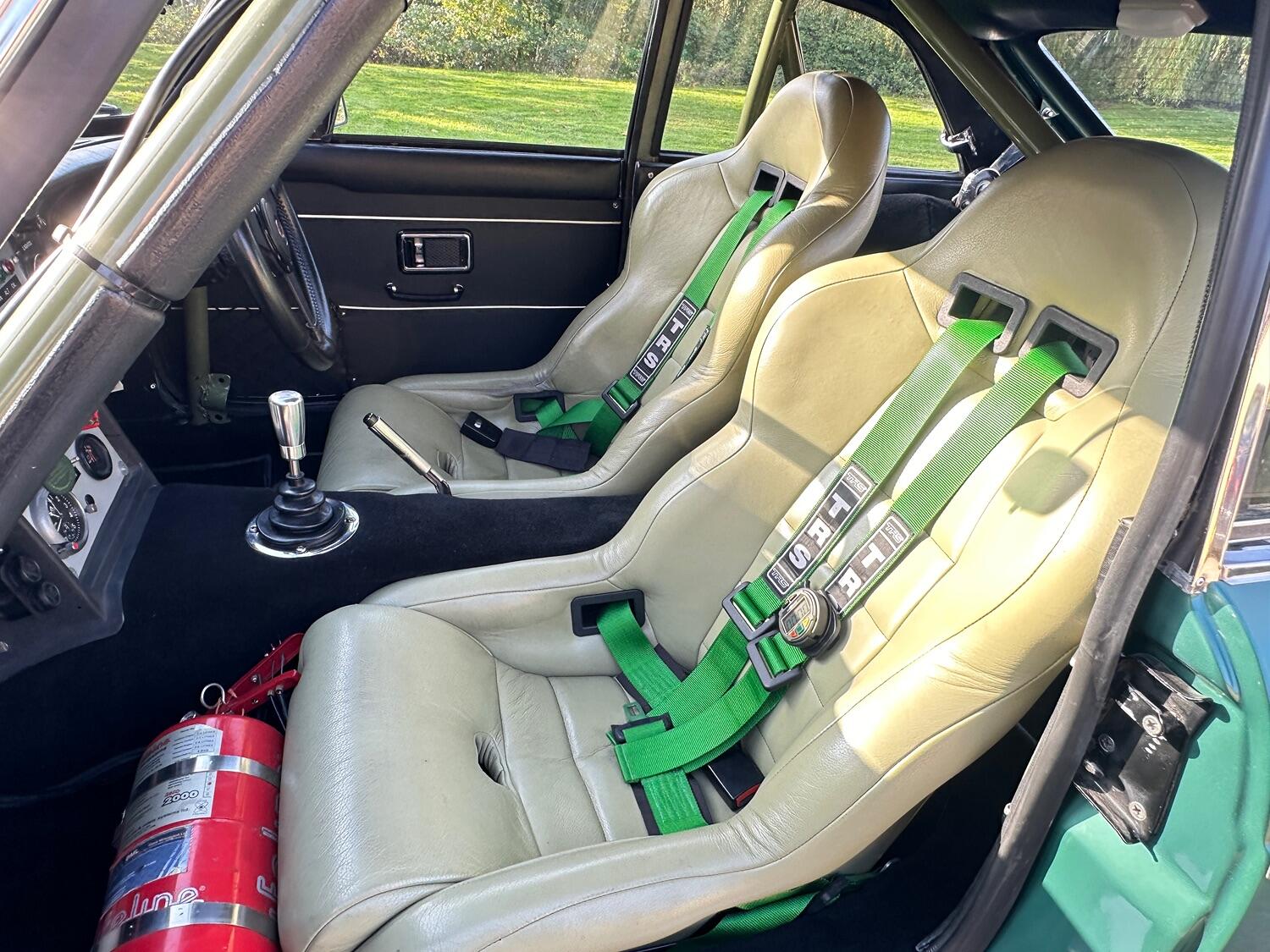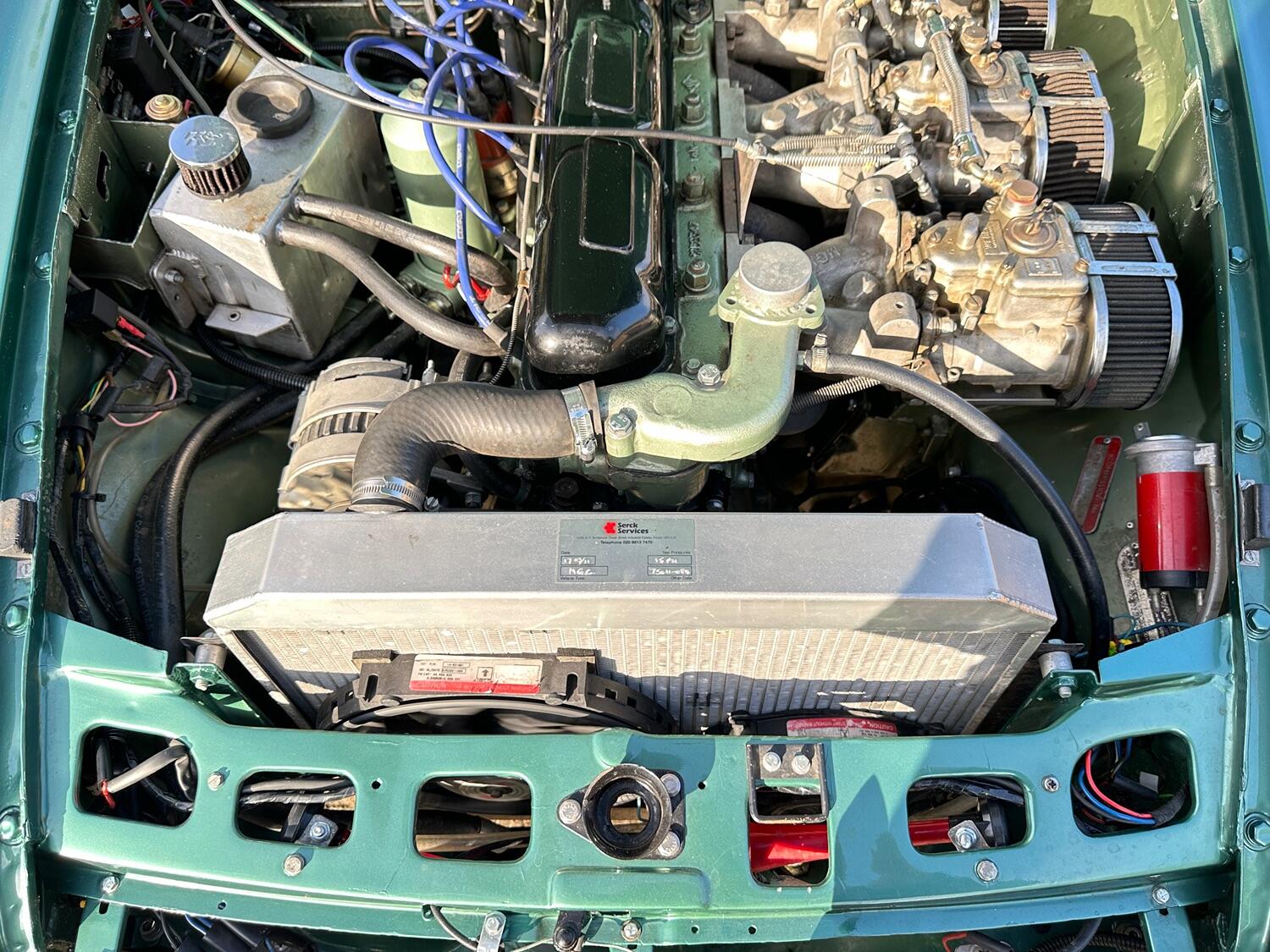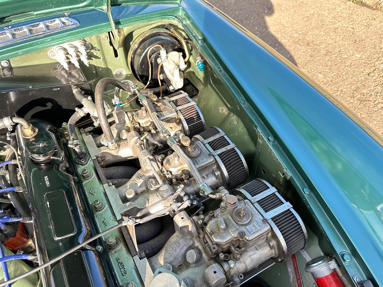 The engine showcases meticulous period-correct tuning, now running on Triple Weber carburettors and tested to produce 185 bhp. Safety and performance modifications include a lightened and balanced flywheel, twin Downton free-flow manifolds, MG Motorsport distributor modifications and a Kenlow fan with a manual override for optimal cooling. This powerful engine is paired with a 5-speed manual gearbox, transmitting power through an upgraded rear axle with a limited-slip differential to handle torque and improve traction. Recently, the car has been fitted with a complete new clutch assembly, among other enhancements, ensuring it’s ready for immediate use.