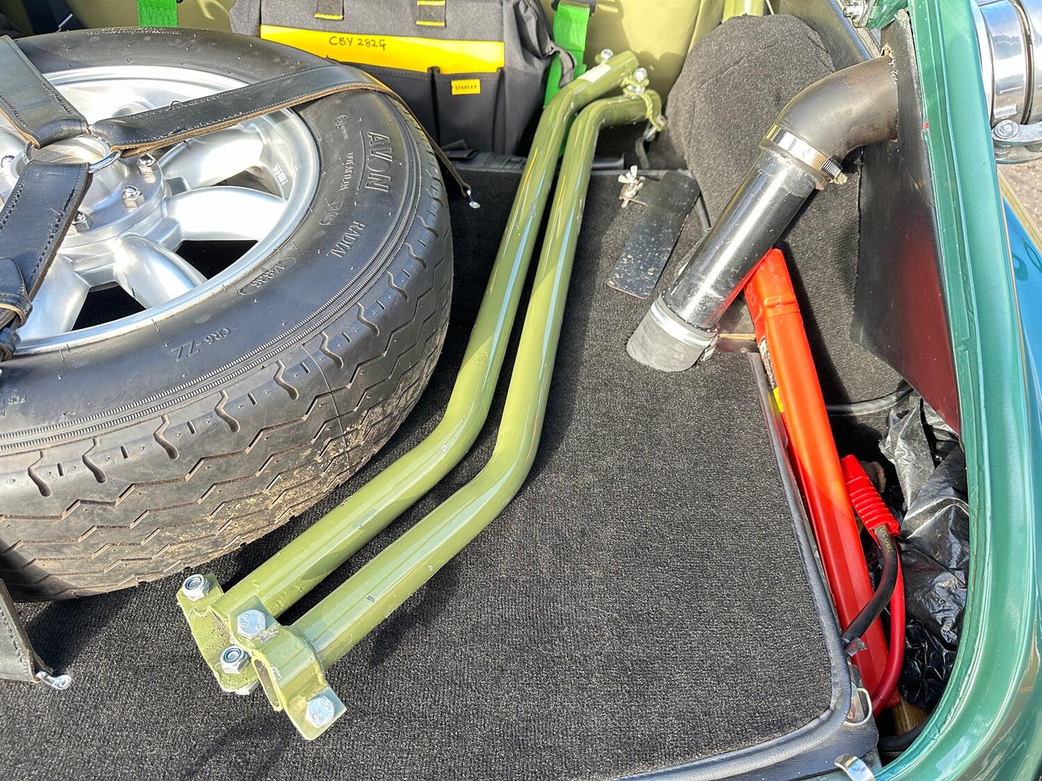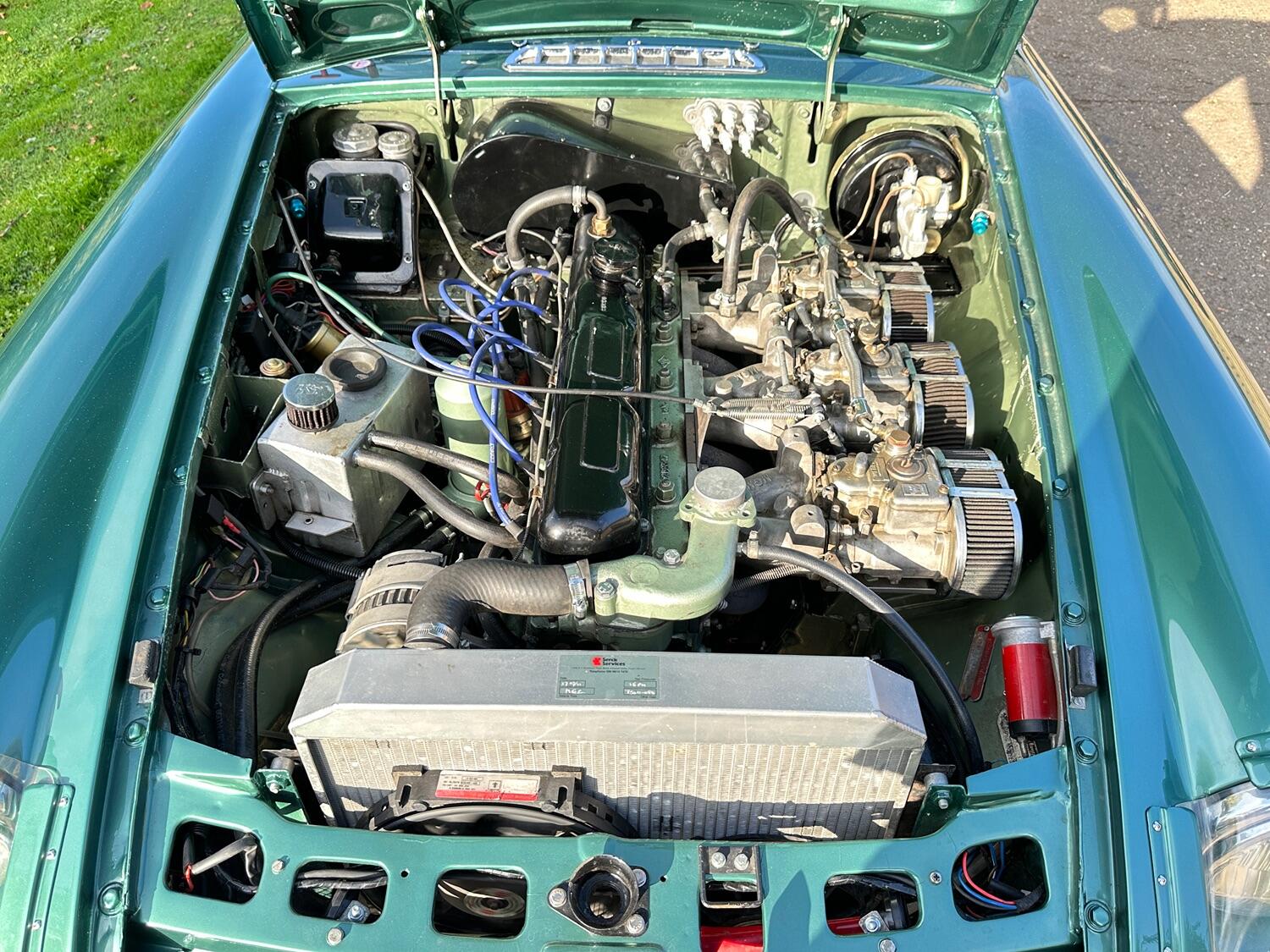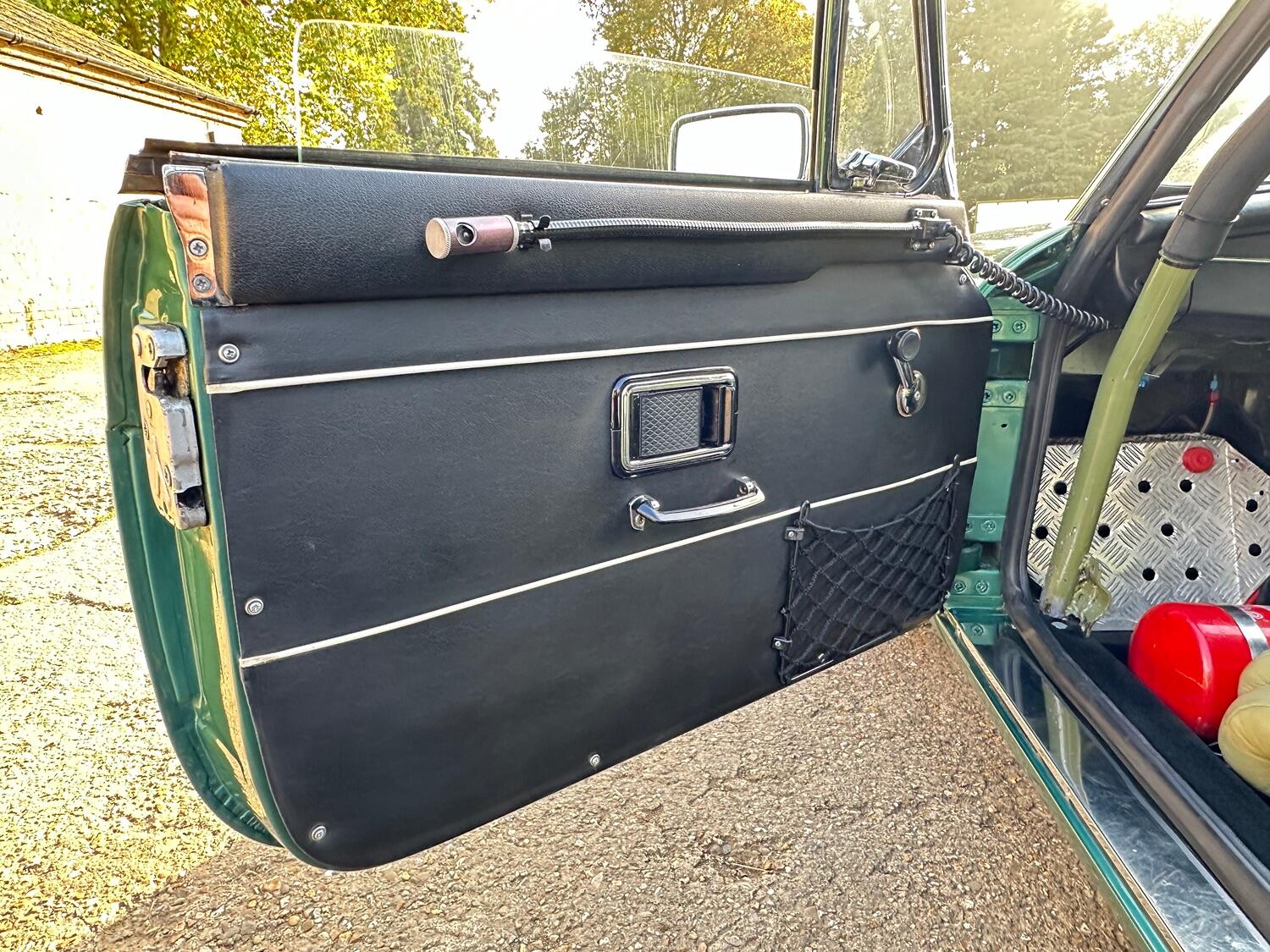 The engine showcases meticulous period-correct tuning, now running on Triple Weber carburettors and tested to produce 185 bhp. Safety and performance modifications include a lightened and balanced flywheel, twin Downton free-flow manifolds, MG Motorsport distributor modifications and a Kenlow fan with a manual override for optimal cooling. This powerful engine is paired with a 5-speed manual gearbox, transmitting power through an upgraded rear axle with a limited-slip differential to handle torque and improve traction. Recently, the car has been fitted with a complete new clutch assembly, among other enhancements, ensuring it’s ready for immediate use.