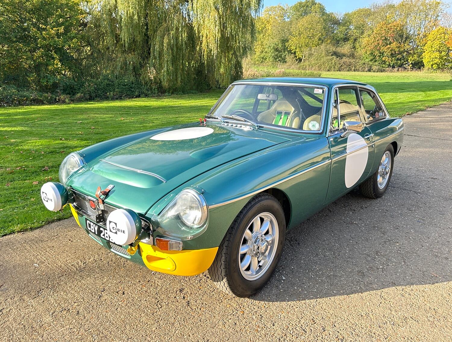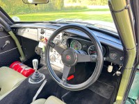 With us here at RFH Classics we are excited to bring you this exceptional 1969 MGC GT is finished in Aston Martin Green, with Connolly leather-covered Ricard seats and TRS 4-point harnesses. This original UK supplied car has undergone extensive handling enhancements including special neoprene bushes, upgraded steering arms and now sits on triple spinner Minilite wheels. It features a full FIA rally cage with a detachable steering wheel as well as a Le Mans-style side-mounted fuel filler, which facilitates efficient refuelling to the modified, vented fuel tank.