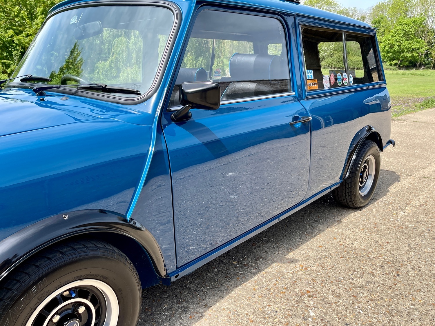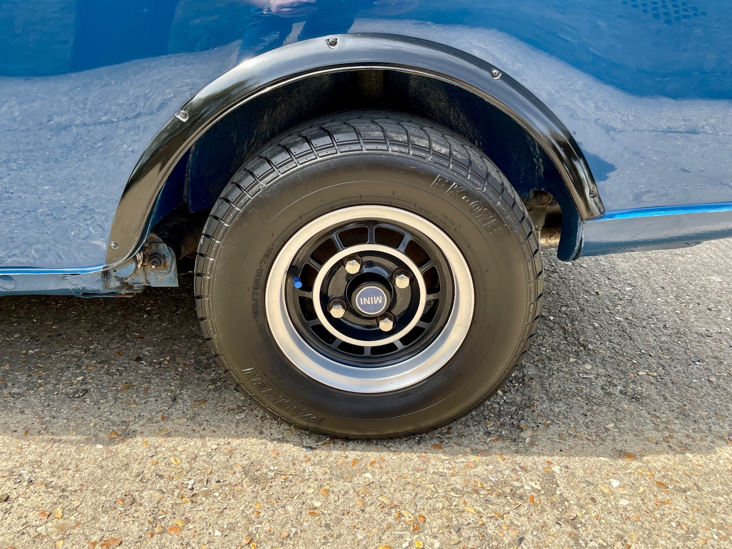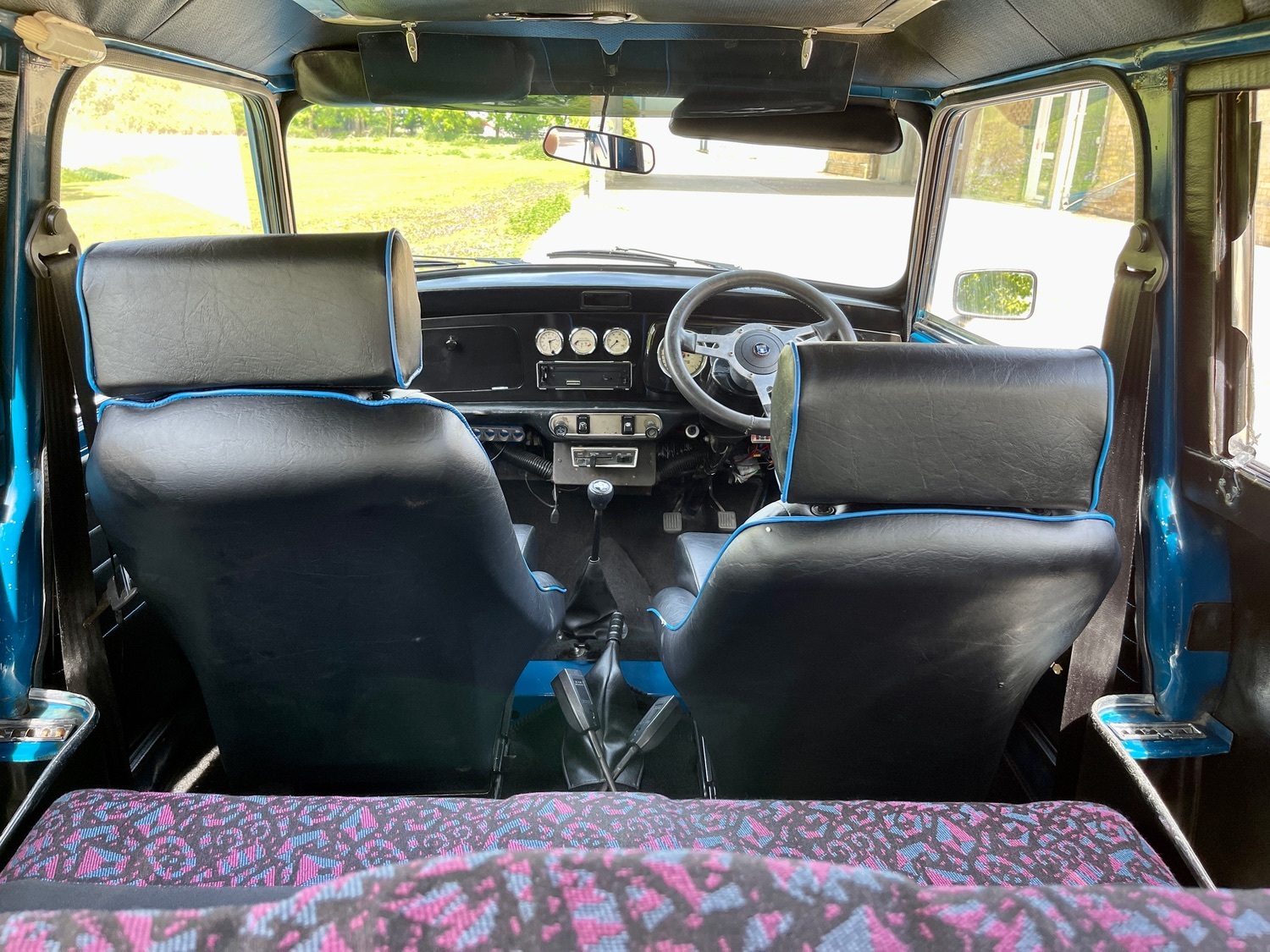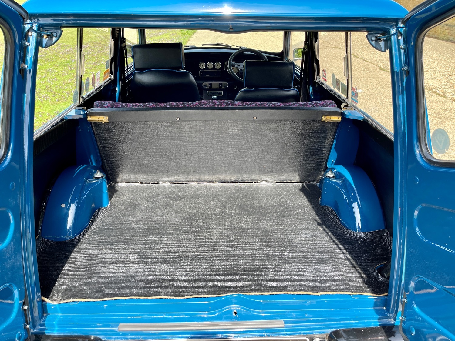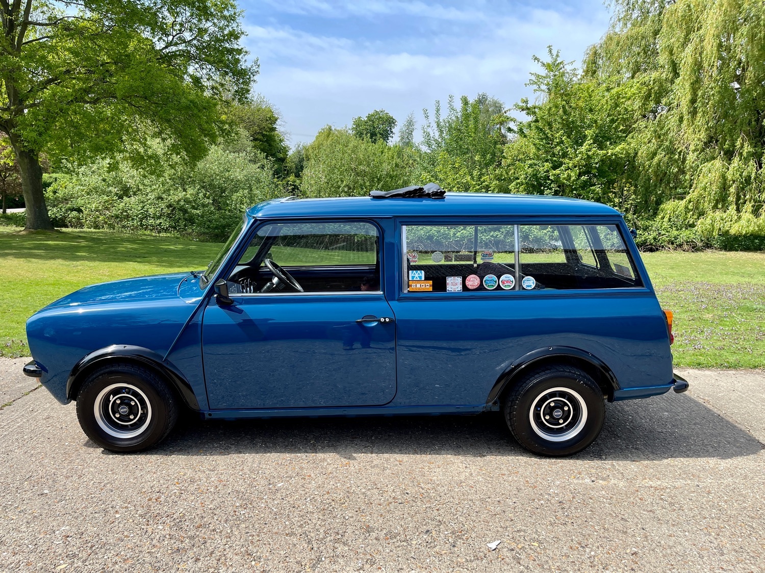 In stock with us at RFH Classics we have this 1971 (J) Leyland Mini Clubman Estate finished in Teal Blue with Black Trim. Now this little stunner is not quite a standard Clubman, it has been upgraded to have a 1275cc engine making it some what more responsive than it would have been with the original 998cc. The engine has great oil pressure both hot and cold and ticks over very smoothly. The exterior of the car was painted around 10 years ago and has stood the test of time exceptionally well as you can see from the pictures. Inside has been updated too in a number of ways, it has fitted twin Classic Mini Bucket seats to the front along with a Polished dash featuring Cream dials that looks really good. From the pictures you will see that it has a Webasto style full length sunroof which makes the interior feel very light and spacious when open. To finish it off the look the wheels have been replaced with 10" Mini Classic style alloy wheels that suit the car very well. This is a really head turner of a car and if you are looking for a classic mini this has to be up there.