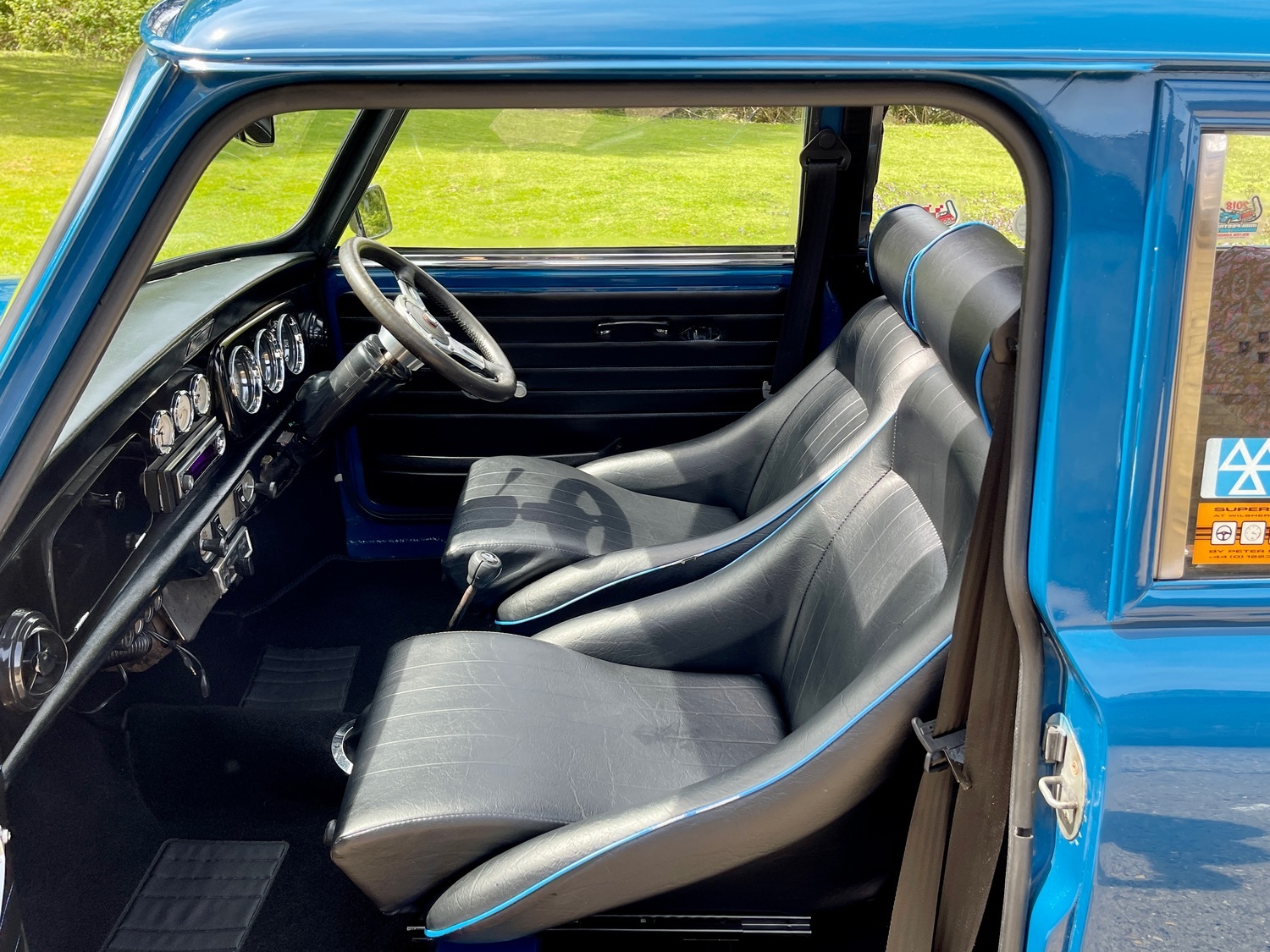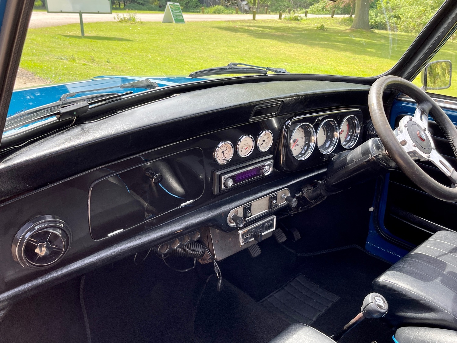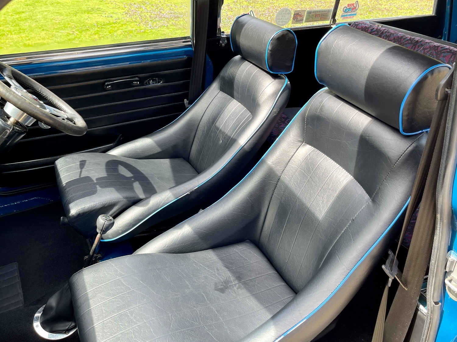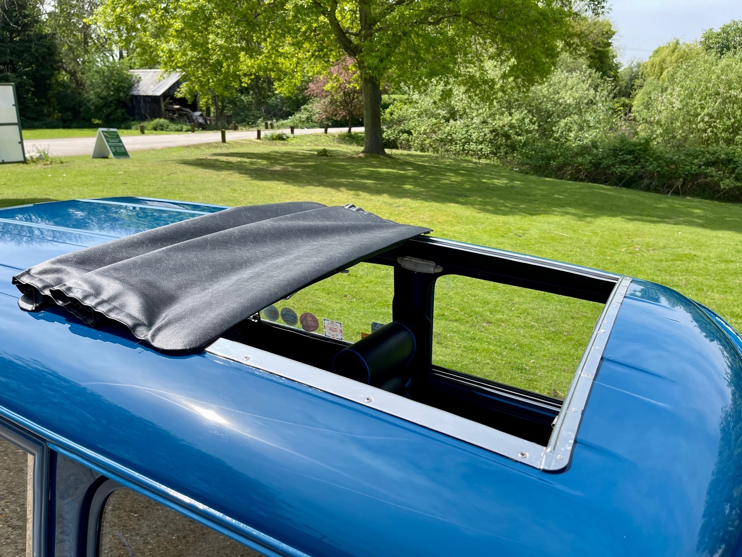 In stock with us at RFH Classics we have this 1971 (J) Leyland Mini Clubman Estate finished in Teal Blue with Black Trim. Now this little stunner is not quite a standard Clubman, it has been upgraded to have a 1275cc engine making it some what more responsive than it would have been with the original 998cc. The engine has great oil pressure both hot and cold and ticks over very smoothly. The exterior of the car was painted around 10 years ago and has stood the test of time exceptionally well as you can see from the pictures. Inside has been updated too in a number of ways, it has fitted twin Classic Mini Bucket seats to the front along with a Polished dash featuring Cream dials that looks really good. From the pictures you will see that it has a Webasto style full length sunroof which makes the interior feel very light and spacious when open. To finish it off the look the wheels have been replaced with 10" Mini Classic style alloy wheels that suit the car very well. This is a really head turner of a car and if you are looking for a classic mini this has to be up there.