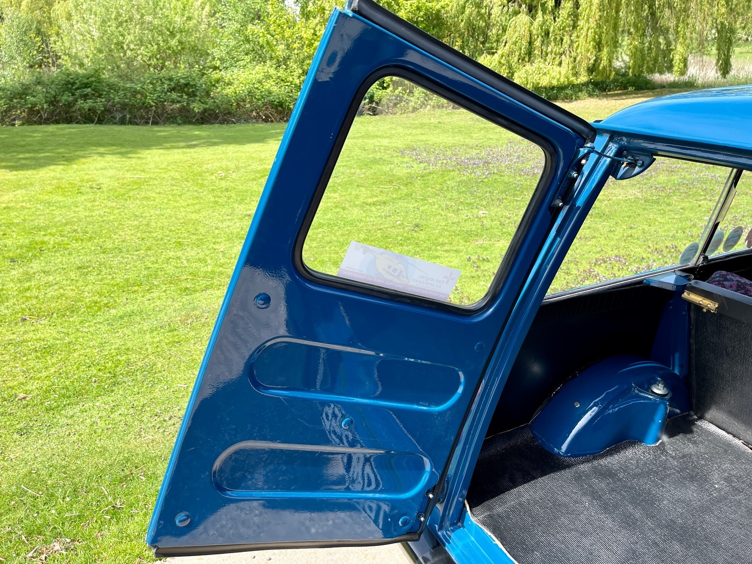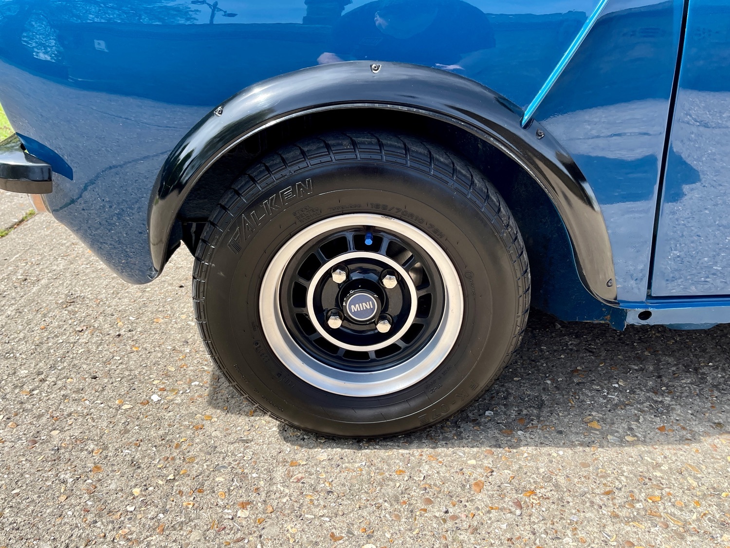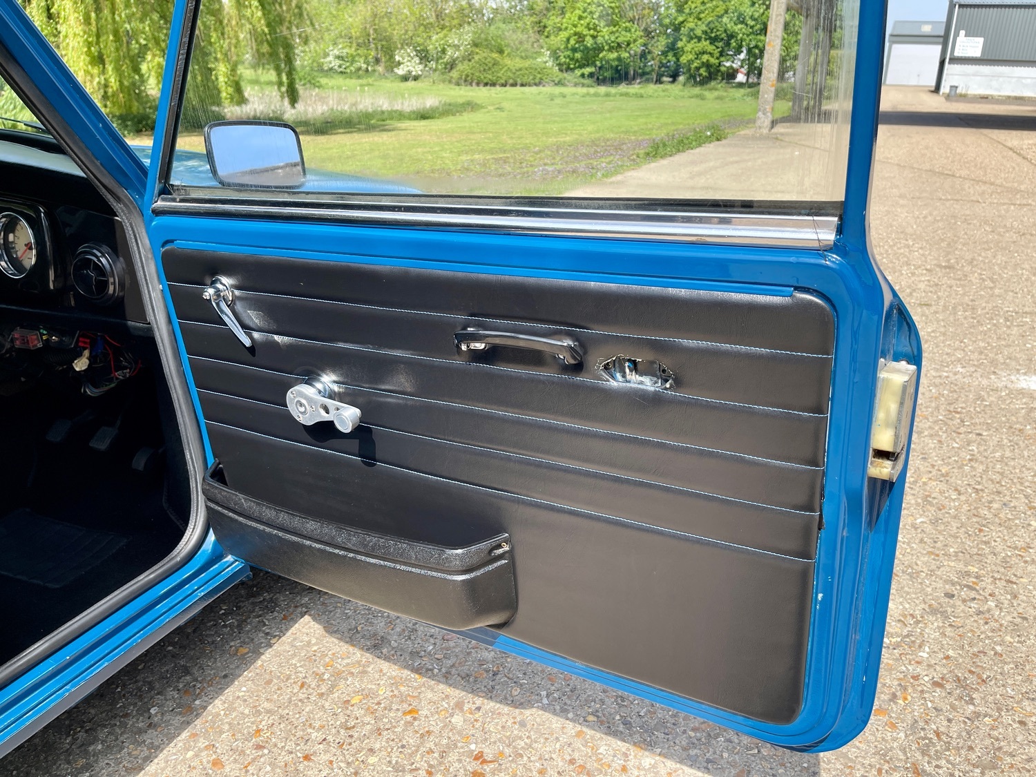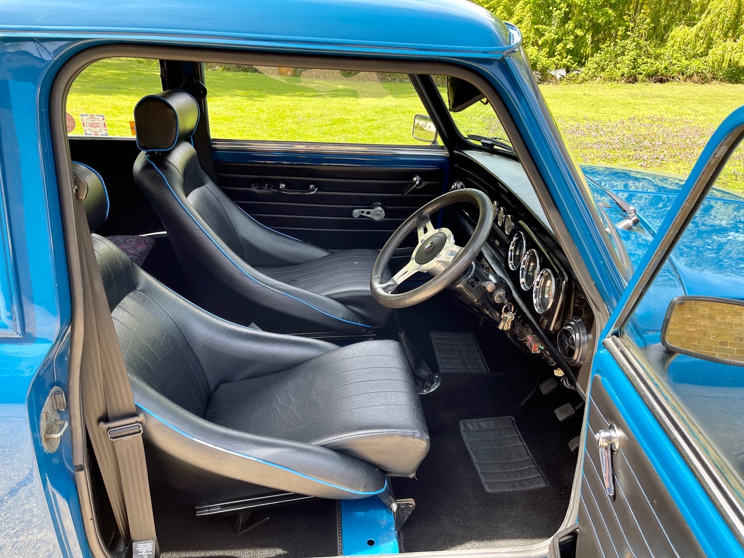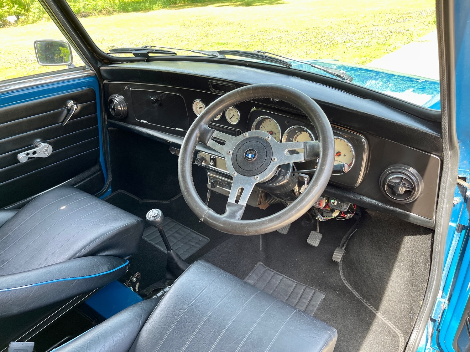 In stock with us at RFH Classics we have this 1971 (J) Leyland Mini Clubman Estate finished in Teal Blue with Black Trim. Now this little stunner is not quite a standard Clubman, it has been upgraded to have a 1275cc engine making it some what more responsive than it would have been with the original 998cc. The engine has great oil pressure both hot and cold and ticks over very smoothly. The exterior of the car was painted around 10 years ago and has stood the test of time exceptionally well as you can see from the pictures. Inside has been updated too in a number of ways, it has fitted twin Classic Mini Bucket seats to the front along with a Polished dash featuring Cream dials that looks really good. From the pictures you will see that it has a Webasto style full length sunroof which makes the interior feel very light and spacious when open. To finish it off the look the wheels have been replaced with 10" Mini Classic style alloy wheels that suit the car very well. This is a really head turner of a car and if you are looking for a classic mini this has to be up there.