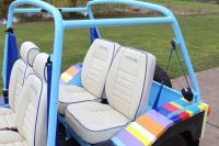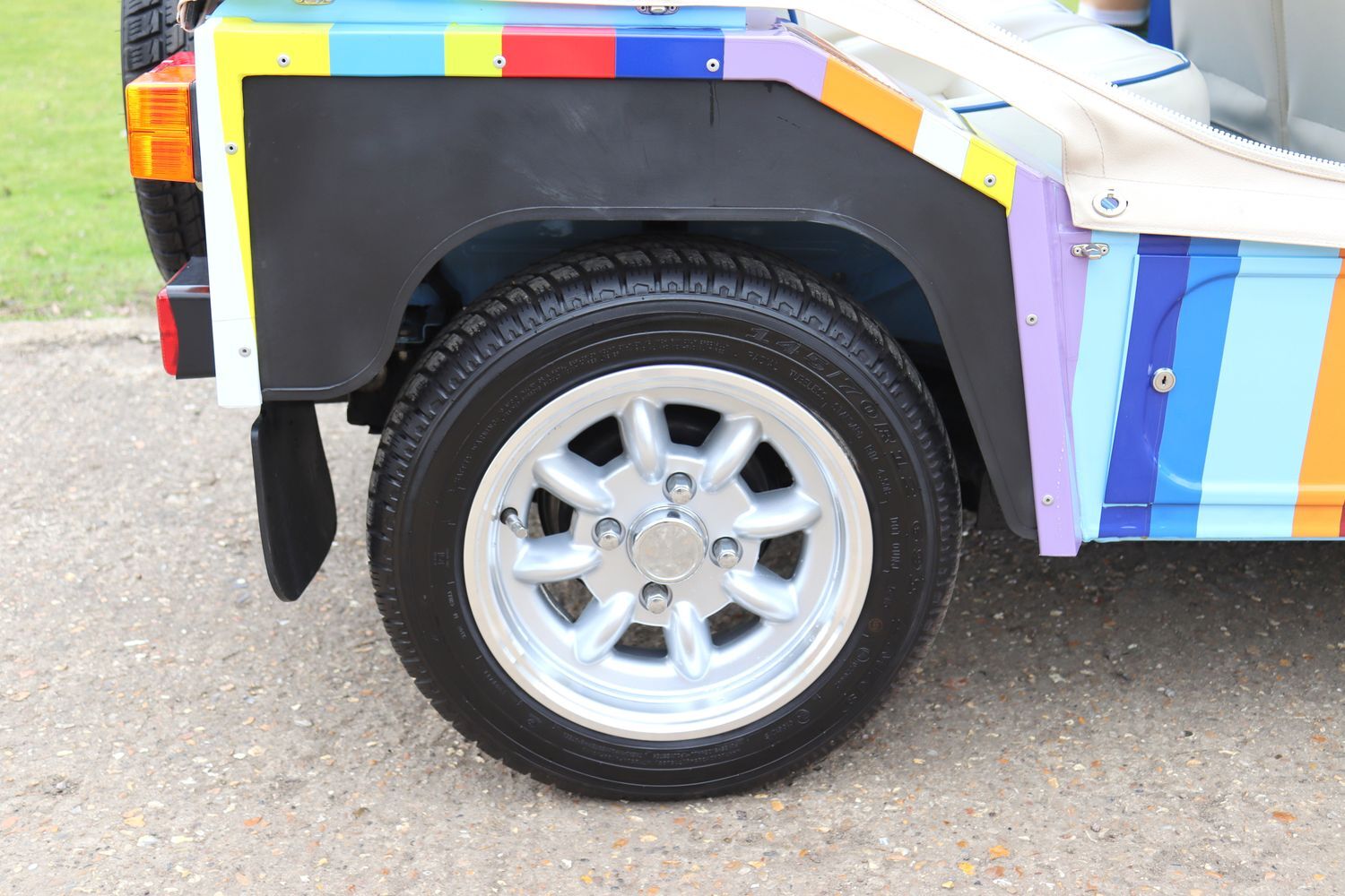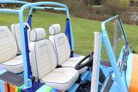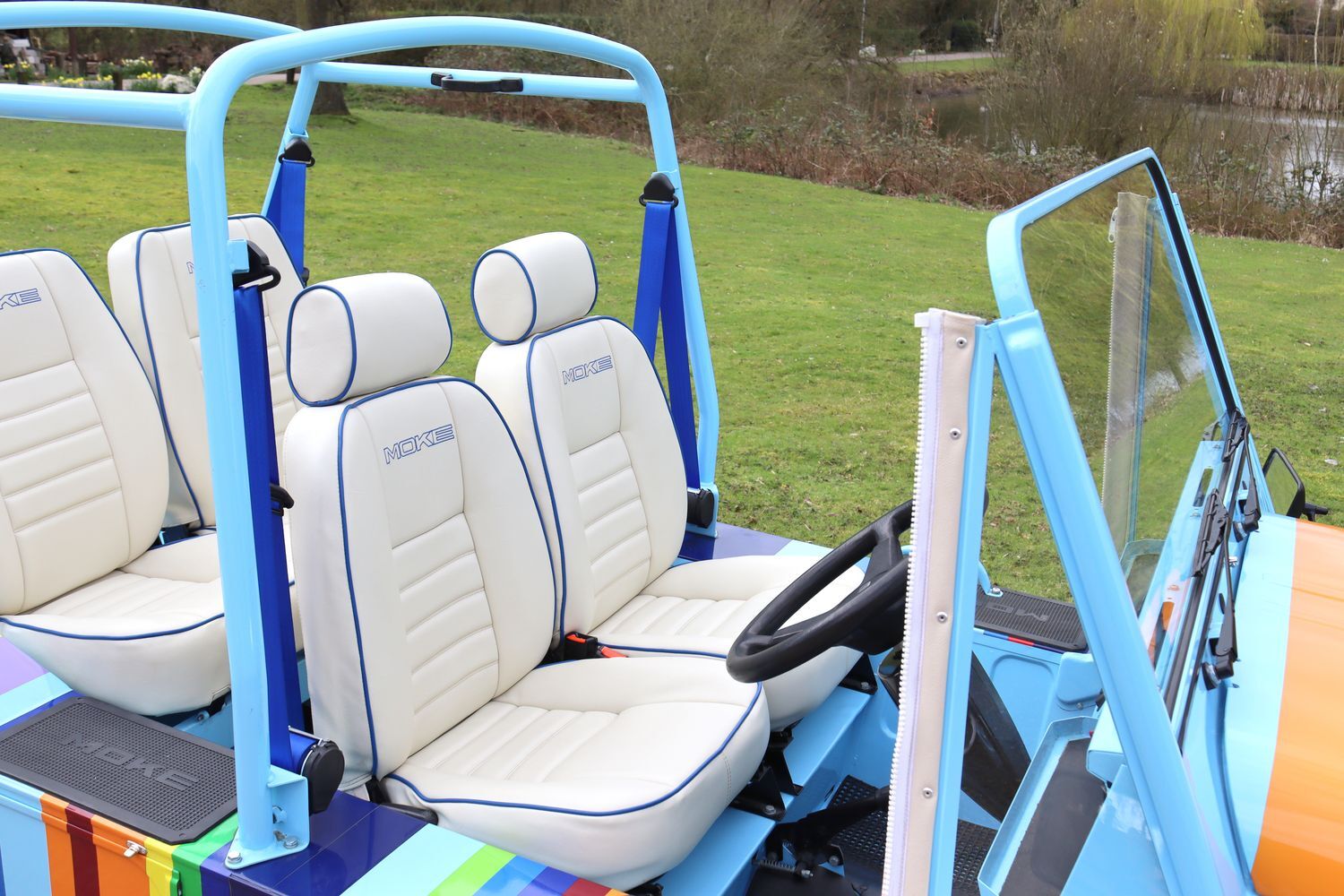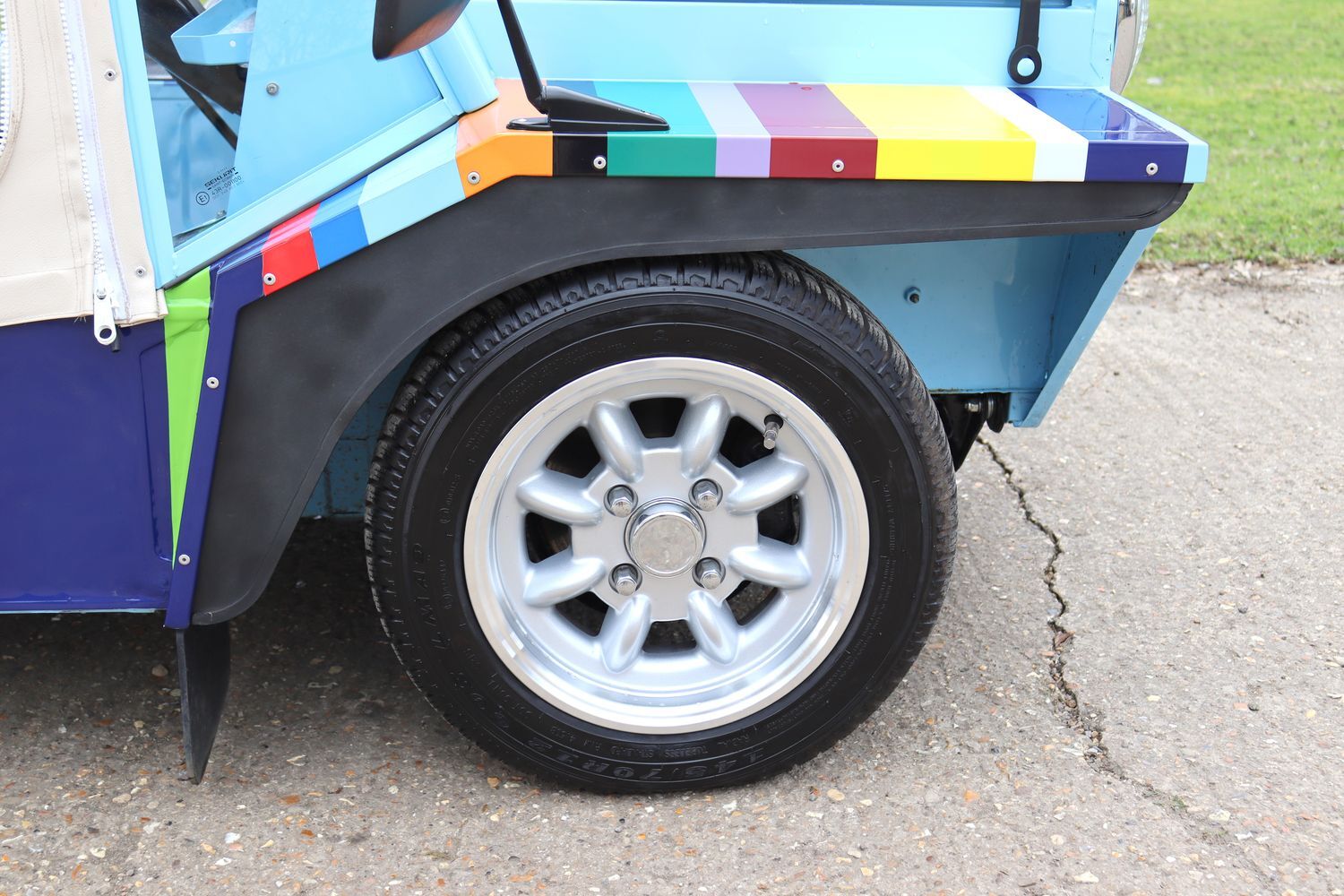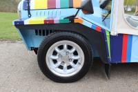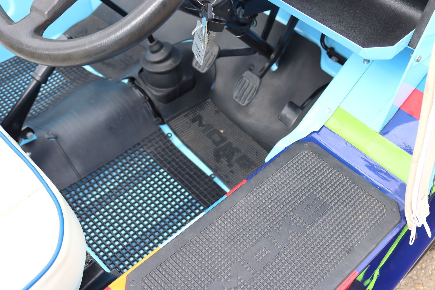 Just arrived at RJH Cars we have this absolute stunner of a 1993 Mini Moke that has been fully restored and now sporting the Paul Smith Colours. This Moke was originally supplied new to Manila where it was used for tourists on the island. The car was shipped back to the UK around five years ago where its previous owner commissioned the car to be totally restored and replicated as a Paul Smith vision of the Moke as you see it today. Primarily it was built for use at his holiday home during the summer which is when a car like as this comes into its own. All 4 seats are fitted with inertia seat belts making it great fun to use not only as an adults car but secure for the kids to come along too. This very fine example is in outstanding condition and has the later seats, polished alloy wheels and the benefit of total wet weather equipment.