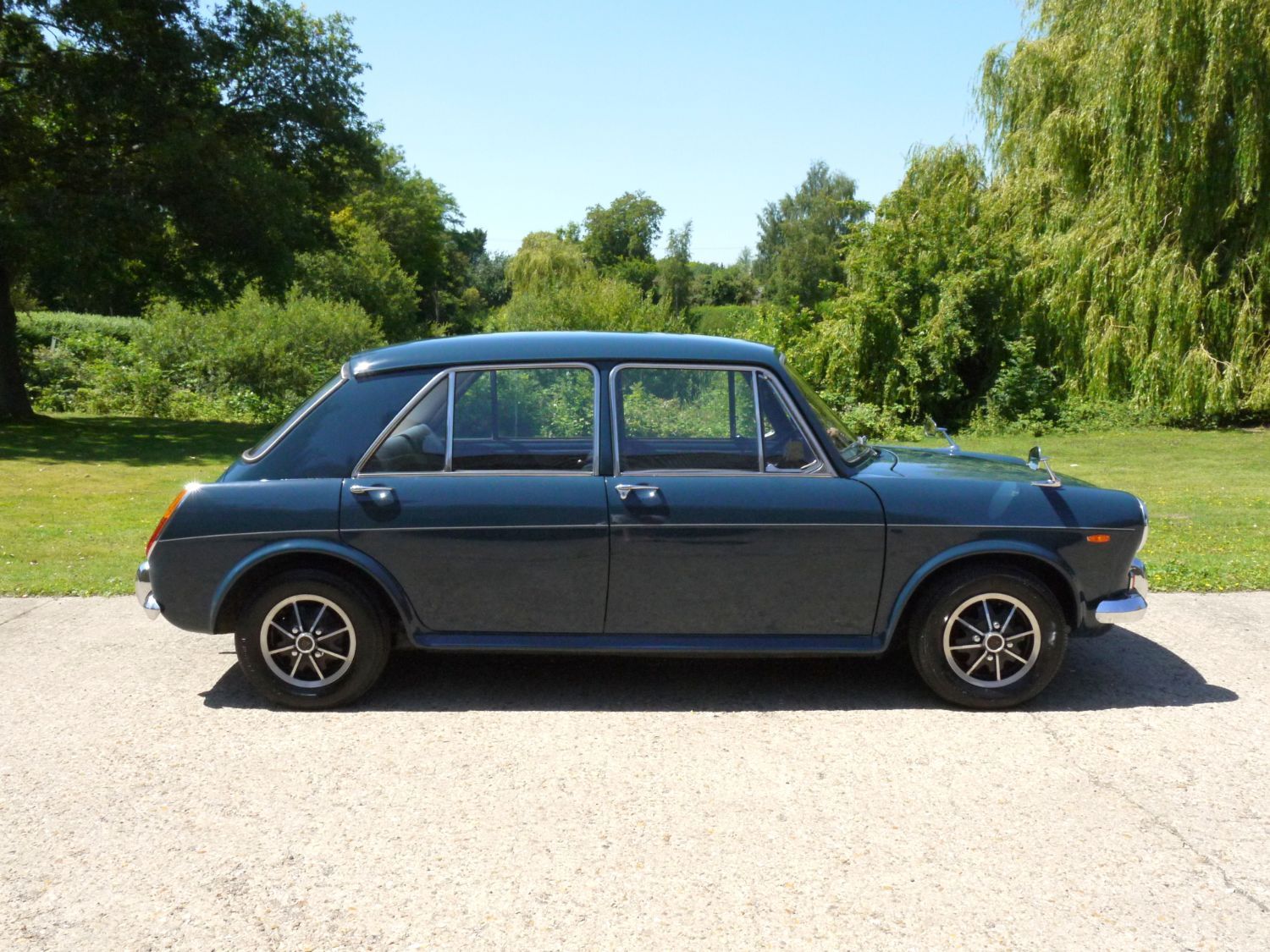 RFH Classics have here a 1970 Morris 1100 MKII 4 Dr finished in Blue with contrasting Blue trim. The car has done a fraction over 64k and starts and runs beautifully. It’s had 3 owners and is fitted with the optional Dunlop Alloy Wheels. We hold in the office a substantial amount of manuals and books for the car and it also benefits from having available the original steel wheels and chrome trims. The car is in lovely condition throughout and is big enough to include the family with any classic car hobby.