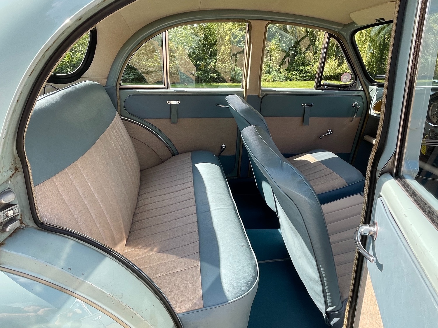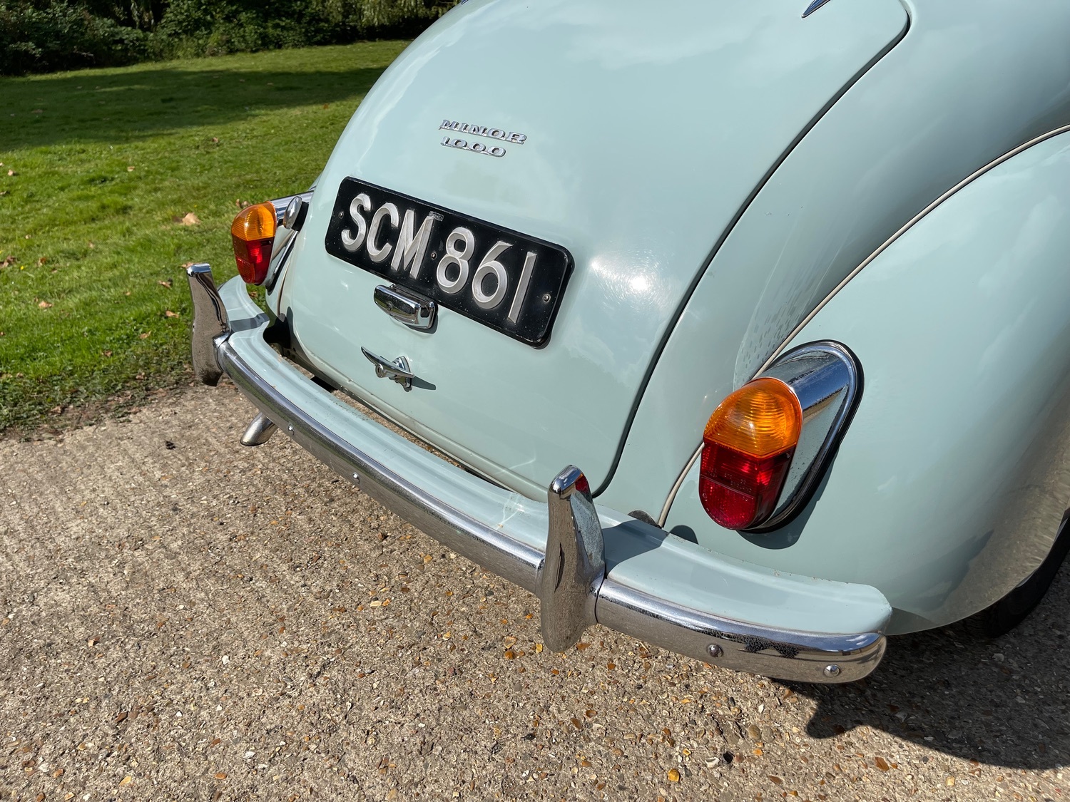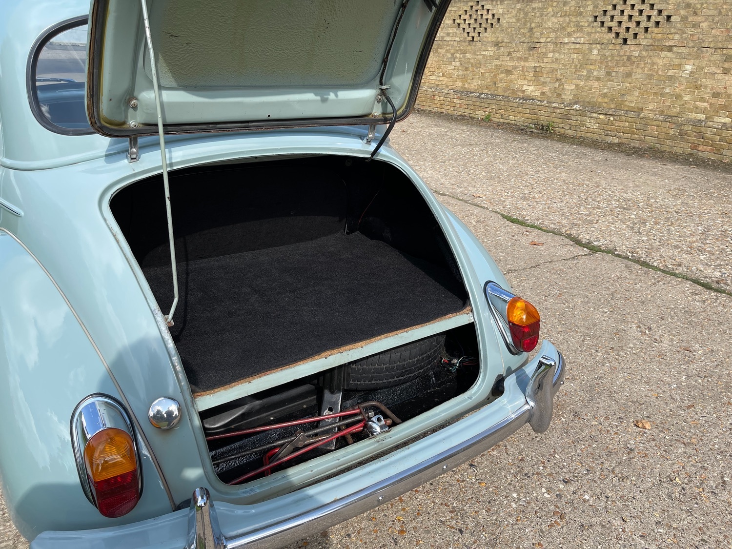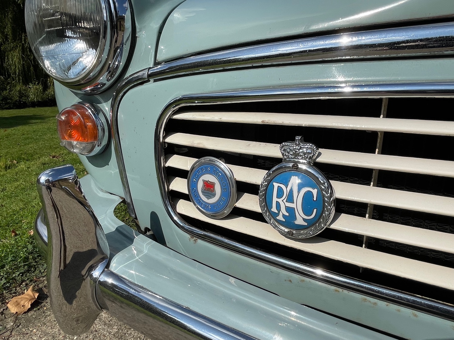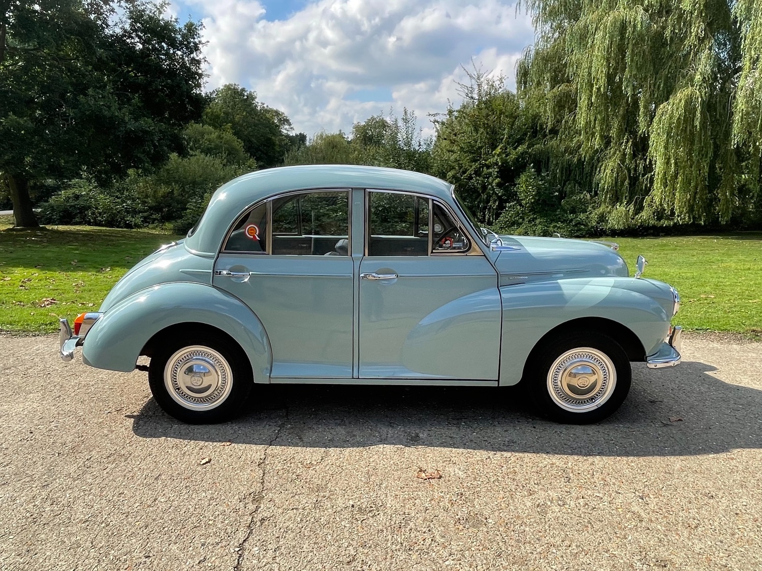 In stock with us here at RFH Classics we have this 1964 Morris Minor 1000 4 Dr finished in Smoke Grey. The car is just a 2 Owner from new which I think we can all agree is quite an unusual find. The car has been the subject to light restorative work over the years and is in exceptional condition. The car was originally supplied by W Watson & Co in Liverpool on the 17th July 1964 for which we have the original buff style log book confirming the car was supplied on the plate still fitted too the vehicle. In June 1993, due to the death of it's first owner the car was advertised for sale in the Greasby Post Office window and was recorded as having just 5,400 miles on the clock, we have in the file a copy of the advert in the window. It was sold to the 2nd owner who kept the vehicle until we recently purchased it, what a lovely little bit of history for this car. Now it appears that the 2nd owner subsequently has used the vehicle on a regular basis but it certainly seems as though we can confirm the mileage to be correct supported by extensive documentation in the massive history file we have for the car. Within that history file in the office we have a report done in June 1996 detailing that the car had done at the time less than 10,000 miles and that the car had been Finnegans Wax oiled from new in order to preserve this lovely example. In there are massive amount of old MOT's dating back to 1967. The interior of the car is in exceptional condition fitted with the original Two Tone Blue & Grey seat trim and the car drives very well. For sure this car is going to being a great car for the 3rd owner to continue its ownership and maintain its impeccable history.