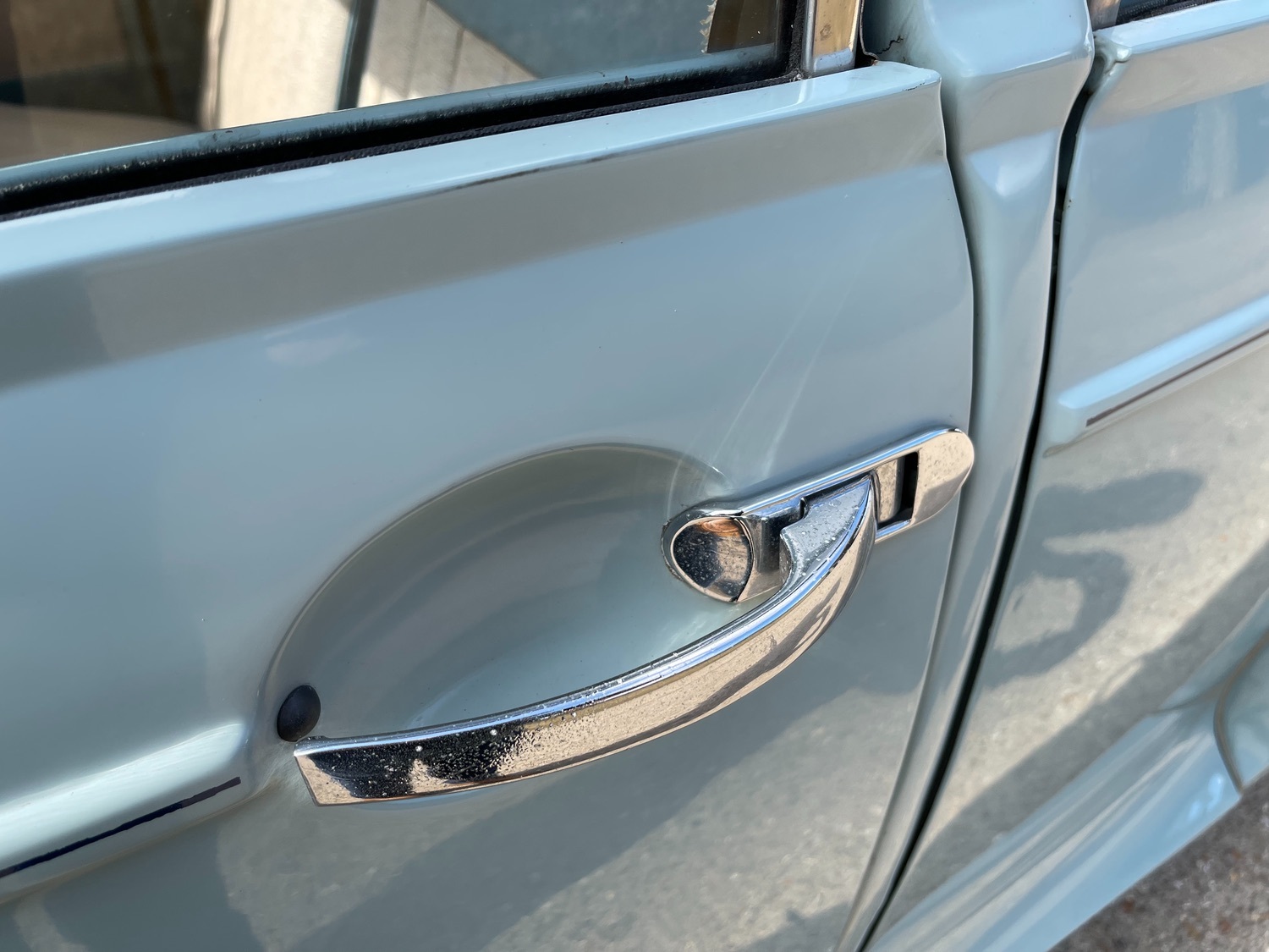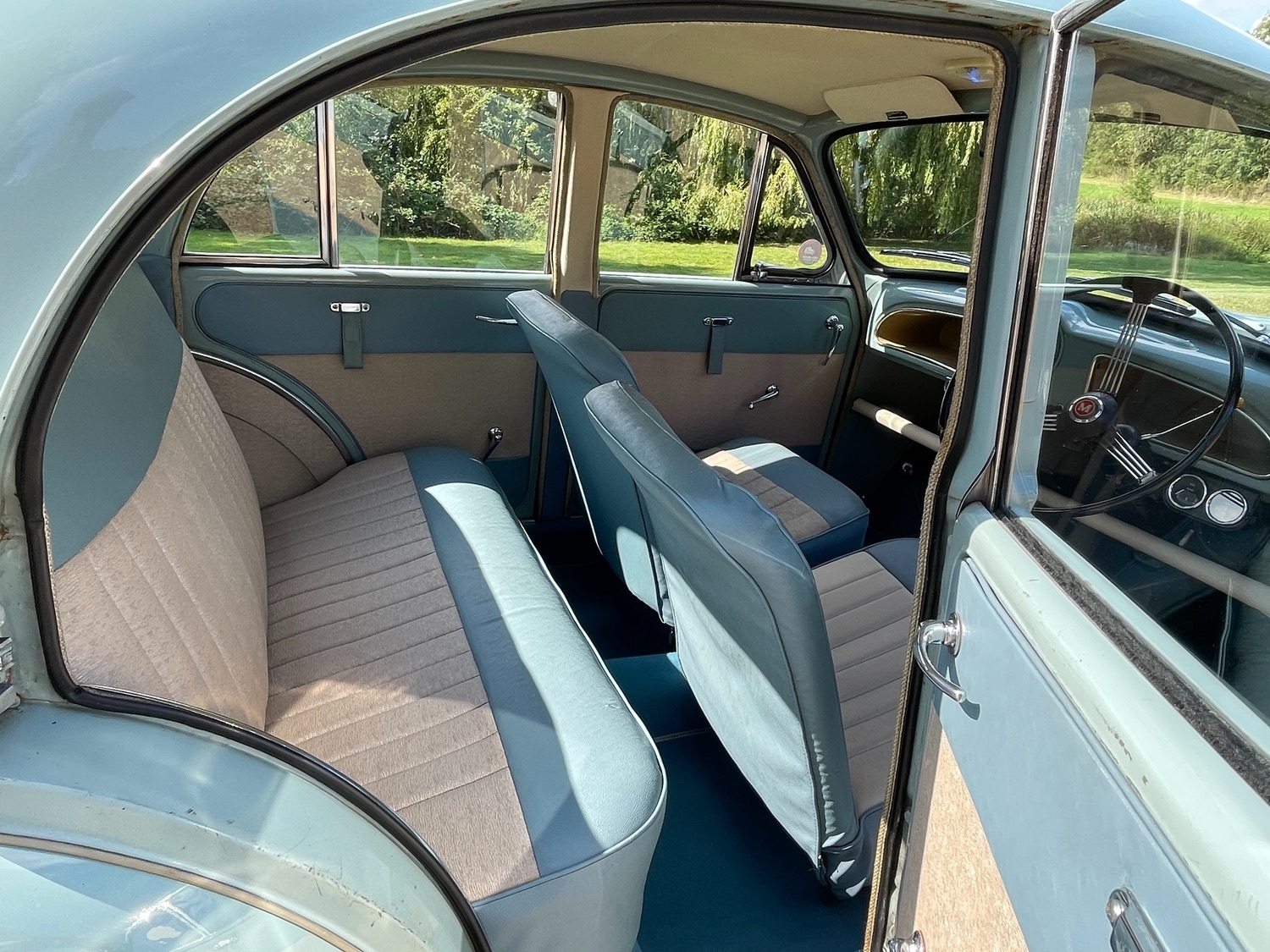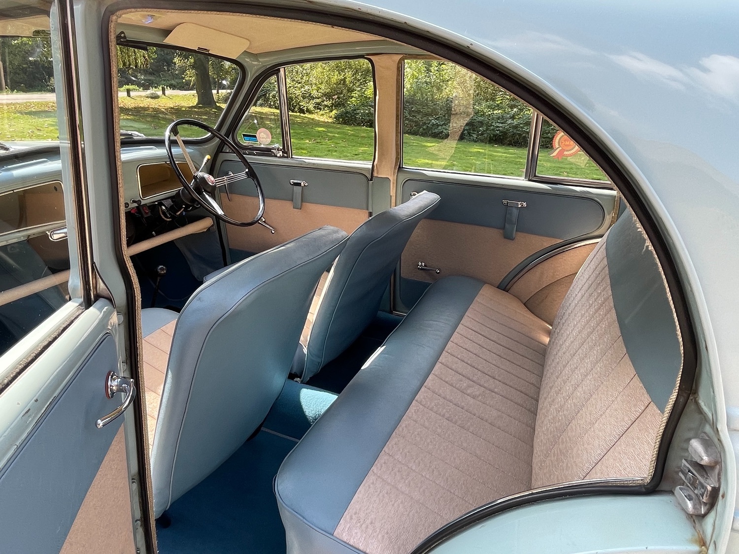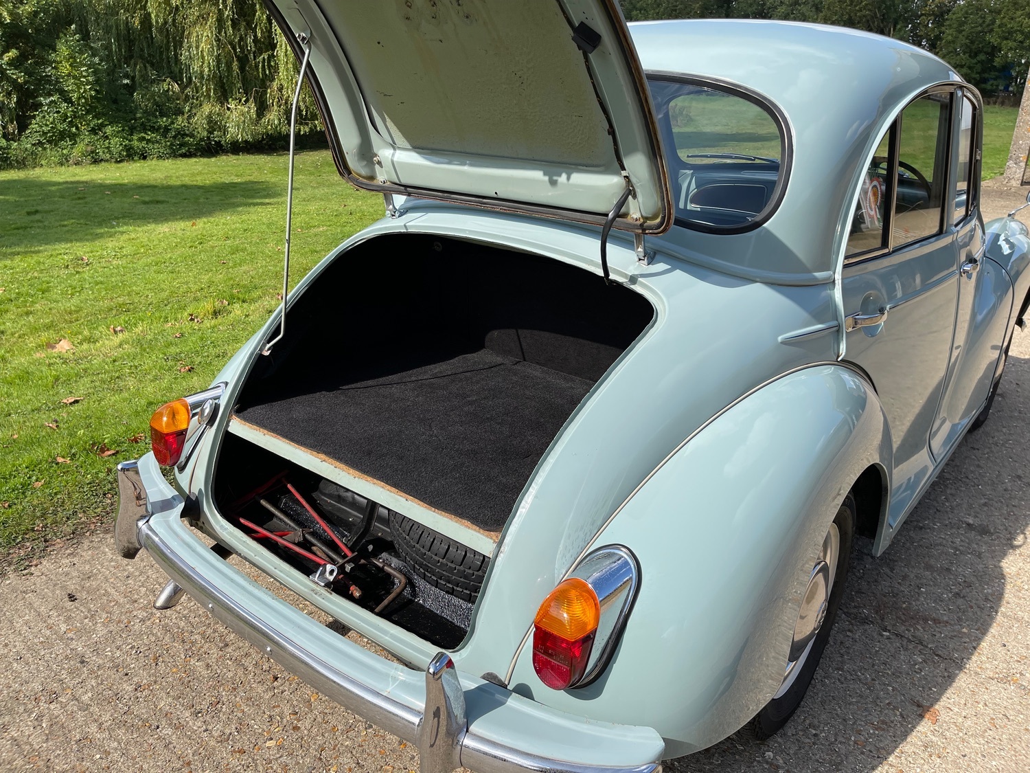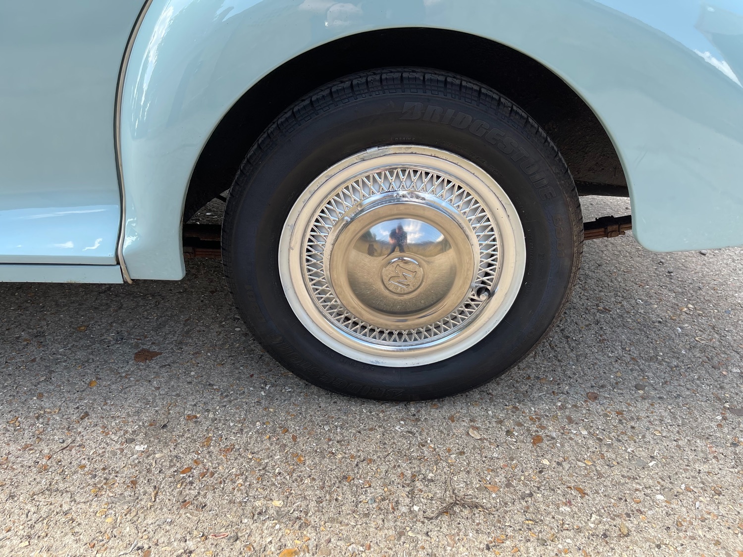 In stock with us here at RFH Classics we have this 1964 Morris Minor 1000 4 Dr finished in Smoke Grey. The car is just a 2 Owner from new which I think we can all agree is quite an unusual find. The car has been the subject to light restorative work over the years and is in exceptional condition. The car was originally supplied by W Watson & Co in Liverpool on the 17th July 1964 for which we have the original buff style log book confirming the car was supplied on the plate still fitted too the vehicle. In June 1993, due to the death of it's first owner the car was advertised for sale in the Greasby Post Office window and was recorded as having just 5,400 miles on the clock, we have in the file a copy of the advert in the window. It was sold to the 2nd owner who kept the vehicle until we recently purchased it, what a lovely little bit of history for this car. Now it appears that the 2nd owner subsequently has used the vehicle on a regular basis but it certainly seems as though we can confirm the mileage to be correct supported by extensive documentation in the massive history file we have for the car. Within that history file in the office we have a report done in June 1996 detailing that the car had done at the time less than 10,000 miles and that the car had been Finnegans Wax oiled from new in order to preserve this lovely example. In there are massive amount of old MOT's dating back to 1967. The interior of the car is in exceptional condition fitted with the original Two Tone Blue & Grey seat trim and the car drives very well. For sure this car is going to being a great car for the 3rd owner to continue its ownership and maintain its impeccable history.