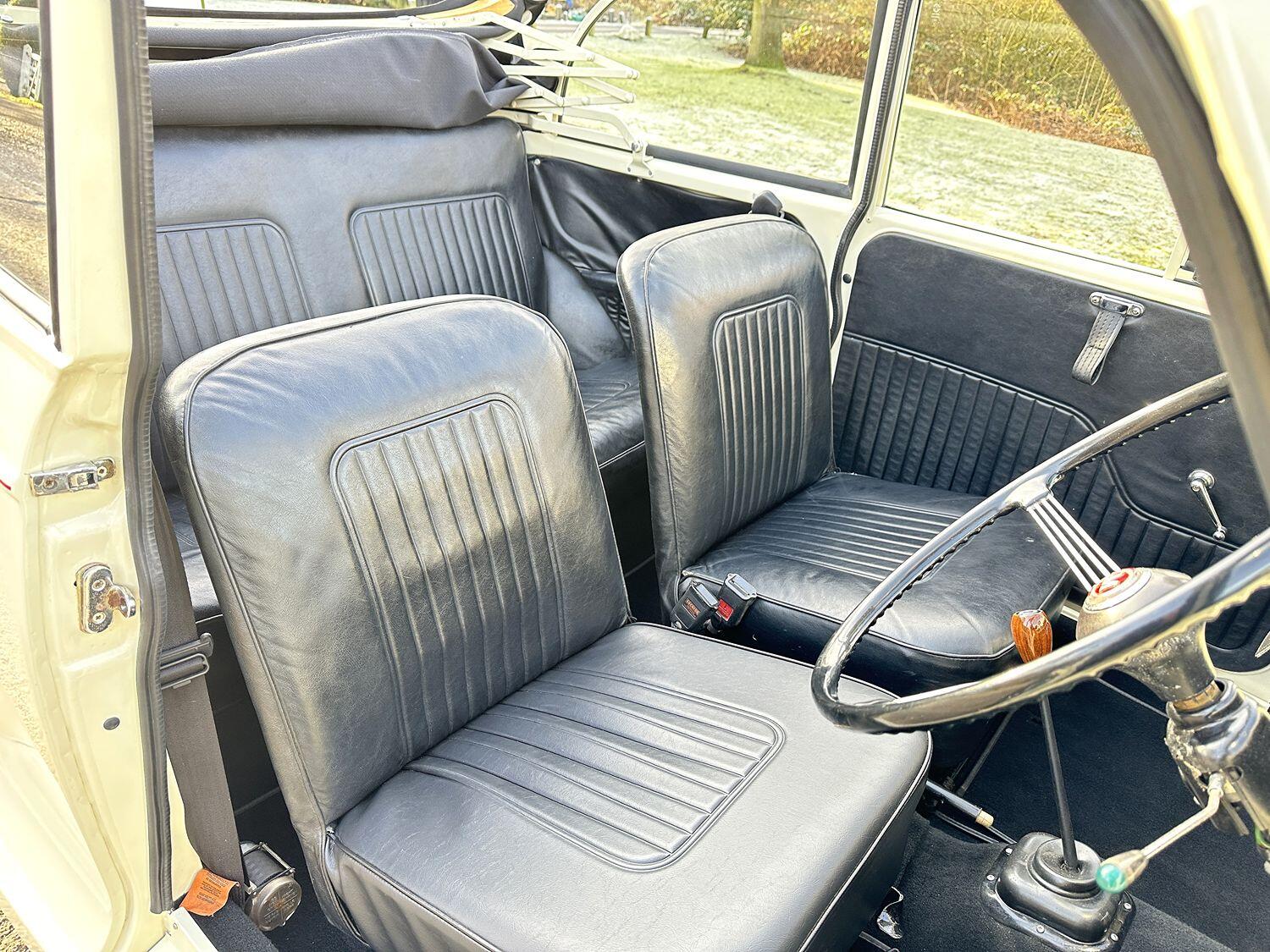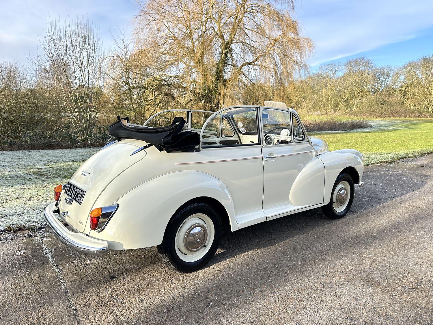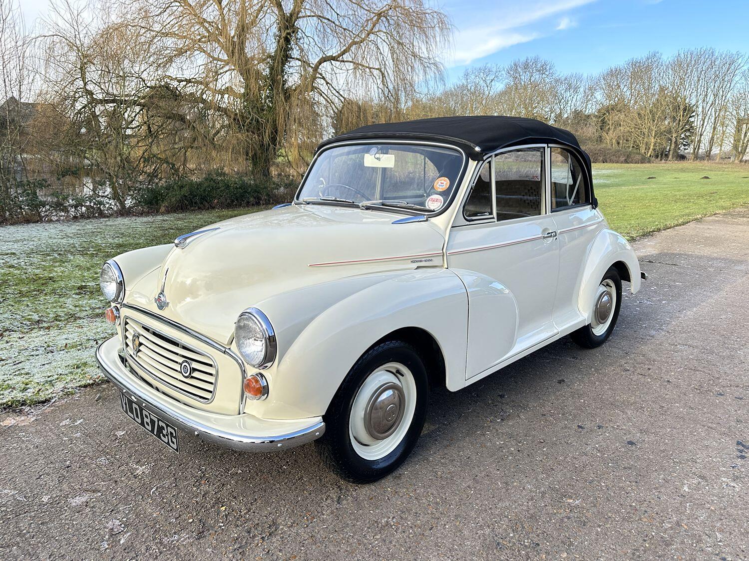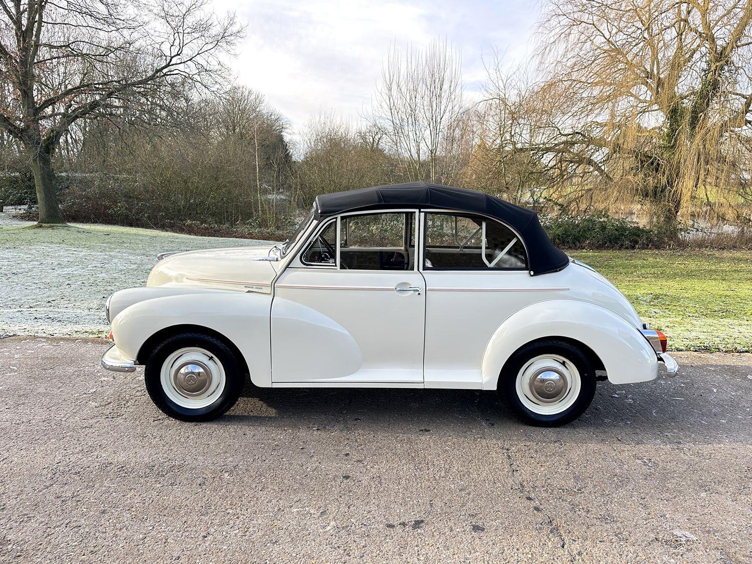 Now with us here at RFH Classics we have this 1968 Morris Minor 1098cc Convertible, or often referred to as a Tourer. Finished in the very period colour of Snowberry White the car has a contrasting Black interior and is enhanced further with the recently fitted Mohair roof that is in excellent condition. We will have to follow the Mohair cover for the roof when folded. This genuine Morris Tourer, complete with the correct factory strengtheners is in excellent order and has undergone an extensive program of restoration and refurbishment. The bodywork is in superb condition with excellent paintwork and very good panel gaps. While the drivers door alignment could be slightly improved, it is a minor point that will be addressed prior to sale but is not something that detracts from the overall condition.