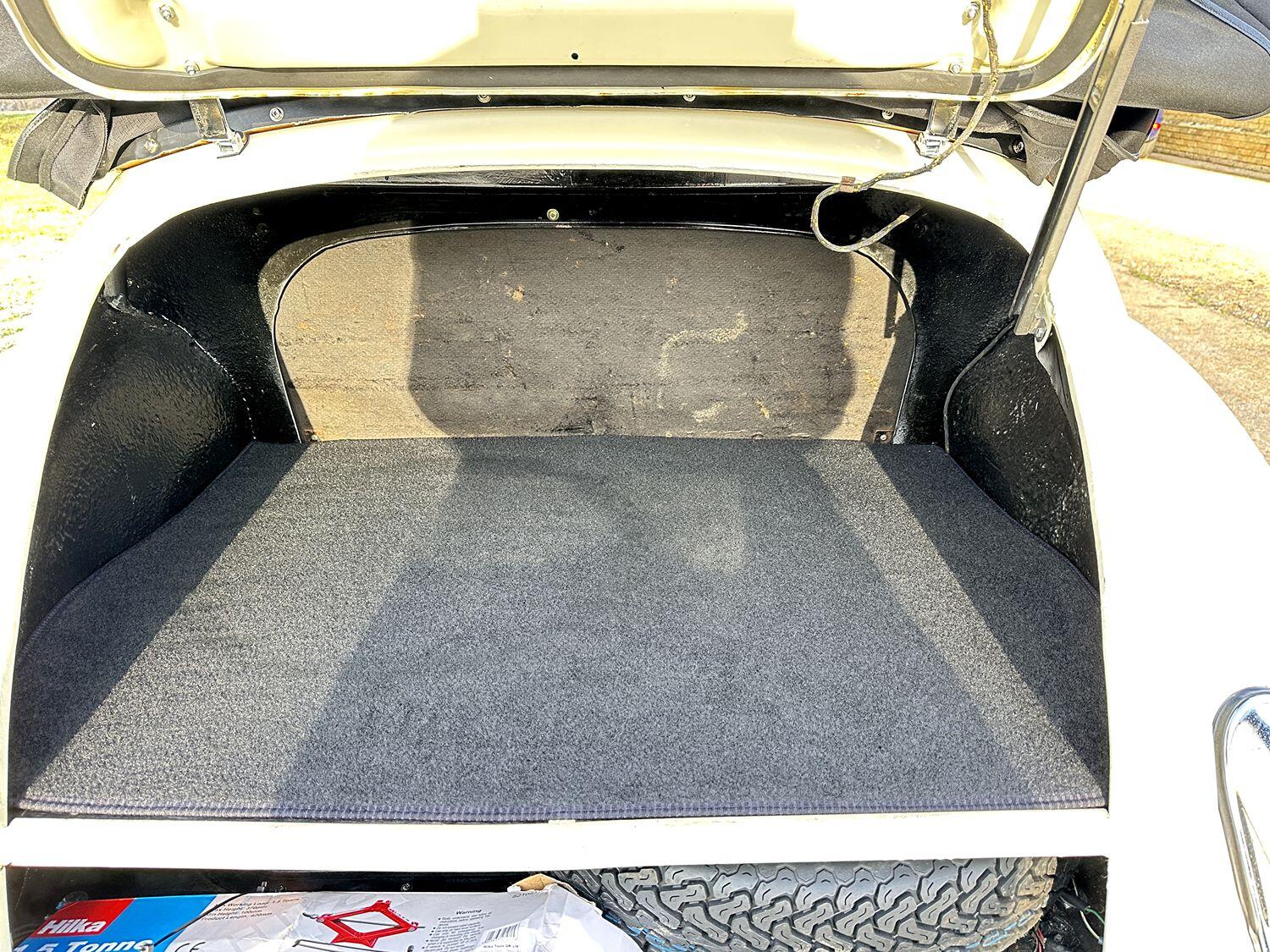 The interior matches the exterior’s high standard, featuring well finished exposed body colour detailing and Black vinyl trim that shows very little wear. The front seats fold forward for easy access to the rear and both front seats are fitted with safety belts. During the restoration the boot was not forgotten and has been restored to a high standard. An optional heater is fitted adding comfort for cooler days with the roof down. Speaking of the roof, it operates smoothly, fits well and truly completes the look of the car when raised.