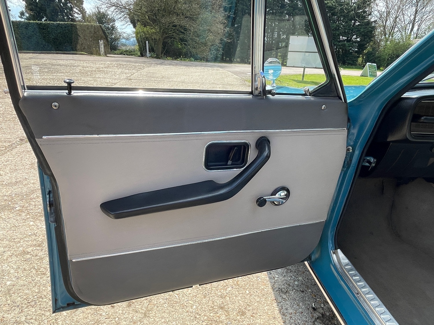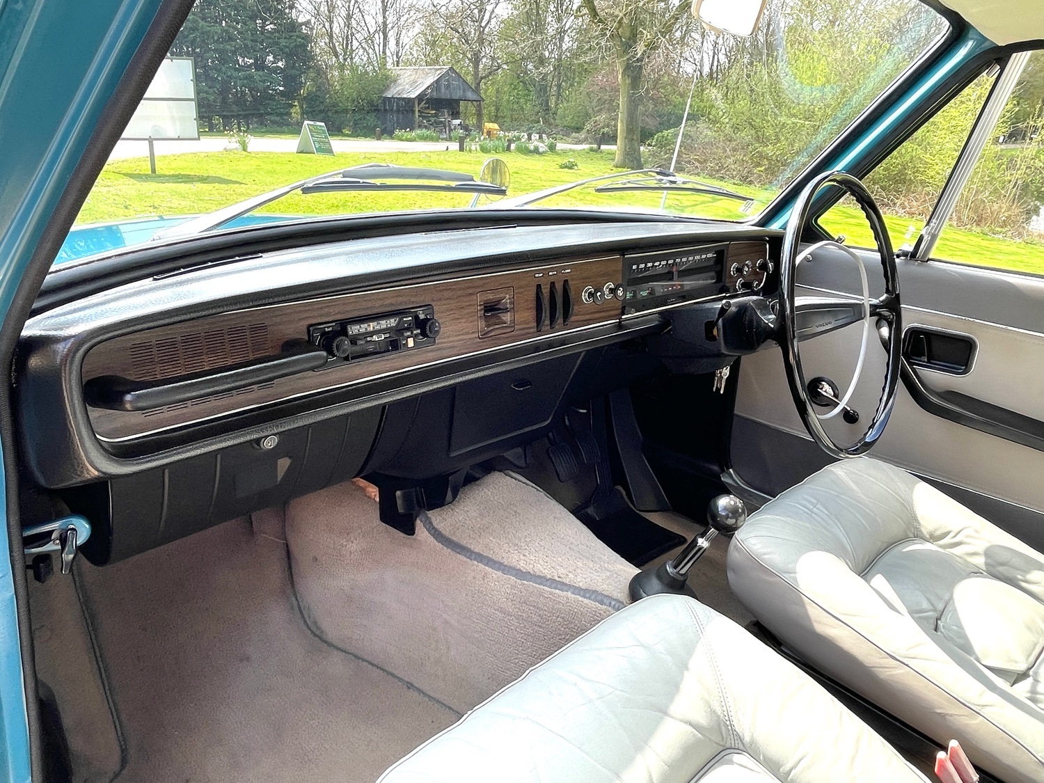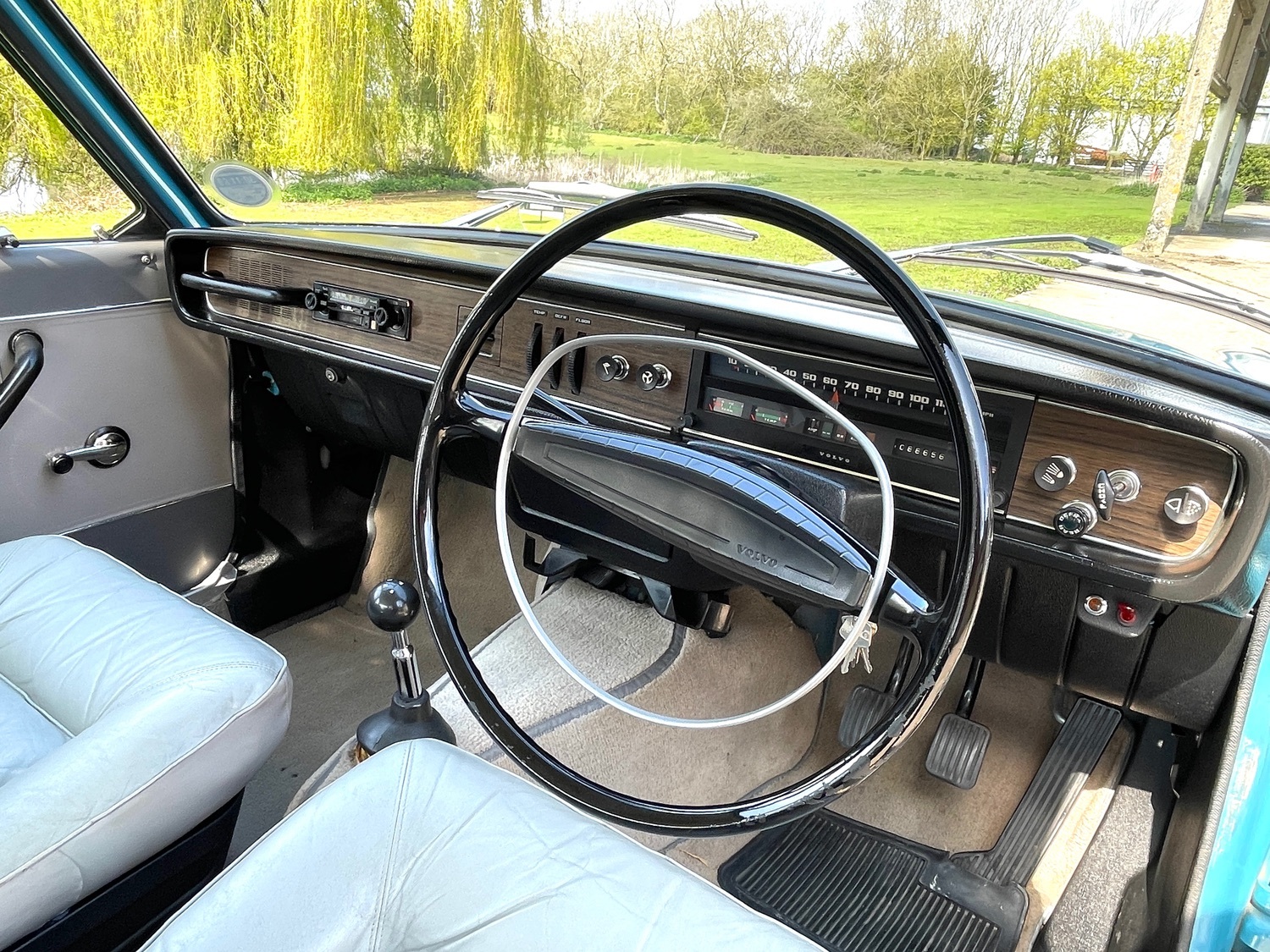 In stock with us now at RFH Classics is this stunning example of a 1969 Volvo 164 3.0 4 Dr finished a beautiful Pale Blue with the optional Grey Leather trim. The car, which we supplied to the previous owner 2 years ago, has now done just over 88,650 miles. This is a beautiful example of this large family saloon and drives exceptionally well. In the 164 Volvo fitted the 3.0 straight 6 petrol engine that in this case was matched to a 4 speed manual gearbox. When Volvo introduced the car in 1968 it was marketed as the more prestigious development of their Volvo 144 model. In this car the original spec included the soft grey leather and to sit on the seats is like relaxing in your sofa at home, they are just so comfortable. Being a Volvo, the car is very functional and not fitted with lots of unnecessary gadgets and, as you would expect, has been very reliable for the previous owner during their ownership.