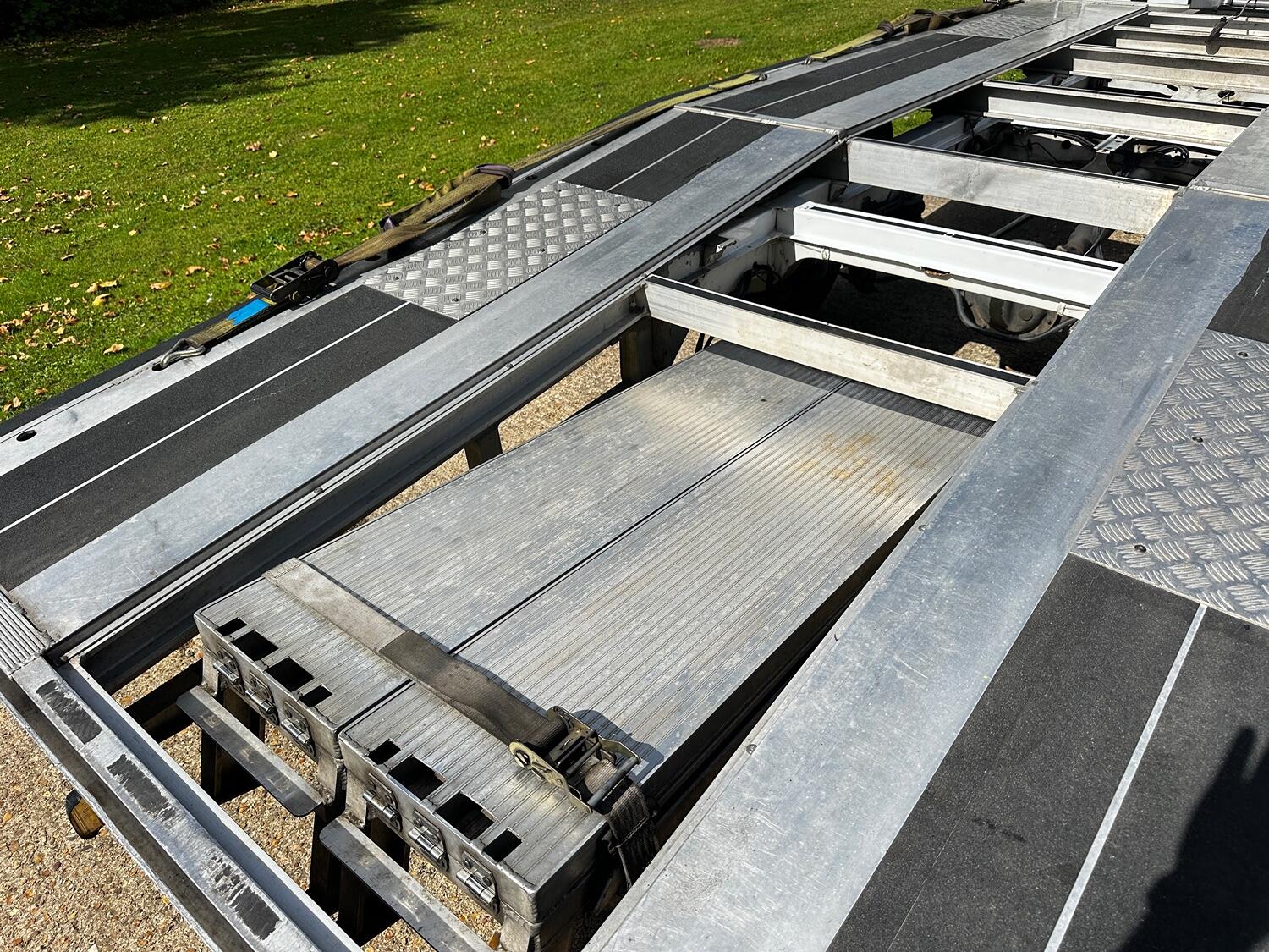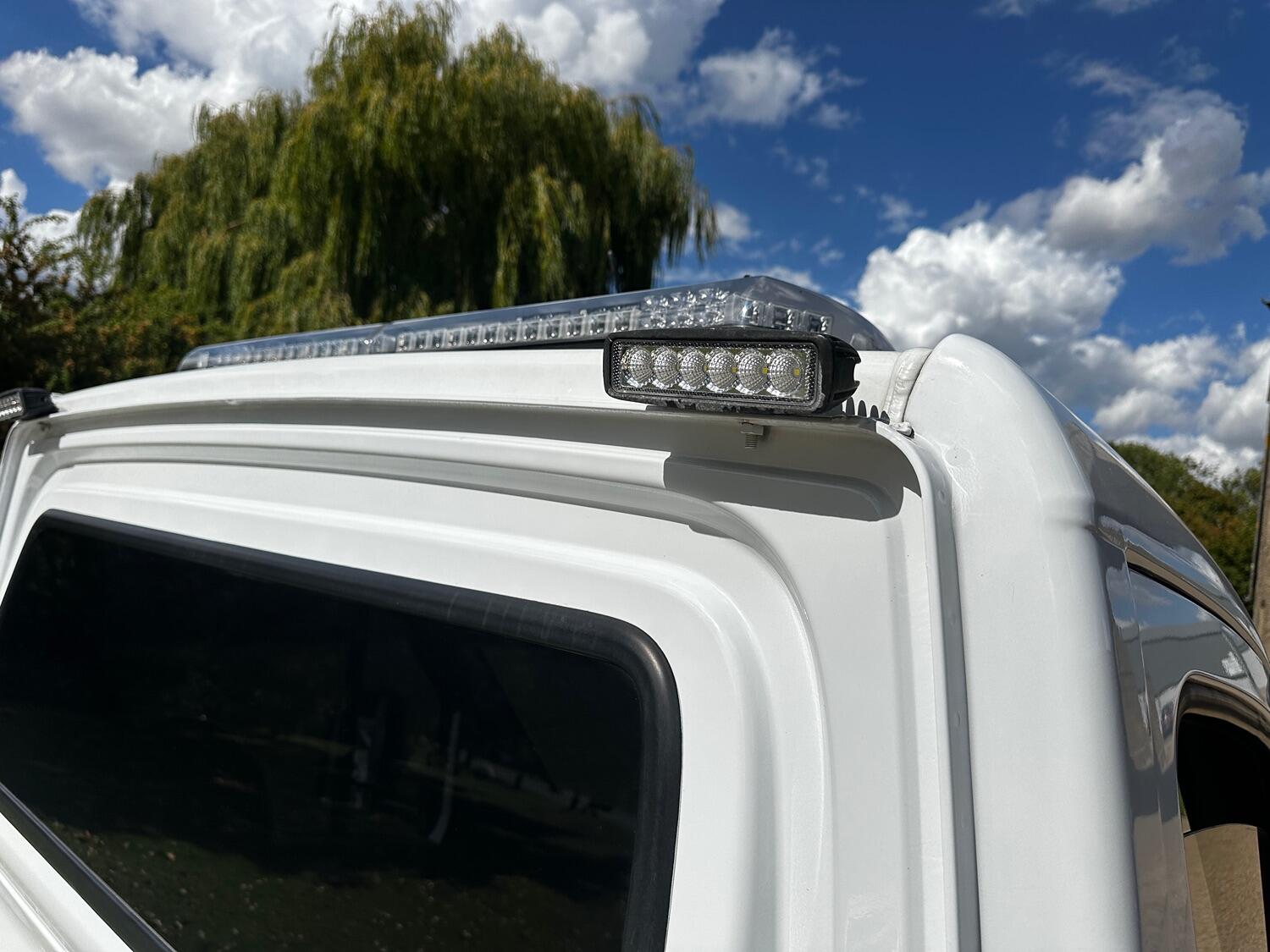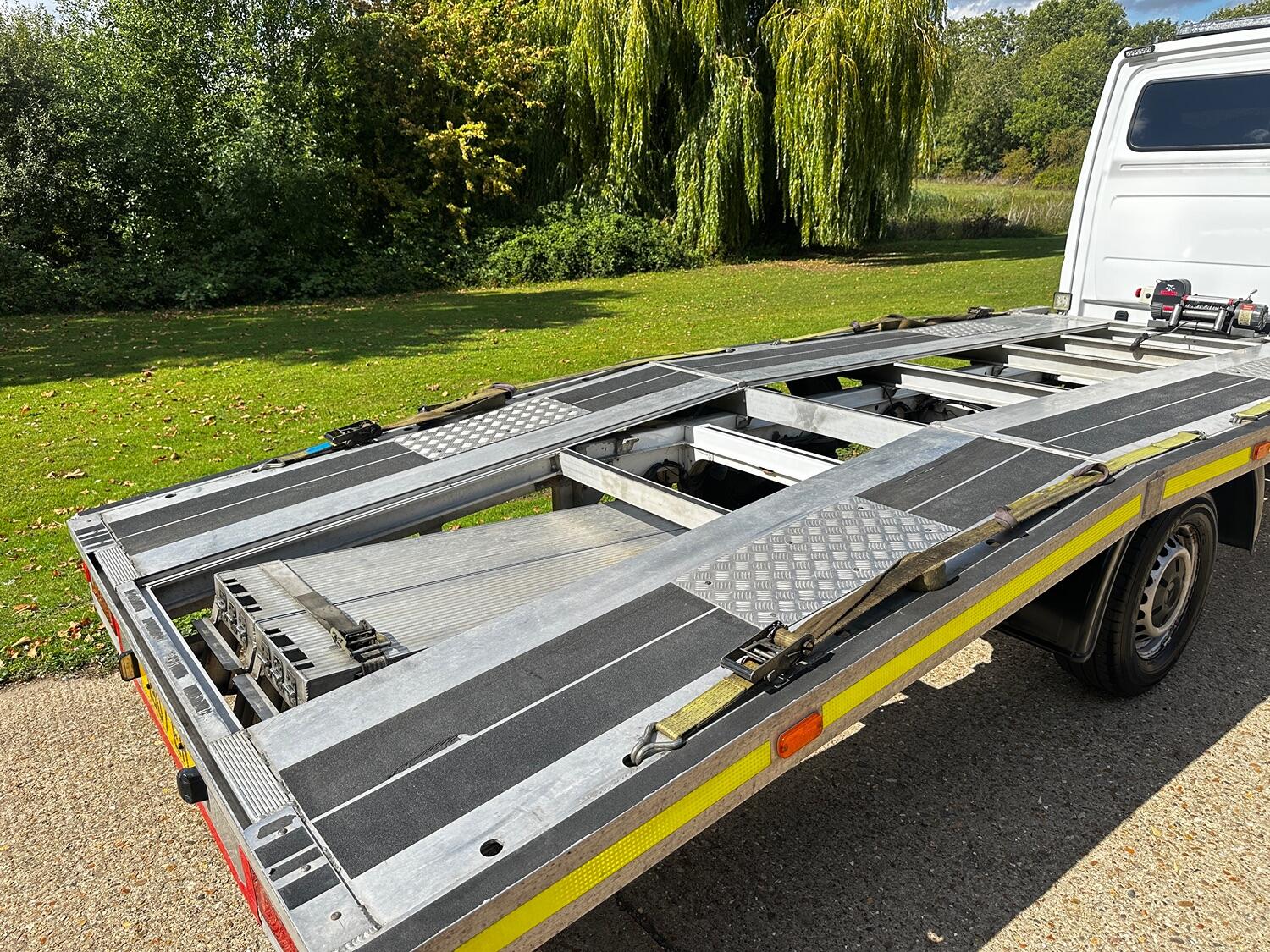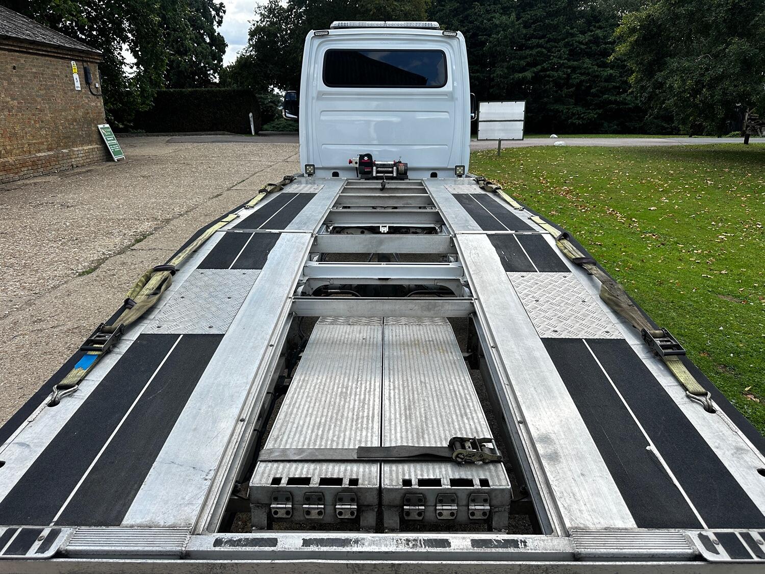 The drop side body was removed in early 2021 and replaced with the custom build transporter body. We purchased it 2 months after this and can confirm the body has worked well with features such as low entry load design with extended folding ramps that have all new hinges. This makes it very suitable for loading low slung classic cars. There is an electric winch with remote control fitted with a full set of straps included. The rear suspension is equipped with pneumatic air bags with in cab inflation controls. The truck has lots of practical features include such as an LED strobe recovery beacon, LED floor and load area lighting, illuminated safety side markers making this a vehicle for both day and night use.