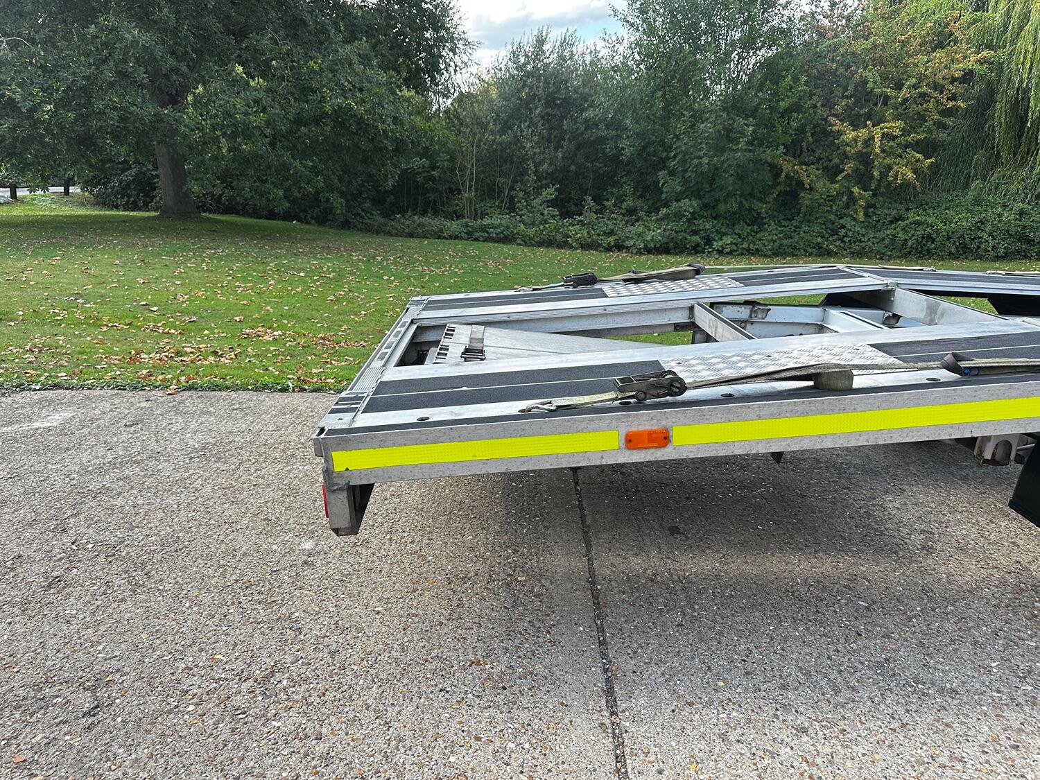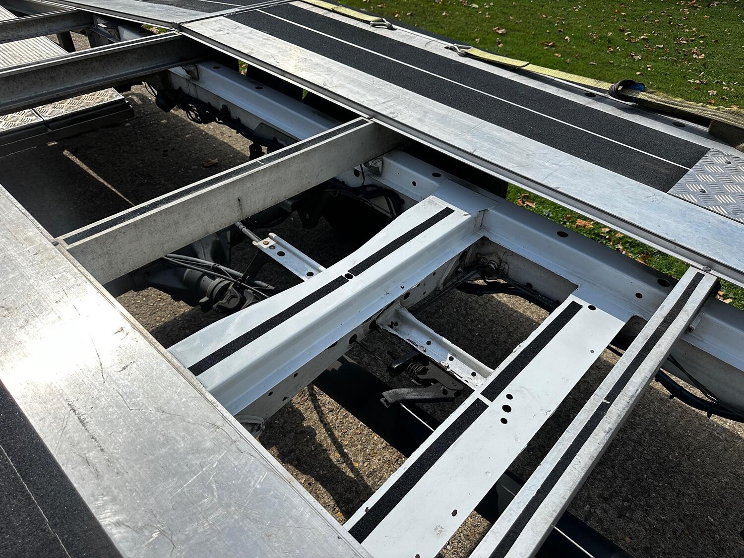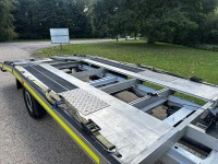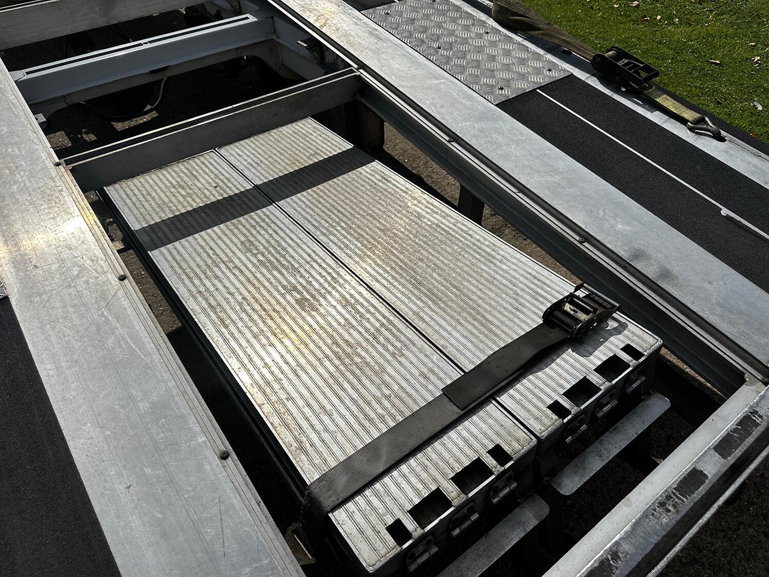 The drop side body was removed in early 2021 and replaced with the custom build transporter body. We purchased it 2 months after this and can confirm the body has worked well with features such as low entry load design with extended folding ramps that have all new hinges. This makes it very suitable for loading low slung classic cars. There is an electric winch with remote control fitted with a full set of straps included. The rear suspension is equipped with pneumatic air bags with in cab inflation controls. The truck has lots of practical features include such as an LED strobe recovery beacon, LED floor and load area lighting, illuminated safety side markers making this a vehicle for both day and night use.